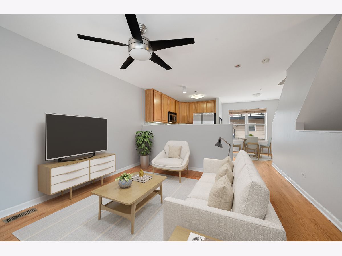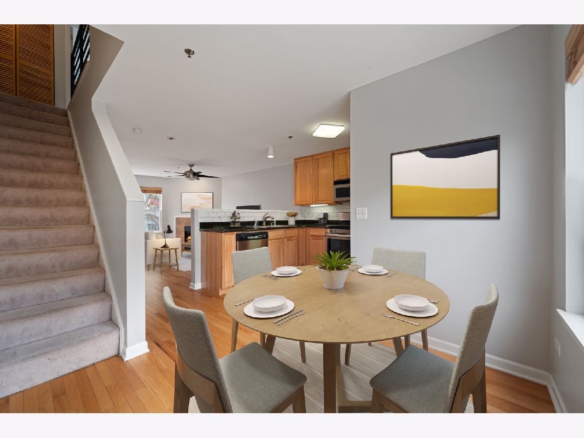 This two bedroom plus den/two bathroom fee simple townhome is the perfect condo alternative in the ideal Rogers Park location. The first floor features an office/den (or perhaps a place for that Peloton!), a full bathroom with new ceramic tile and access to the attached garage. The main floor has an open floor plan with dedicated kitchen, living and dining areas, access to the private balcony and both north and south exposures for great sunlight. The top floor has two large bedrooms (each with a wall of windows and ample closet space), the second full bathroom and stackable laundry. Set back from the street in a private courtyard setting, this home is a quiet oasis in a bustling city neighborhood (walk score of 85!).