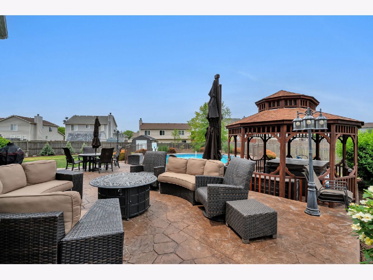 Your personal Paradise in Plainfield! This beautiful home has it all - stunning curb appeal, spacious, open, & functional layout, updates throughout, & a resort-like backyard with heated in-ground pool, patio, gazebo, & hot tub! Featuring 4 bedrooms including a master suite with gorgeous remodeled bathroom with custom vanity & tiled walk-in shower, 2.2 bathrooms, updated kitchen with custom cabinetry, large island with seating, backsplash, & Samsung Bronze appliances, the finished basement has a large recreational room/additional family room, the second half bath, & a storage area. Other updates/features include: roof, siding, stone, & gutters (2022), 10x14 shed - perfect storage for pool supplies/equipment, floaties, & outdoor tools, 6 foot cedar fence, new flooring (water resistant vinyl) & carpet throughout, cozy wood burning fireplace, professionally landscaped, flagstone paver walkway & to extend the width of driveway & add to the beauty of the curb appeal, two story foyer/family room provides a wow factor at entry, neutral paint & white trim throughout, open railings, located in a private cul-de-sac/court that was recently repaved. Located in highly accredited Plainfield School District. Close to shopping, restaurants, parks, and bike paths & to highway for easy work commute. Schedule your showing today!