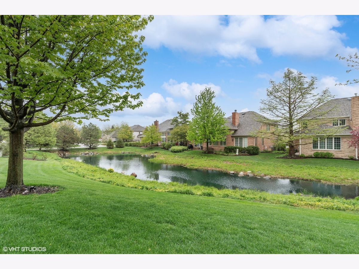 Welcome to the premier Royal Ridge gated community, where maintenance free luxury living meets tranquility. Nestled within this exclusive neighborhood, you'll find this exquisite Carlyle model home, boasting elegance and comfort at every turn. With 24-hour guard service providing peace of mind, access to the pool, exercise facilities and a large clubhouse, this is a residence that truly stands out. Step inside and be captivated by the grandeur of this beautiful brick home. The entryway welcomes you with a breathtaking grand foyer, featuring an open staircase that sets the tone for the sophistication found throughout. Hardwood floors grace the first floor main areas, adding a touch of warmth to the living spaces. The highlight of this home is undoubtedly the 2-story great room and dining area, flooded with southern sun exposure and offering picturesque views of the serene pond. Imagine starting your day with a cup of coffee, basking in the gentle sunlight as you gaze upon the tranquil waters. It's a sight that will leave you feeling inspired and rejuvenated. Retreat to the first-floor primary bedroom with a large en-suite bathroom, where luxury meets comfort. Featuring a spacious layout and dual walk-in closets, this private sanctuary provides a haven for relaxation. The main floor also features a well-appointed eat-in kitchen, perfect for the culinary enthusiast. From intimate meals to hosting dinner parties, this space offers both functionality and style. The main floor laundry plus mudroom just off of the 2 car garage, adds convenience to your daily routine. Upstairs, you'll find two additional bedrooms and a full bathroom, offering comfortable accommodations for family members or guests. The rear paver patio overlooking the pond, beckons you to unwind and soak in the peaceful surroundings. The perfect spot for alfresco dining or hosting gatherings with friends and family, this outdoor oasis is an extension of the home's beauty and ambiance. For those seeking ample space, the large finished basement provides endless possibilities. Whether you envision a home theater, a game room, or a personal gym, this versatile area offers the flexibility to bring your dreams to life. And with plenty of storage available, keeping your belongings organized is a breeze. Meticulously maintained, this residence reflects the care and attention given by its current owners. Every detail has been thoughtfully considered, ensuring that you can move in with confidence and enjoy the comforts of a well-crafted home. If you ever need anything from the onsite management team, they are always just a call away to take care of nearly any need you might have.