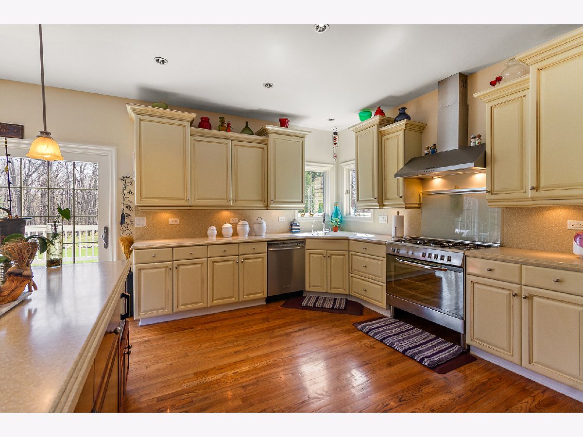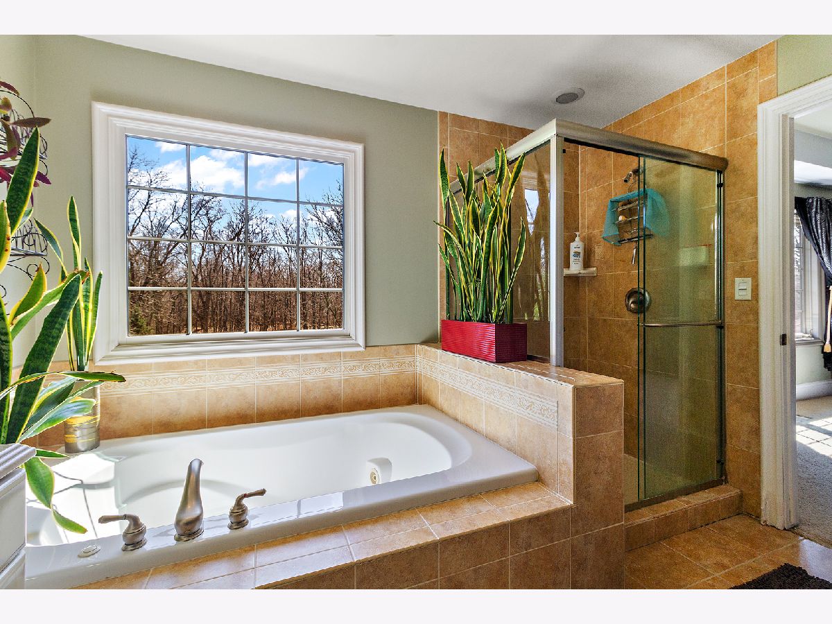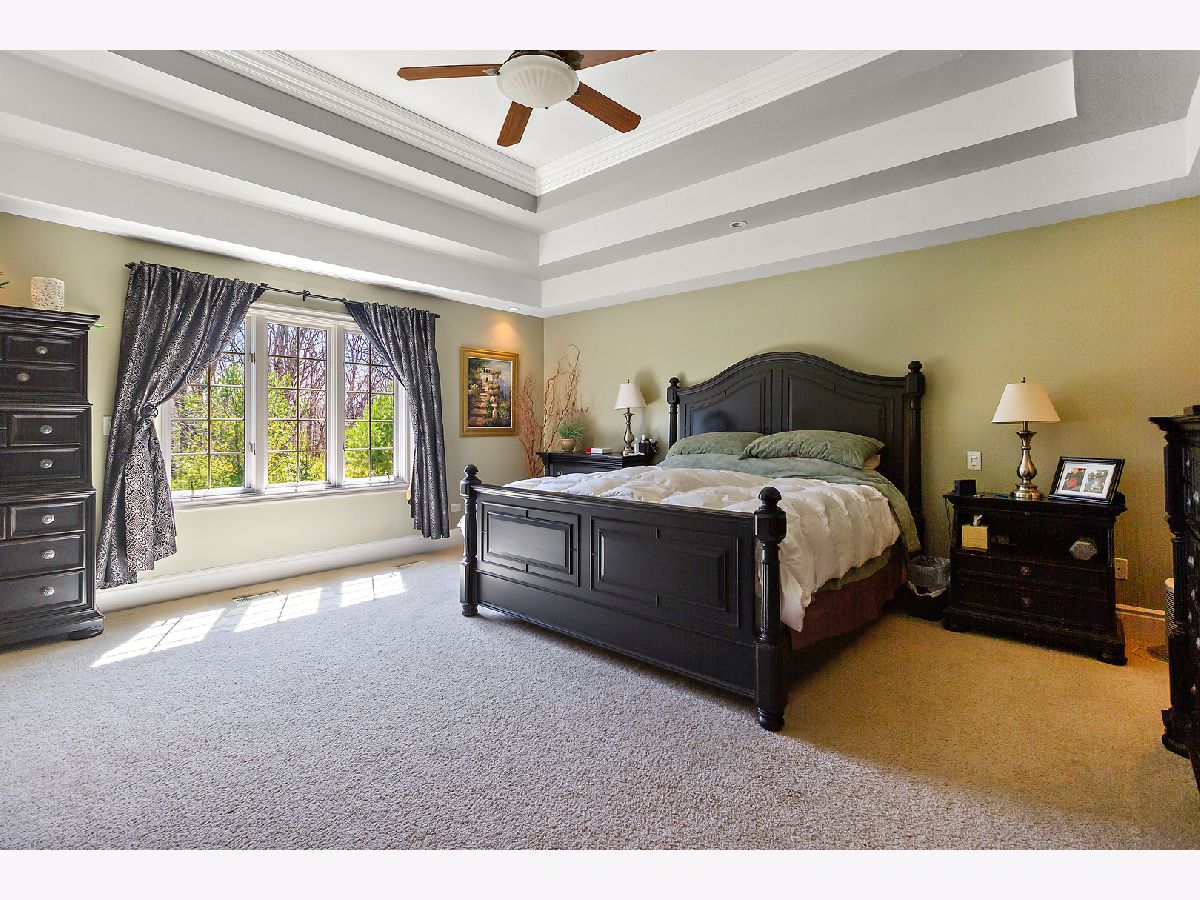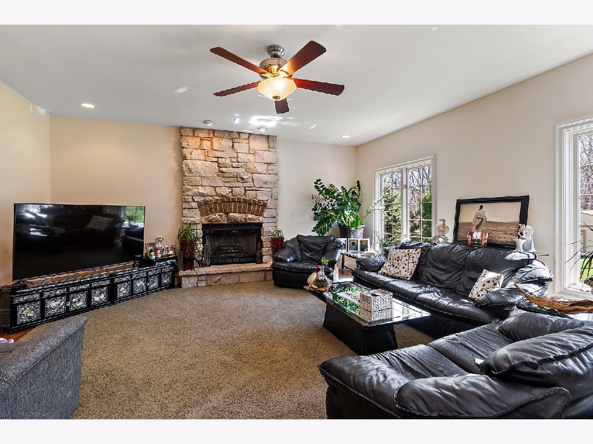This custom built beauty is now available in Wooded Cove! Peaceful living on this quiet cul-de-sac with wooded back yard views. So much functional space with bright natural light in this home! Featuring a spacious 21x18 updated kitchen with a grand island and an abundance of beautiful custom cabinetry, stainless steel appliances, and corian countertops. This home has 4 generously sized bedrooms upstairs (one includes an attached 13x11 bonus room/den!), and 4 full bathrooms. The gorgeously finished lookout basement features luxury vinyl flooring, custom stone wet bar, a 5th bedroom, and a full bathroom. Extra deep 3 car garage is heated! New roof in 2020! So many beautiful details throughout the home, including: tray ceilings, crown moulding, 7" tall white trim, wainscoting, and a stunning stone fireplace. Schedule your private showing today!