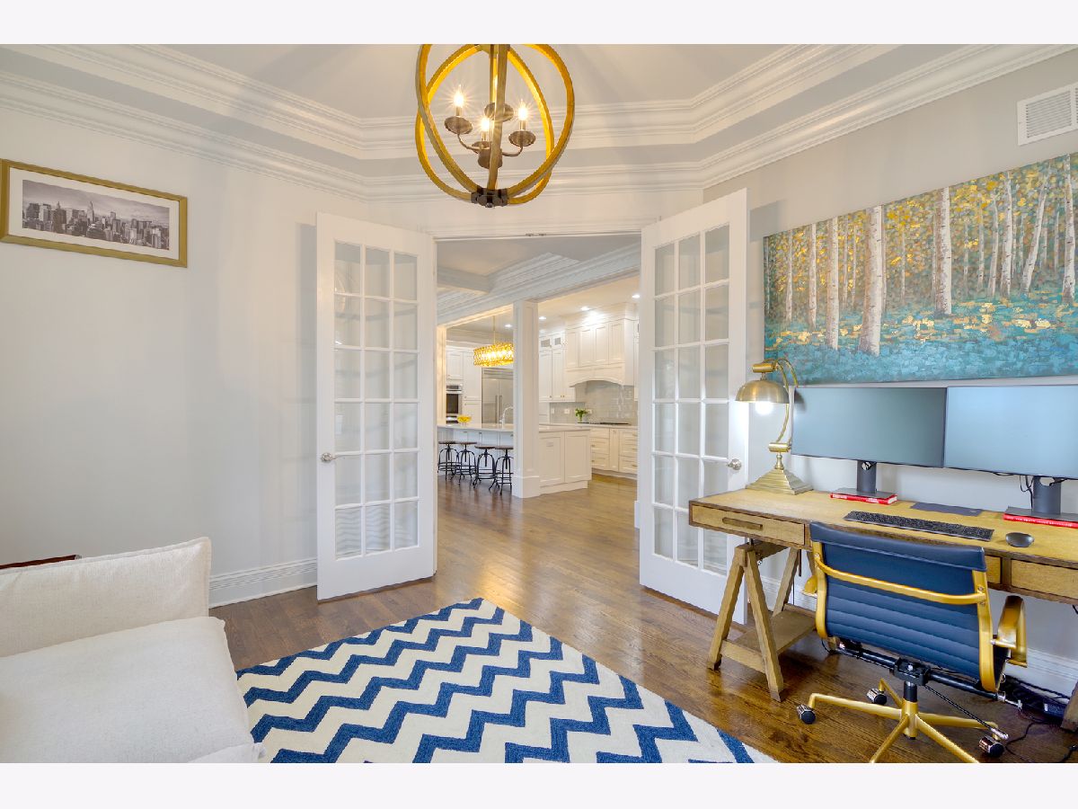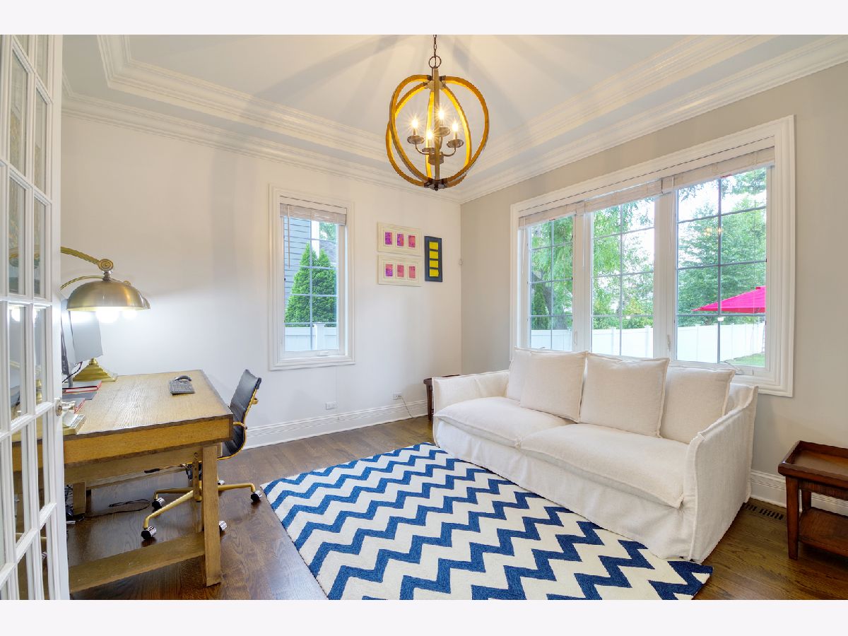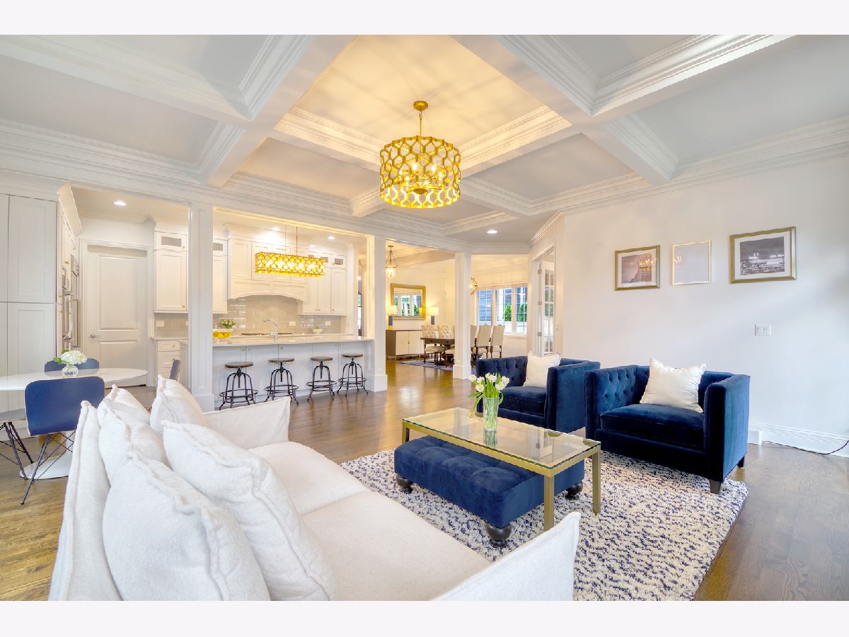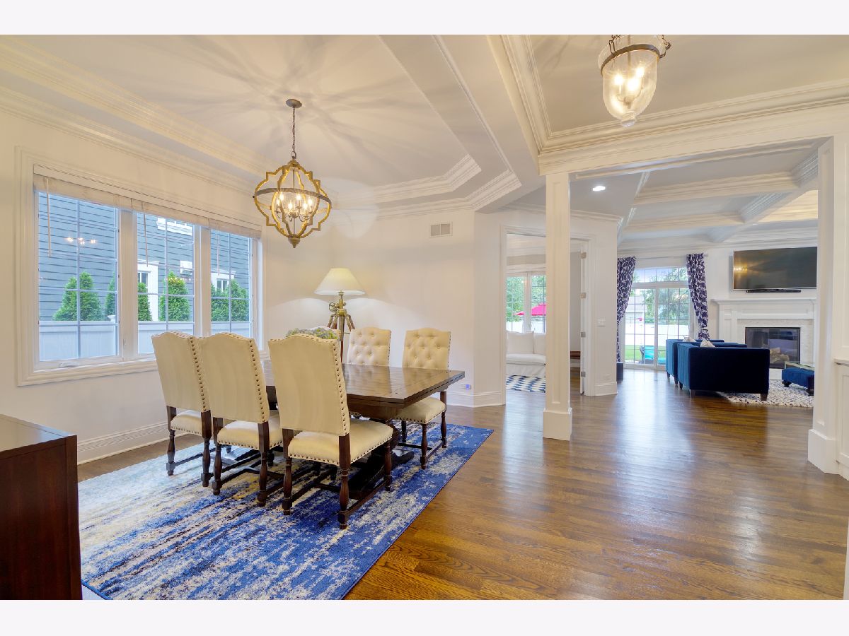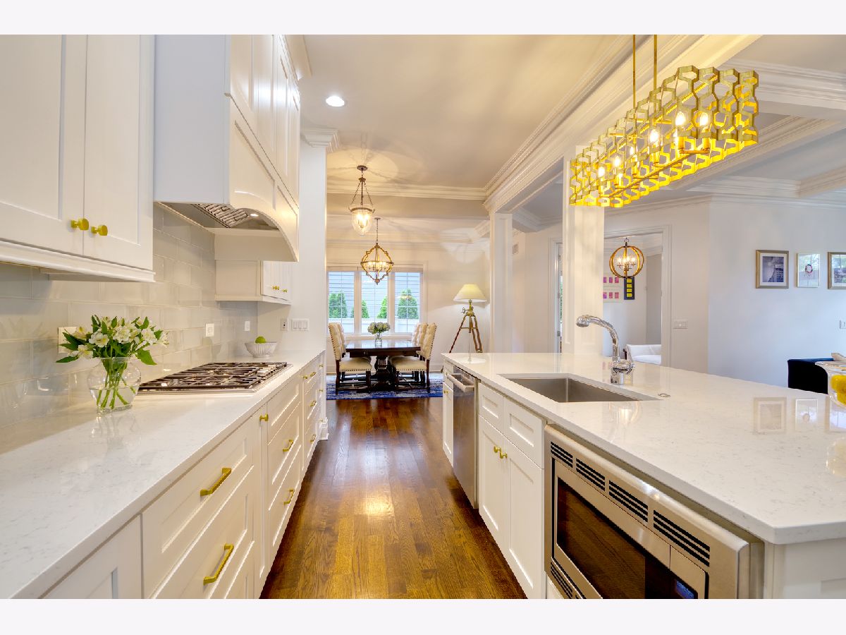 Under contract. QUICK CLOSE POSSIBLE. Gorgeous newer construction located in the heart of downtown Glenview. Built by a renowned local builder, this 4+1 bedroom/4.1 bathroom features extensive millwork and ceiling detail throughout. Open concept living space, Cook's kitchen with custom white cabinetry, quartz countertops, island with seating and all SS Thermador appliances. Expansive family room with coffered ceiling, gas fireplace with custom built mantle and marble tile surround, and French doors leading to patio and yard. Exquisite master suite with his and her walk-ins, tray ceiling with 3 layers of crown molding, and phenomenal bath with separate vanities, jacuzzi tub and walk-in shower with rain shower and body sprays. Fully finished lower level offers a 5th bedroom, full bathroom, large rec room and plenty of storage. Large backyard with brick paver patio completes this exceptional home. Perfect location - walk to train, park, downtown and all that Glenview has to offer.