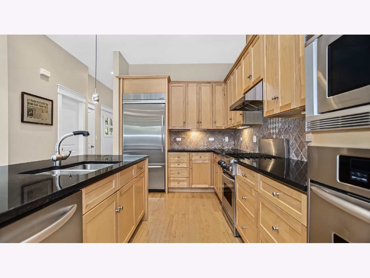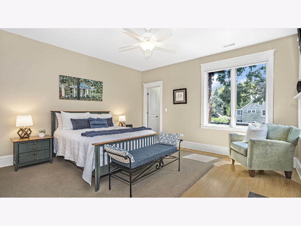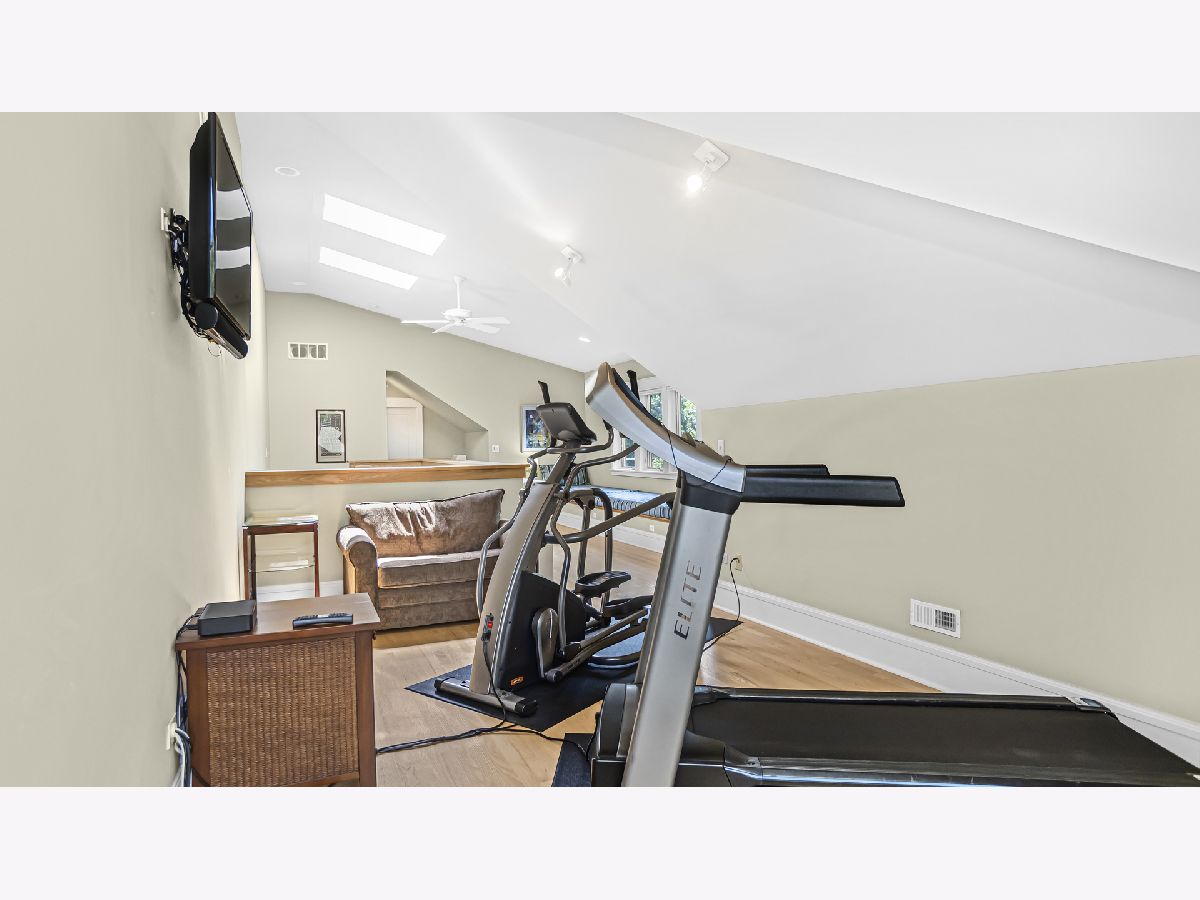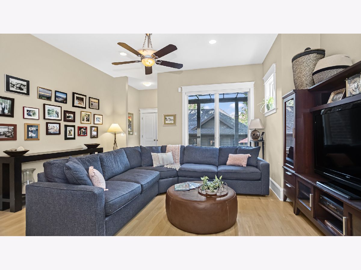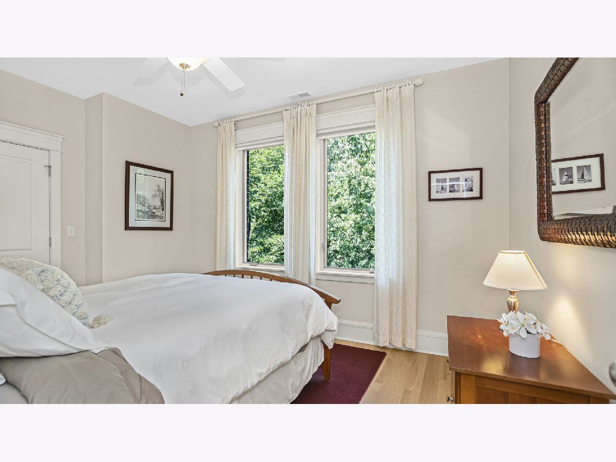 Welcome to 2014 Harrison, a luxury, four level townhouse that lives like a single family home! The main level has 10' ceilings, custom millwork and hardwood flooring. The living room has a beautiful gas fireplace and a large bay window. It is combined with a dining room for the perfect entertaining space. The kitchen has high end appliances, granite counters and island seating. It is open to a breakfast spot and a comfortable family room. The custom staircase leads you to the relaxing primary suite with a large bedroom, two walk-in closets, a fireplace and laundry. Two additional bedrooms and an attractive hall bath are also on this level. As you wind your way up to the third floor you will enjoy soaring vaulted ceilings with skylights. The space has an awesome window seat that runs the length of the main room with custom cushions, perfect for library or office. This level continues with an additional flex space, which is currently used as a workout area, but could be an additional bedroom. The third fl is complete with a full bath and lots of great storage. The lower level has a large theater room with built in Dolby surround sound, AV wiring and an HD 100" projection screen. A well equipped laundry with great storage leads to a bedroom and full bath. The outside spaces include gorgeous professionally designed gardens in the front, a comfy back porch with pergola and steps leading to paver patio and private two car garage. Many improvements and upgrades to this well maintained home. Located just steps to the popular Central Street business district with great restaurants, coffee shops, bakeries, the Metra and lots more.