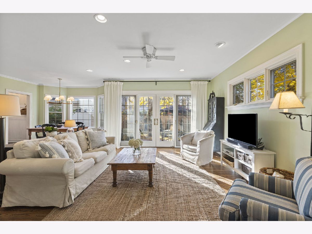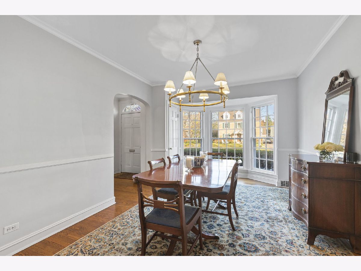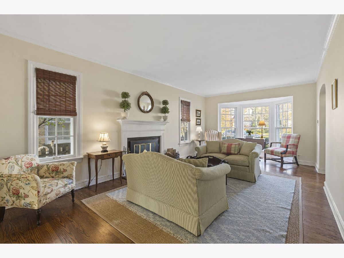 Expanded center entry colonial located in the extremely desirable Swainwood area, centrally located between downtown Glenview/Metra train station and Roosevelt Park, pool, tennis courts, and ballfield. To the right is a spacious living room with hardwood floors, center wood-burning fireplace, bay window, crown molding, and a set of French doors flanked by bookshelves leading into the addition. To the left of the foyer is the formal dining room with hardwood floors, chair rail, Serena and Lily light fixtures, pretty bay window, crown molding, and built-in corner buffet cabinets. A butler pantry with white cabinetry with glass fronts and granite countertops leads into the main hub of the home consisting of the kitchen, breakfast room, and family room. The white kitchen includes granite countertops, a center island, and stainless-steel appliances including two ovens. The breakfast room area is surrounded by windows for natural light with a pretty Serena and Lily chandelier. The hardwood floors flow into a spacious family room with lots of natural light, overhead lighting, ceiling fan, and sliding doors out to the deck. Completing this area is a mudroom space with beadboard walls, large closet, and a side door entrance to the driveway/garage. Conveniently located powder room with a Kohler pedestal sink and pretty wall sconces. The second level of the home has four bedrooms and two full bathrooms beginning with a large primary bedroom with hardwood floors, vaulted ceiling, and his and hers walk-in closets. The stunning en-suite bathroom includes a shower with a bench, separate soaking tub, and a double sink vanity with marble countertop. Three additional bedrooms all have hardwood floors and ample amounts of closet space. These bedrooms share a full hall bathroom with a tub/shower, beadboard walls, and a pedestal sink. Further expanding the living space is the lower level which includes a second family room with wood laminate floors, a powder room, laundry/storage room, and tons of additional storage in the cement crawl space. Over-sized custom detached two car garage with additional floored storage above.