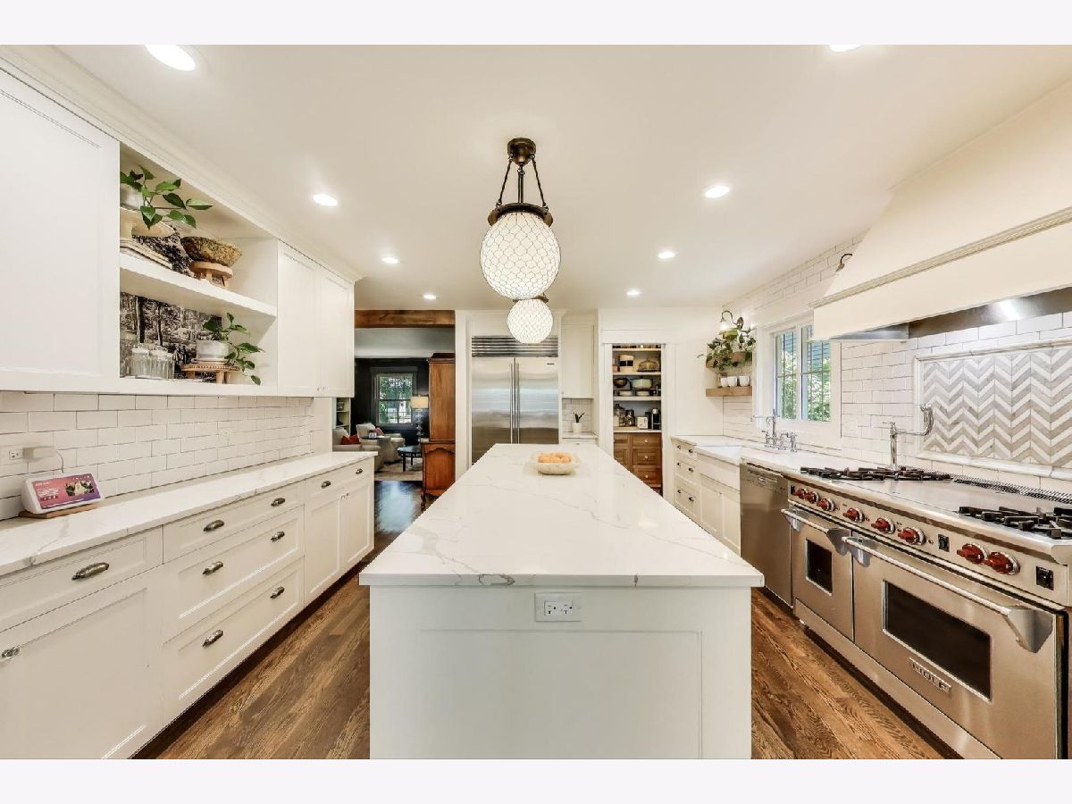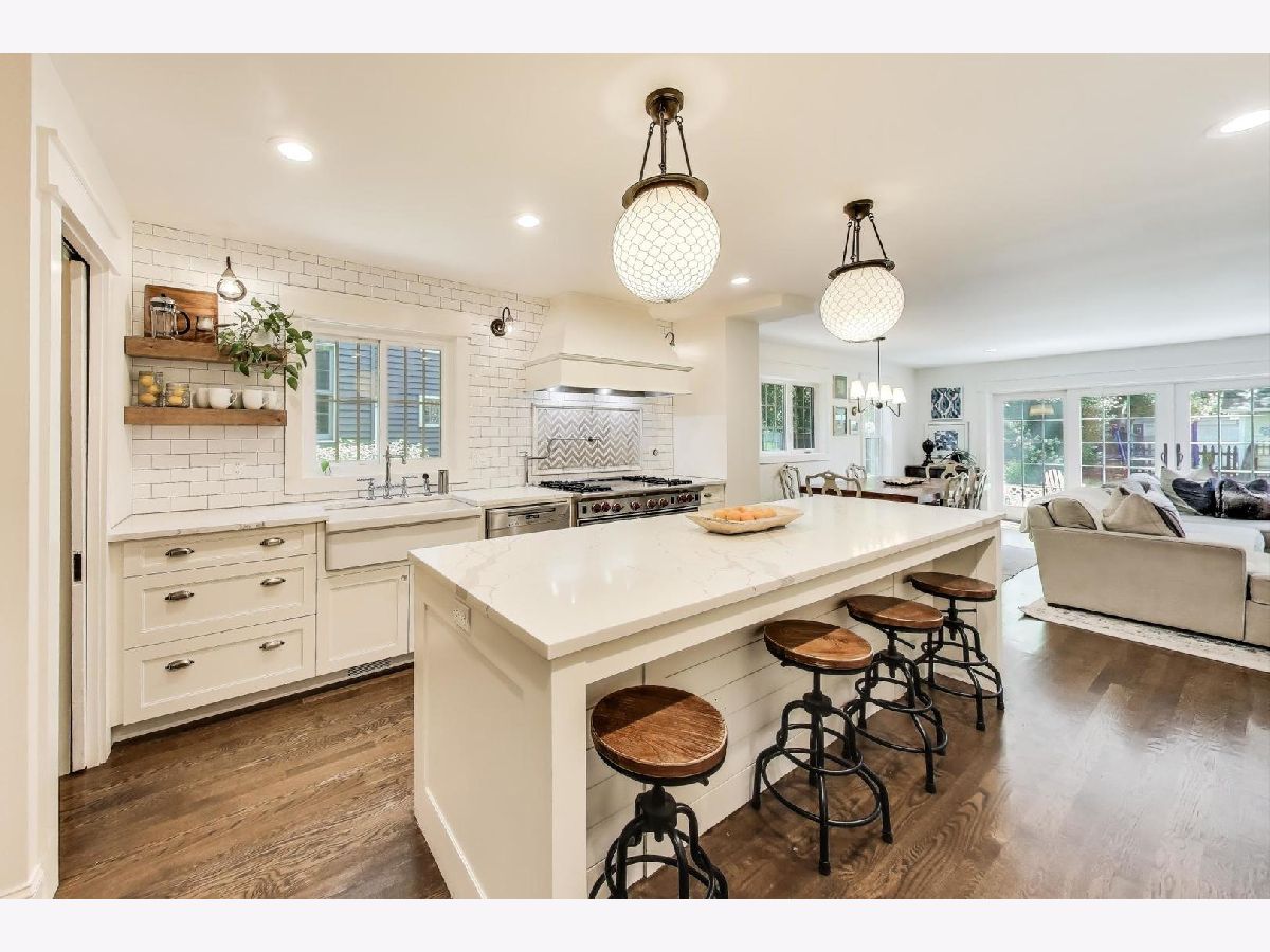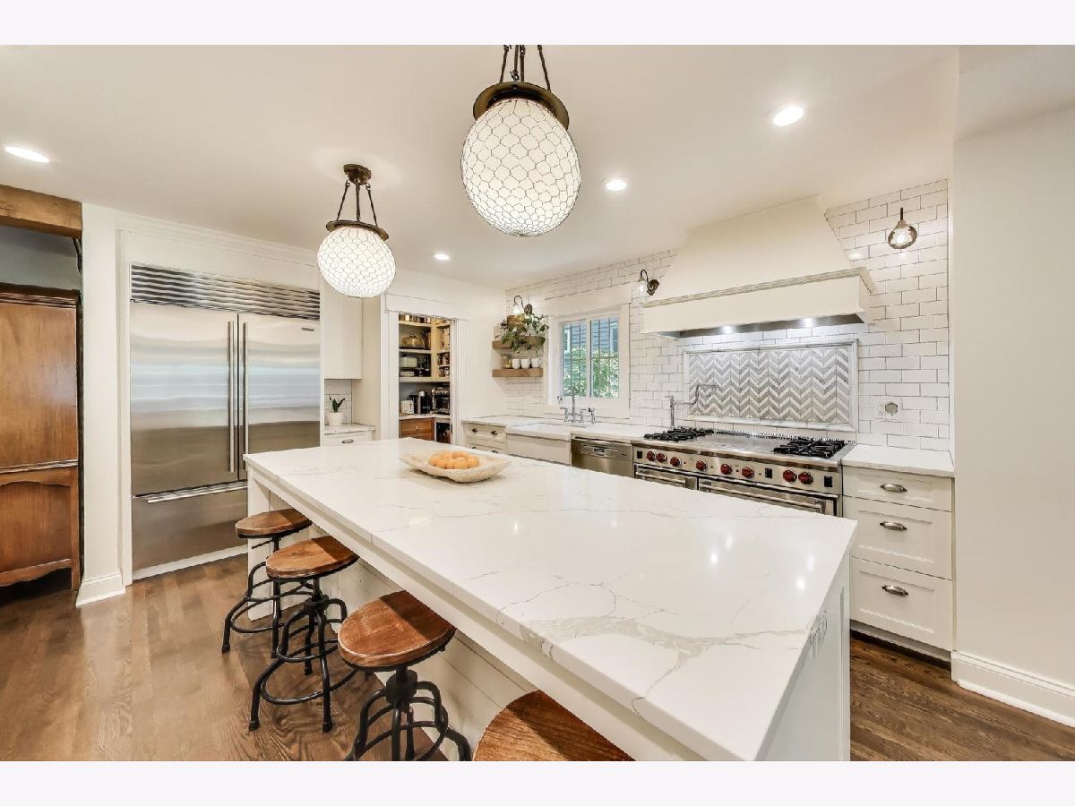 Beautifully updated and thoughtfully expanded, this 4-bedroom, 3.1-bathroom home in Wilmette's desirable Harper School district offers the perfect blend of style, function, and comfort for everyday living and entertaining. Set on a charming tree-lined street, this brick and Hardie board home was originally built in 1958 and enhanced with a seamless 2,000-square-foot addition five years ago. Inside, you'll find a flowing and functional layout, ideal for gatherings of all sizes. The heart of the home is the stunning chef's kitchen, which features a large quartz island with seating, top-of-the-line appliances-including a 48" Wolf range, Sub-Zero refrigerator, Miele dishwasher-shaker cabinetry, a deck-mount pot filler, apron sink, and Kohler Artifacts fixtures. The kitchen opens to a sunny eating area and a spacious family room with French doors leading to the paver patio, creating an ideal indoor-outdoor connection. The main floor also includes a generous mudroom and a gas fireplace in the cozy living room. Upstairs, the second floor features four spacious bedrooms, two beautifully renovated full bathrooms, and a convenient laundry room. The primary suite includes a walk-in closet and a luxurious marble-finished bath with a clawfoot soaking tub, separate shower, and private toilet room. The finished third floor offers a bright and flexible space perfect for a playroom, home office, or additional rec area. The fully finished basement includes two large recreation rooms (flexible as a guest bedroom), plus a full bathroom. With two HVAC zones, updated electrical, new windows and roof (addition 5 years ago, original 10 years). Enjoy being close to parks, top-rated schools, shops, and transportation, all in a vibrant and welcoming neighborhood.
