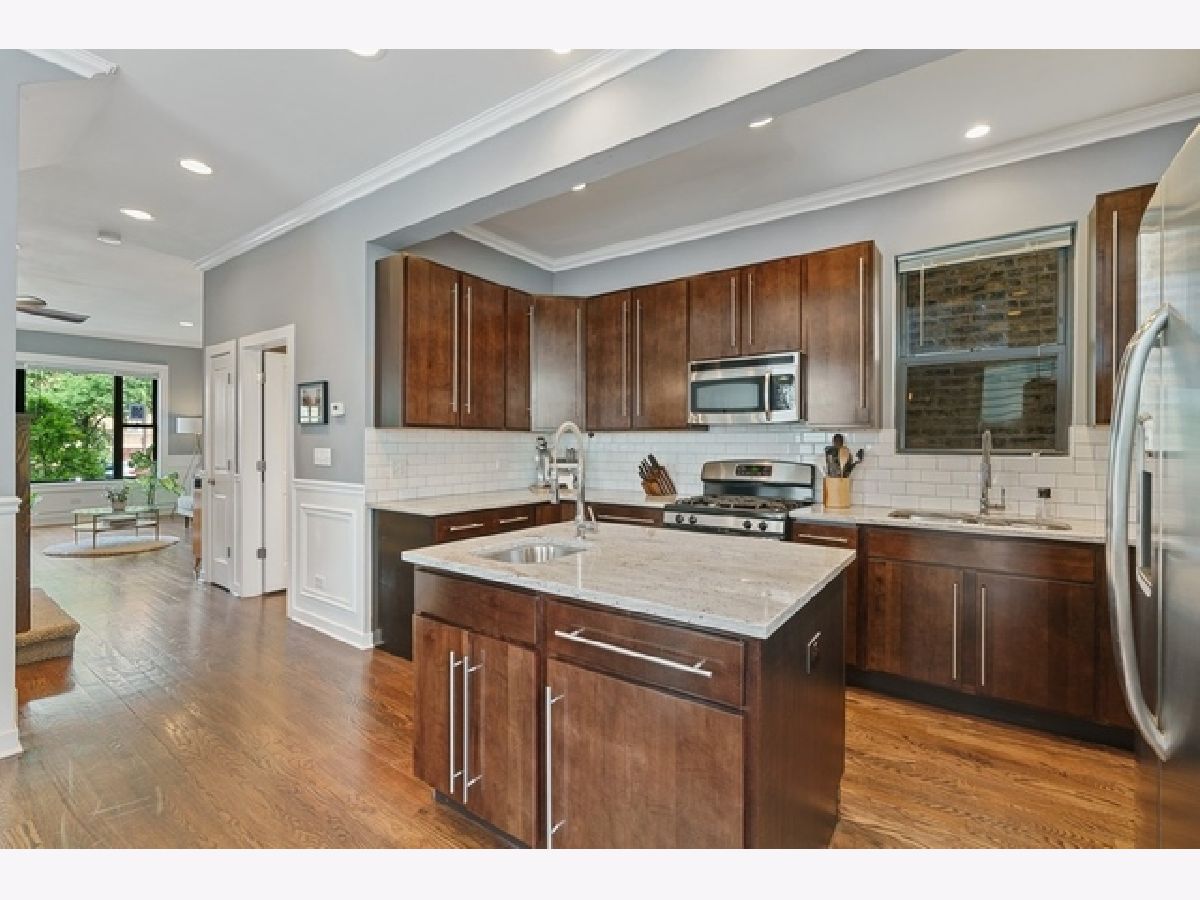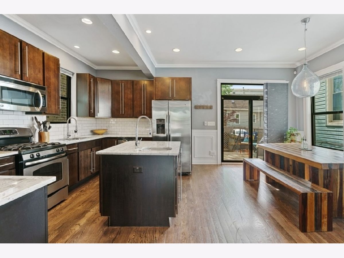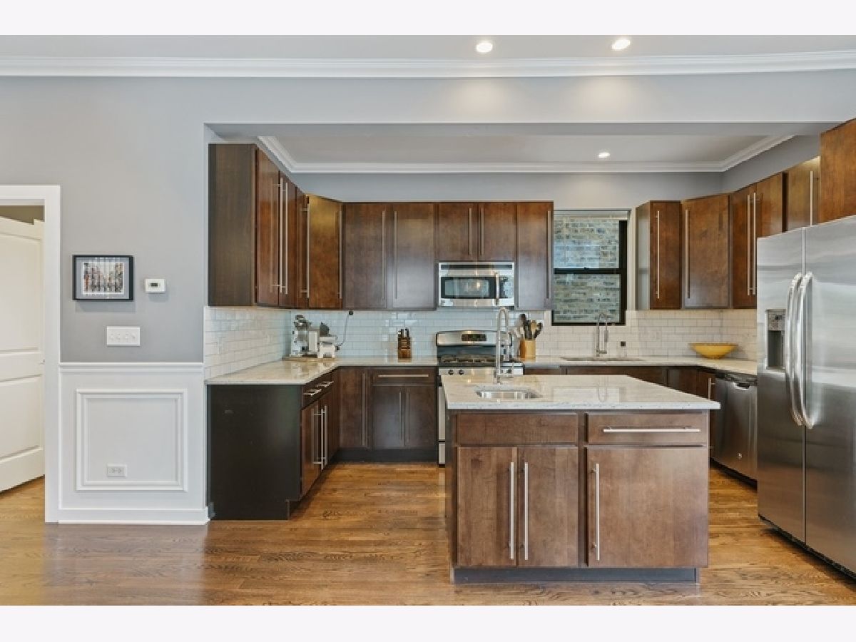 Beautiful, wide 4BR/ 2.2BA SFH in Logan Square just of Armitage's Restaurant Row and 2 blocks to the 606! A full gut rehab in 2013, this home is nearly 19 ft wide with beautiful wainscoting throughout the first level, anchored by a wide, open, staircase. Huge living room, an oversized kitchen with a double- sided island and bar sink + dining make up the first floor and it all spills onto a large deck and a HUGE back yard. 2nd floor offers 3 BR's and 2 full baths. Bonus 3rd floor is a finished 38 x 12 room that could easily be divided into BR #5 and #6, office spaces, playroom, etc. Lower level with tall ceilings offers a large family room, BR #4 and a laundry room with SBS washer/ dryer. 2 car garage & huge, landscaped back yard out back.