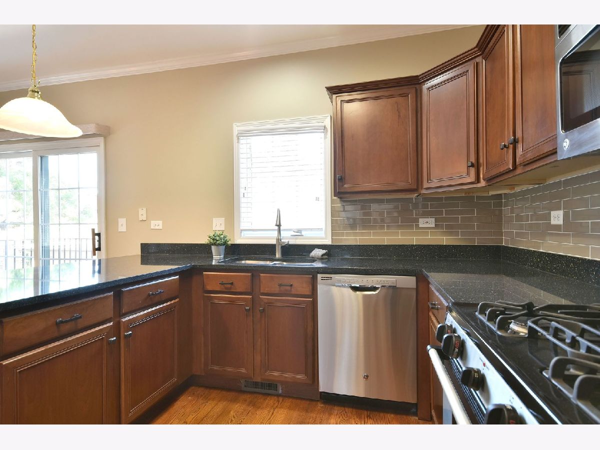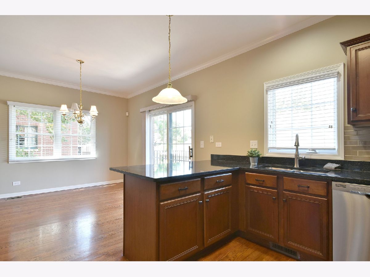 Beautiful Market Square Townhome located in downtown Elmhurst & in perfect location within complex being in the center away from noise of streets & restaurants! One of the few end units that have been on the market! Unit has 6 extra windows which means more light throughout and what a difference it makes! Walk to everything Elmhurst has to offer like restaurants, Metra station, shops, theater, library, museums, schools & more! Lovely, brick paver patio. Great curb appeal with front porch entries. Lovely hardwood floors. Meticulously maintained. The main floor boasts 9 ft. ceilings, hardwood floors, crown moulding, white, classic style fireplace with gas starter & lovely white mantel & built-ins. Great kitchen with quartz counters, dark stained cabinetry, stainless steel appliances, new backsplash & open to the dining area with breakfast bar. Grill on your private balcony & enjoy your sitting out on your personal brick paver patio. The upper floor provides two bedrooms with en-suite bathrooms and generous walk-in closets. Laundry is also conveniently located on 2nd floor. A finished, drywalled attic, accessed through the master closet provides extra storage. Electronic shade for hard to reach window in 2 story stairway. The lower level family room leads to the brick paver patio, as well as the 2 car attached garage with good storage space. Excellent HOA and recently replaced roofs. Just painted throughout (including garage) & professionally cleaned. Vertical blinds "as is".