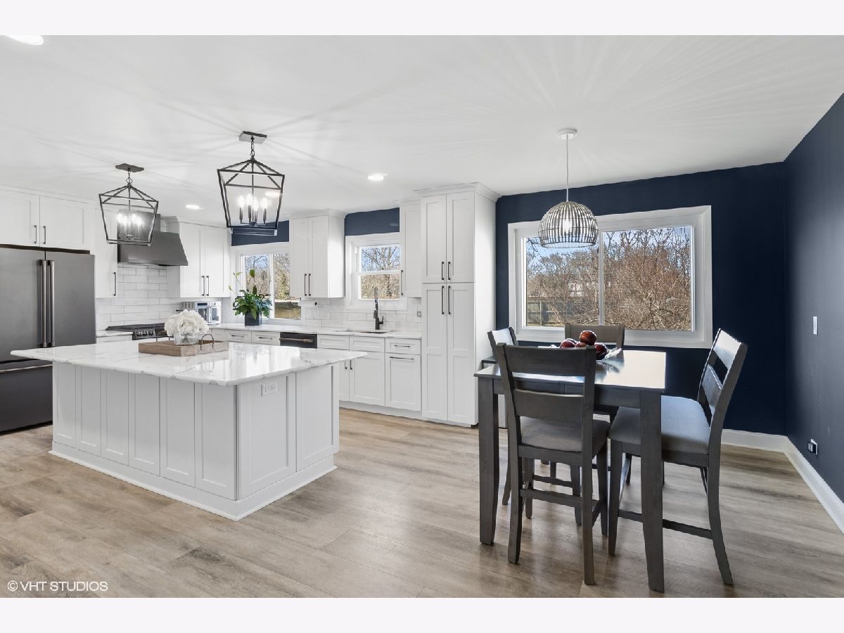 Prepare to be impressed by a home that blends style, comfort, and function in all the right ways! Step inside to discover an open, thoughtfully updated floor plan-highlighted by a stunning fully remodeled kitchen with elegant quartz countertops, designer light fixtures, classic subway tile backsplash, abundant white cabinetry, and oversized island with breakfast bar, GE Cafe black stainless appliances, and a sunny dining nook. The home's flow was made for entertaining, seamlessly connecting the main living areas. Upstairs, the spacious primary bedroom features a rustic barn door leading to a private en-suite bath. Two more bedrooms, each with generous closet space, and a shared full bath complete the upper level. Downstairs, you'll find a welcoming family room and updated half bath-ideal for movie nights or casual lounging. Slide open the glass doors to let the breeze in, or step out into your private, fully fenced backyard. Out back, enjoy unforgettable summer moments on the expansive, pergola-covered patio, surrounded by lush greenery-a perfect setting for cookouts, celebrations, or quiet mornings with coffee. But there's more! The bright English basement offers even more living space, complete with a laundry closet and endless possibilities-bedroom, home office, hobby space, or cozy retreat. This home also features an attached 2-car garage and is perfectly situated just minutes from award-winning schools, Augusta Park, the community aquatic center, Metra, shopping, dining, and everything Vernon Hills has to offer. Additional updates include a new roof in 2022, new paint throughout, new plush carpeting in 2023 and luxury vinyl floor in 2021.Showings begin on 4/24. Please book through Showingtime. For more information, call Emily Holthaus.