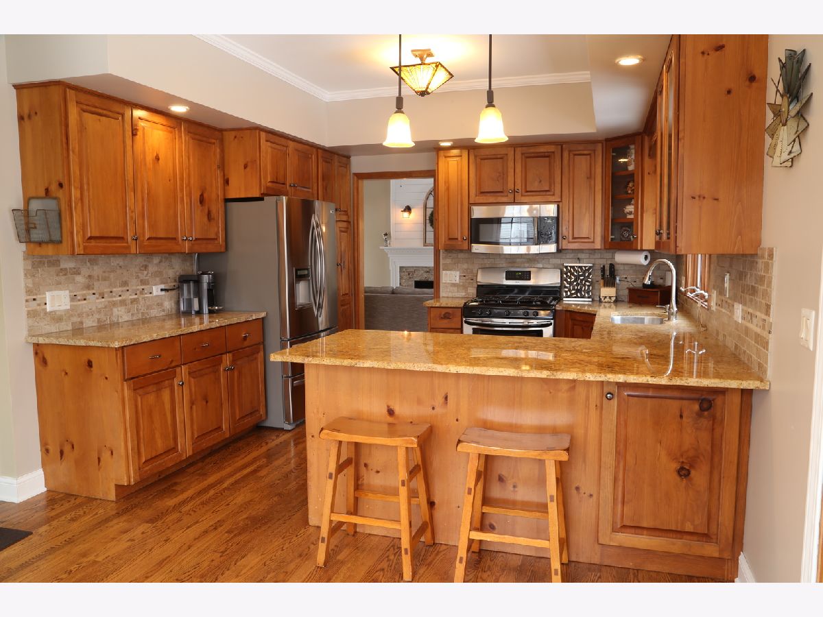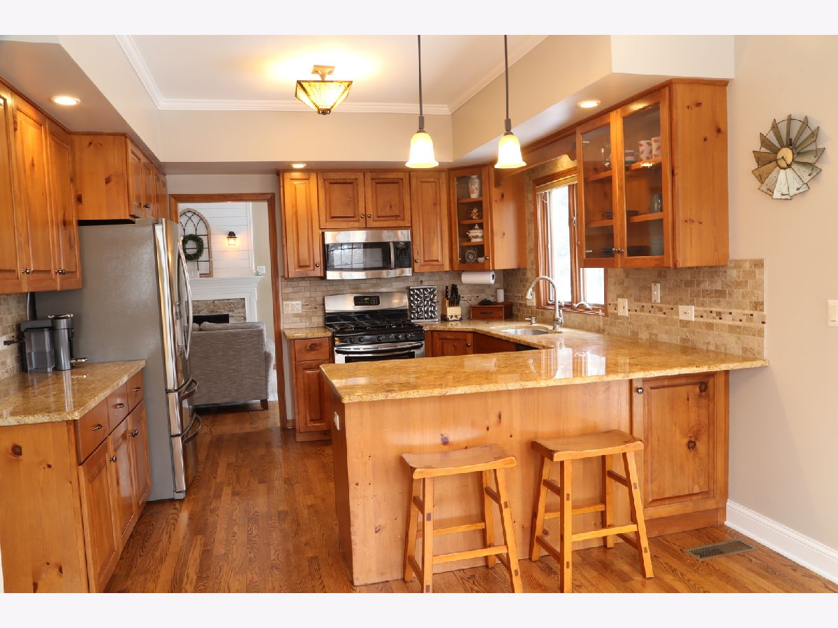 This beautiful home has so much charm and character. Fantastic curb appeal with large covered front porch. Once you walk through the door you will feel right at home. Homeowner has added wonderful upgrades, new hardwood floors, baseboards, crown molding, fresh paint throughout the first floor. Sunny eat in kitchen has custom cabinets, granite counter tops, back splash, stainless steel appliances, breakfast bar and eating area all surrounded by Pella windows and Pella siding glass door. Large First floor laundry with new cabinetry and sink. New carpet on stairs/hallway and spindles. Three bedrooms with potential over garage for 4th or keep as storage. Large master bedroom with updated bath. Finished basement is great for an additional family room and office. Basement has a 1/2 bath and storage area. Remodeled deck and door added from garage provides easy access to large fenced yard, fire pit and play set. Wonderful area to relax and entertain. Close to schools and shopping. THIS IS A MUST SEE TODAY!