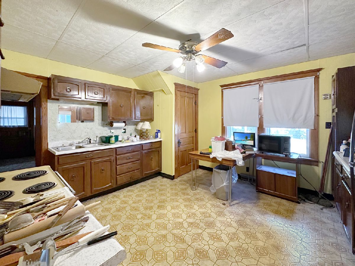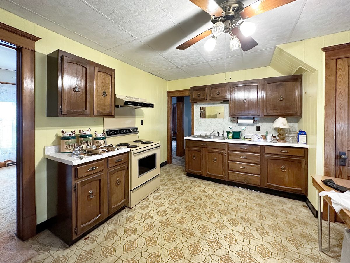 Situated on a Corner Lot, This Home offers Limitless Transformation Opportunities. Add your Creativity and Personalization with the Great Layout - Main Floor Laundry, Main Floor Primary Bedroom with Adjoining Bathroom, 2 Enclosed Porches, Large Living Room, Formal Dining Room and Spacious Eat in Kitchen. Old World Charm with Hard Wood Trim, Doors and Floors. Enjoy Tranquil, Small Town Living.
