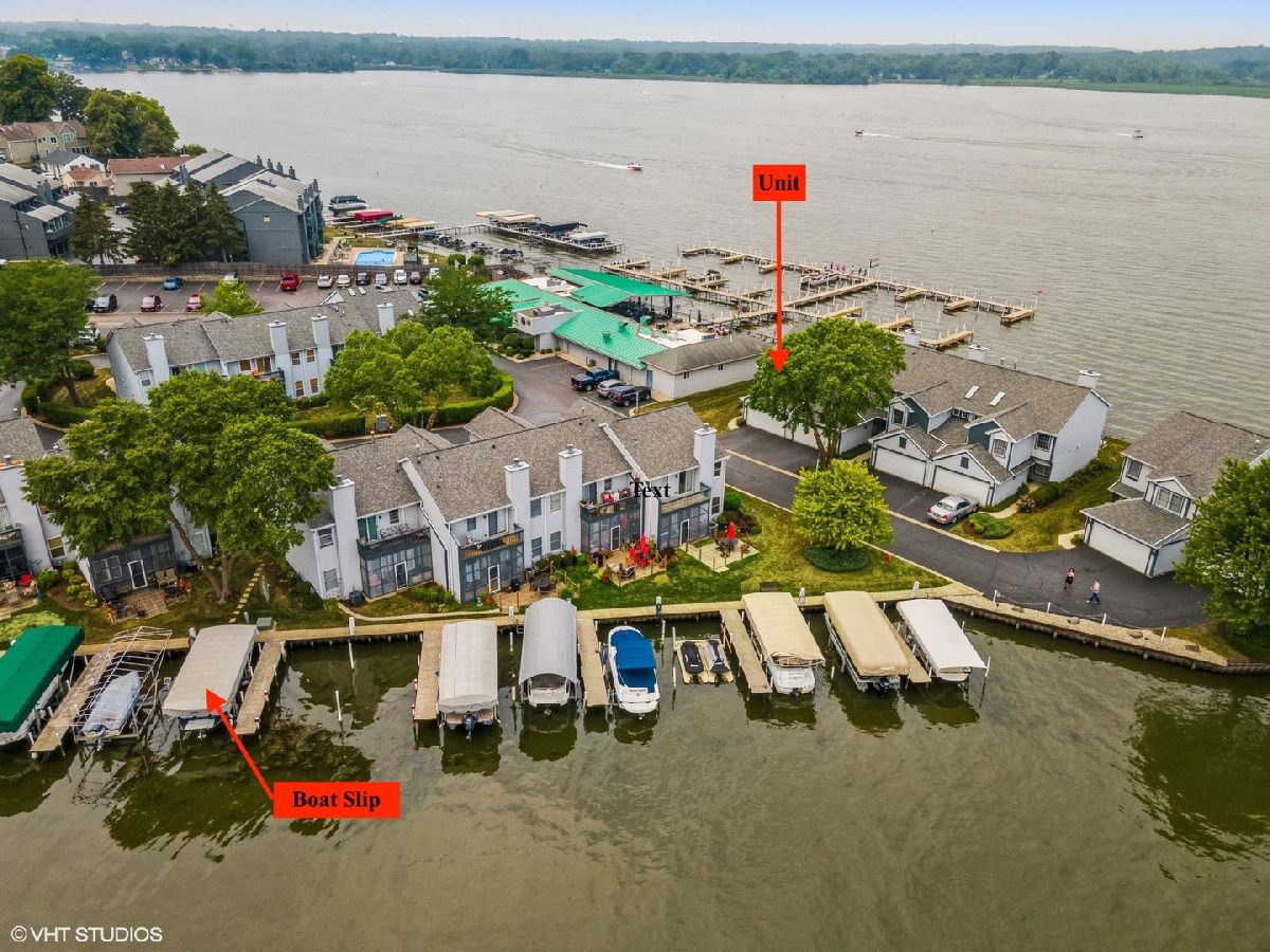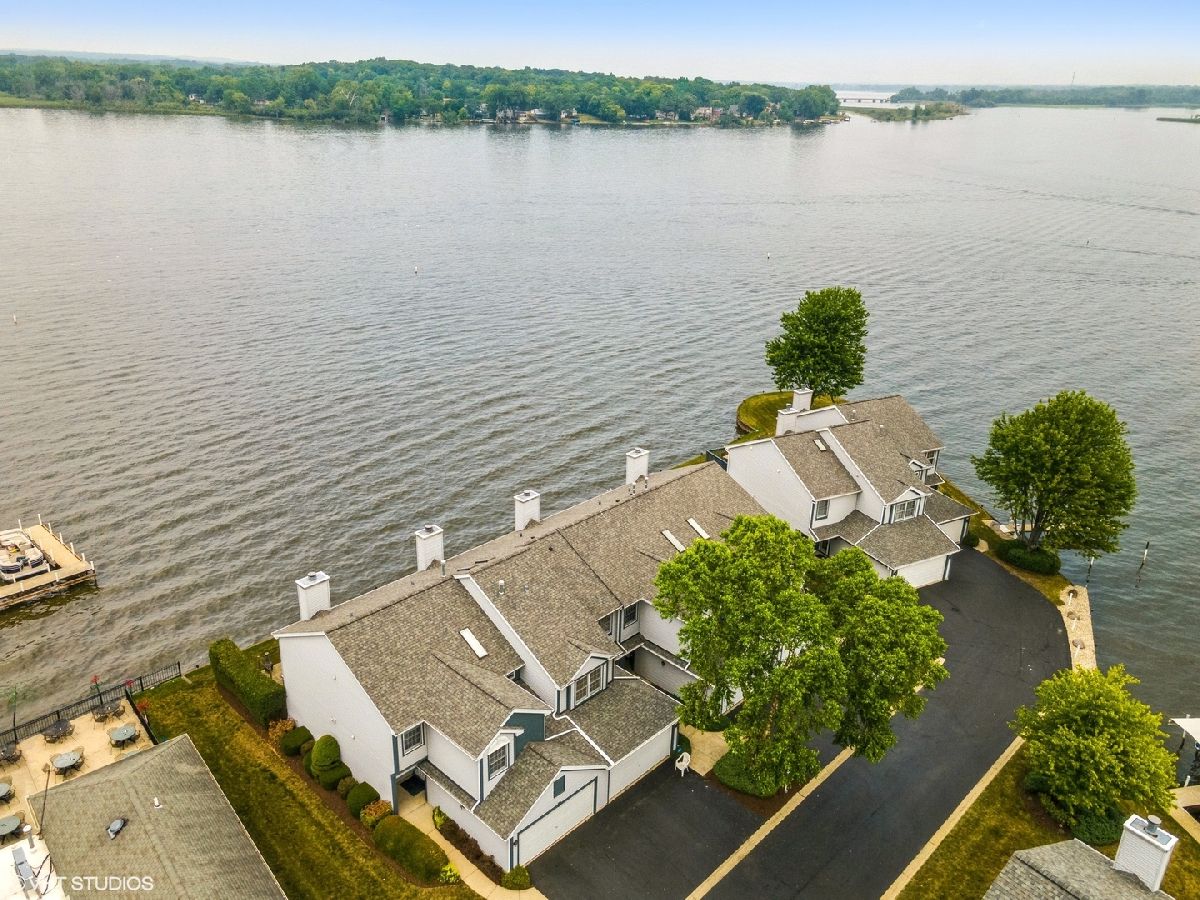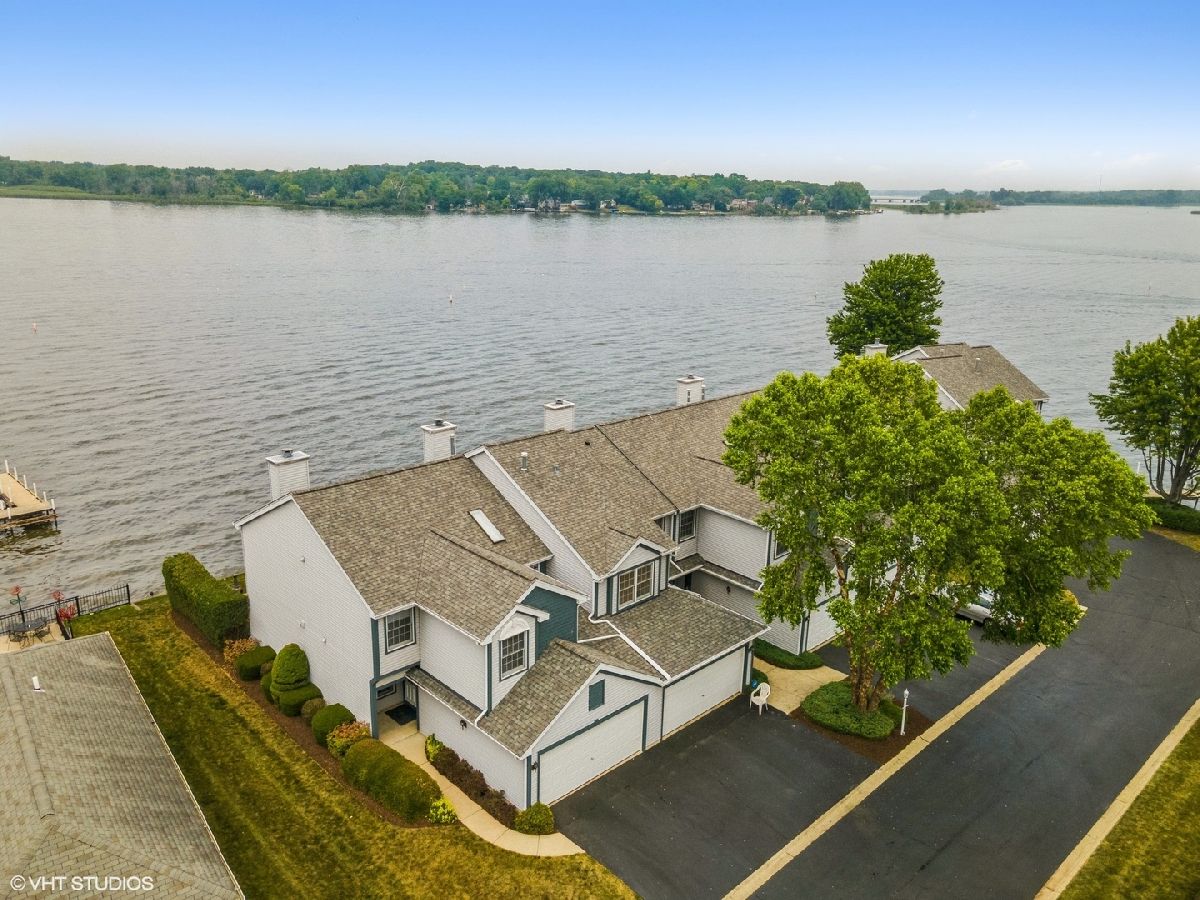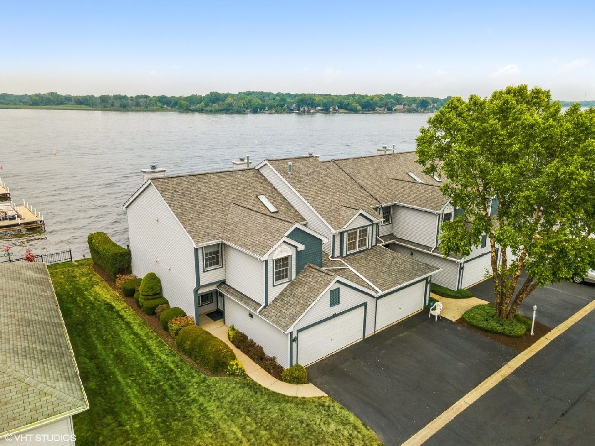 ***Multiple offers received. Best and finals due by 8PM Sunday, 7/25.*** Enjoy breathtaking sunsets from this beautiful 3 bedroom, 2 and a half bathroom Chain O' Lakes *waterfront* townhome in Fox Lake! Live maintenance free in this high and dry *end unit* that *includes a boat slip with electric and water at site.* The main floor boasts a spacious kitchen with a bay window breakfast nook overlooking the lake, a separate space for a large dining table that is open to the living room with fireplace, and a 1/2 bathroom. The screened-in porch leads to lovely patio area with ample room for grills and seating. Upstairs, the master bedroom has vaulted ceilings, an attached full bathroom with jetted tub and separate shower, a large walk-in closet, and patio doors that lead to a spacious balcony overlooking the lake. 2 additional bedrooms, a full bathroom, and upstairs laundry complete the 2nd floor. Generous closet space. City sewer and water. All appliances included. 2 car garage with room for storage. New roof, gutters, screens for porch, and hot water heater. Close to restaurants, amenities, and Metra line. Seller also has a 2017 CS23 Cobalt boat with ~135 hours and Shore Station electric lift for sale.