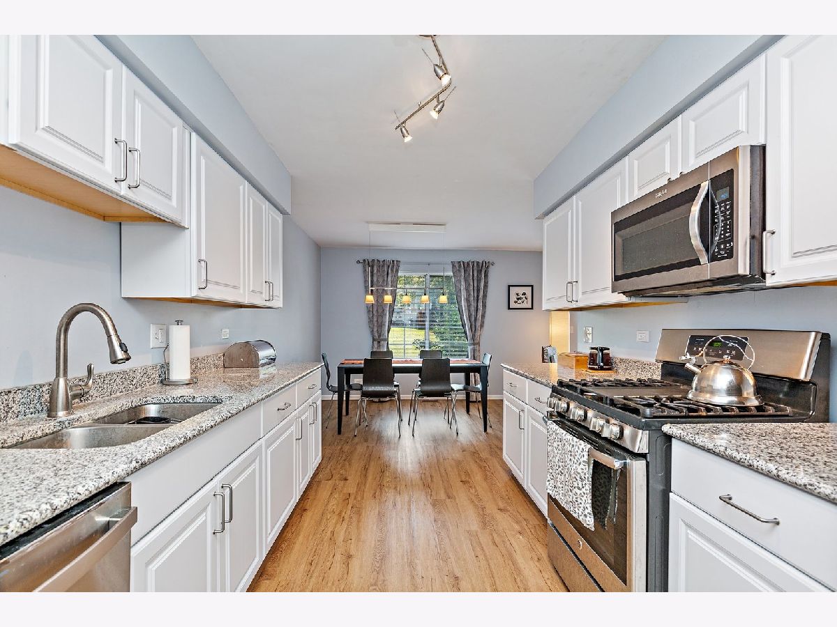 MOVE RIGHT IN! UPDATES GALORE! ENTIRE kitchen complete with granite counter tops, cabinets, and stainless steel appliances! plus newer fixtures! Updated bathrooms! Most of the house has been repainted with neutral colors! Solid surface flooring in the entire home, 3 bedrooms in the Second floor with two full bathrooms. The Main Floors offers a family room open to the dinning room area with plenty of windows that invite the outside in! The basement is finished and it is used as an exercise room/rec area and includes a full bathroom for your convenience. So many possibilities in this one of a kind home. Stop your search you found the one for you here! There's not much that hasn't been updated! GREAT location--walk to the movie theater, Starbucks, and SO MUCH MORE! Close to Route 62 and Minutes to the Randall Rd Corridor. You couldn't find a nicer home in this price point. Beautiful wooden deck to enjoy the exterior and front porch for your perfect rocking chairs. Transferable home warranty already in place that covers the entire mechanicals of the home until March next year Water included with HOA plus common area upkeep ! Washer and Dryer stay with the home. This TH is not FHA approved
