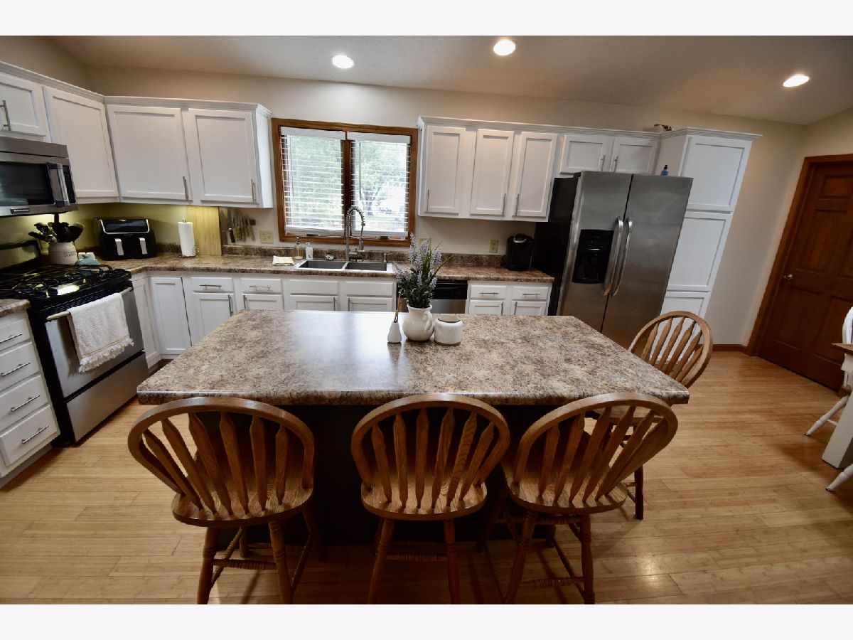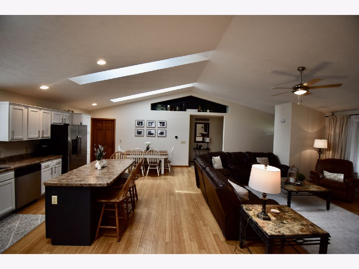 Small town living calling your name? This is the home for you! Lovely ranch home with spacious wrap-around covered porch, 3 bedrooms and 2 full baths! Master with en suite and walk-in closet, vaulted ceilings, Bamboo flooring throughout! Home features open spacious floor plan, great for gathering with friends and family inside and out! Main level also features a 4 seasons room with outside access- great for an office or a sun room! Home also has 2 car detached garage all situated on just over a half acre! Lower level is ready to be finished! Already has an egress window and a rough in for another bathroom! Come relax in this adorable home in a quiet peaceful small town setting.