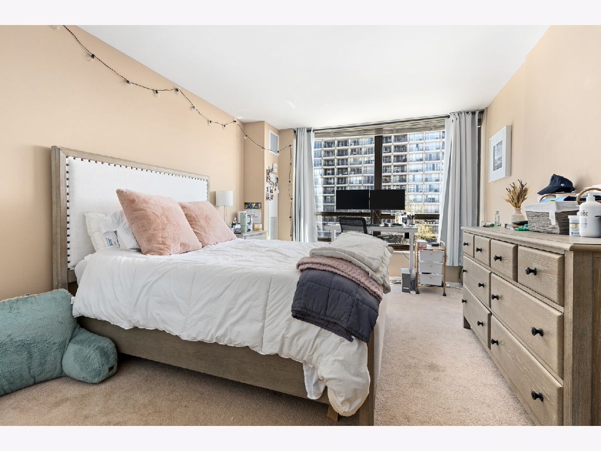 Stunning 2 bedroom, 2 bath residence with over 54 feet of wall-to-wall windows wrapping around the entire southwest corner. This sunny home has ideal natural light with south, east and west exposures. Enjoy vibrant sunsets at the end of the day with a summer barbecue on your own private uniquely curved balcony. The perfect space for entertaining family and friends. This spacious floorplan features hardwood flooring in living, dinning and hallways and 3 newer central heating/air-conditioning units. Light and airy kitchen has white cabinets, granite counters, seating bar space which opens to living/dining area and best of all, a huge picture window to take in the views while you cook. Primary bedroom offers wall of windows and updated bath. There is also an additional linen closet conveniently located in the hall next to the primary suite. Second bedroom has wall of windows and easy access to updated extra large bathroom across the hall. A closet was combined with this bath to create a very large uniquely spacious bath with excellent storage and built-in hamper. Assessments include heat, central air, internet and WIFI, cable TV with numerous premium channels such as Showtime, TIVO and 24-hour door staff/maintenance. Brand new just remodeled fitness center and yoga room with new equipment, outdoor swimming pool, sauna and whirlpool. Association also has: hospitality/party room with full kitchen, library, dry cleaners plus 24-hour access package room, secured bike storage and storage cage. Financially solid building, one of the best. No special assessments for over 25 years, yet major projects completed: elevators, HVAC, chiller, garage improvements including a new roof and more. Located in the heart of Lincoln Park, across street from park. Close to lake, park, zoo, jogging and bike paths, nature and history museum, conservatory, farmers market, Armitage boutiques, grocery, restaurants, nightlife and public transportation. Attached garage parking available. If you need 2 parking spaces: must be tandem, may have wait. Located in highly desirable Lincoln Park School District. This home offers exceptional space for the price.