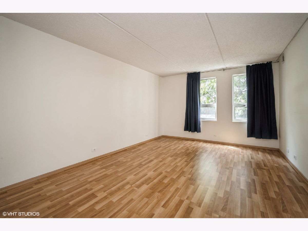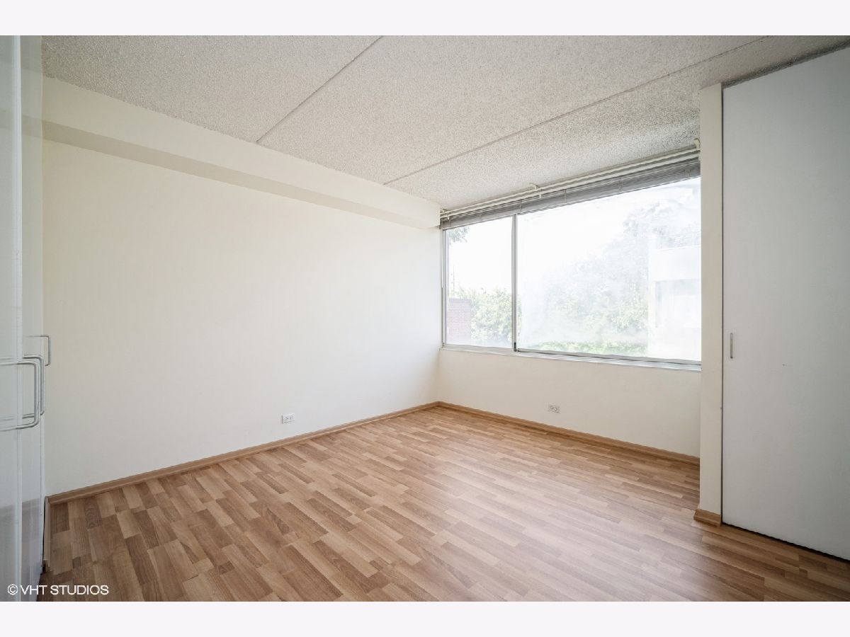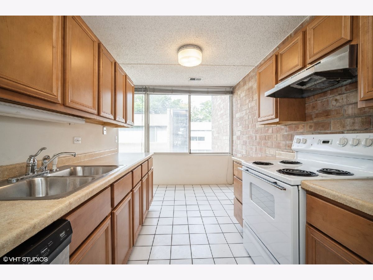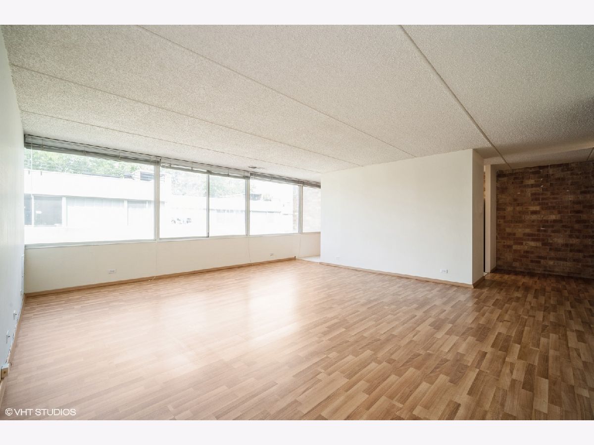 Extraordinary opportunity to make this in-town 2-bedroom/2-bath condo with walls of windows and lovely exposed brick in the entry and kitchen your own. Laminate wood floors throughout. Includes two tandem parking spaces and a storage locker in the underground garage. Free shared laundry down the hall. Desirable building with beautiful outdoor courtyards and a shared roof terrace. Fabulously located within walking distance of the train and Highland Park's shopping & restaurants. Close to Highland Park Hospital and Highland Park's excellent schools. This is an estate sale being sold AS-IS; could benefit from some TLC.
