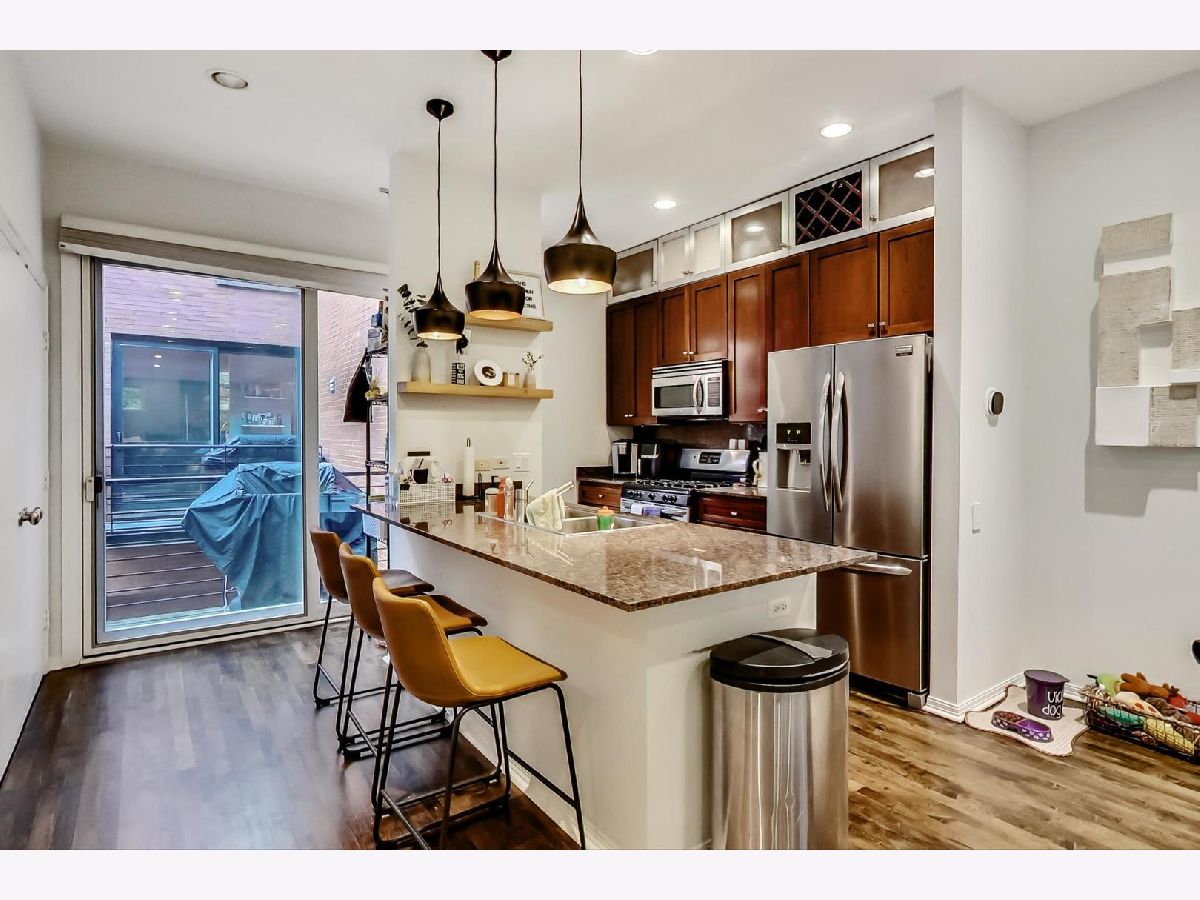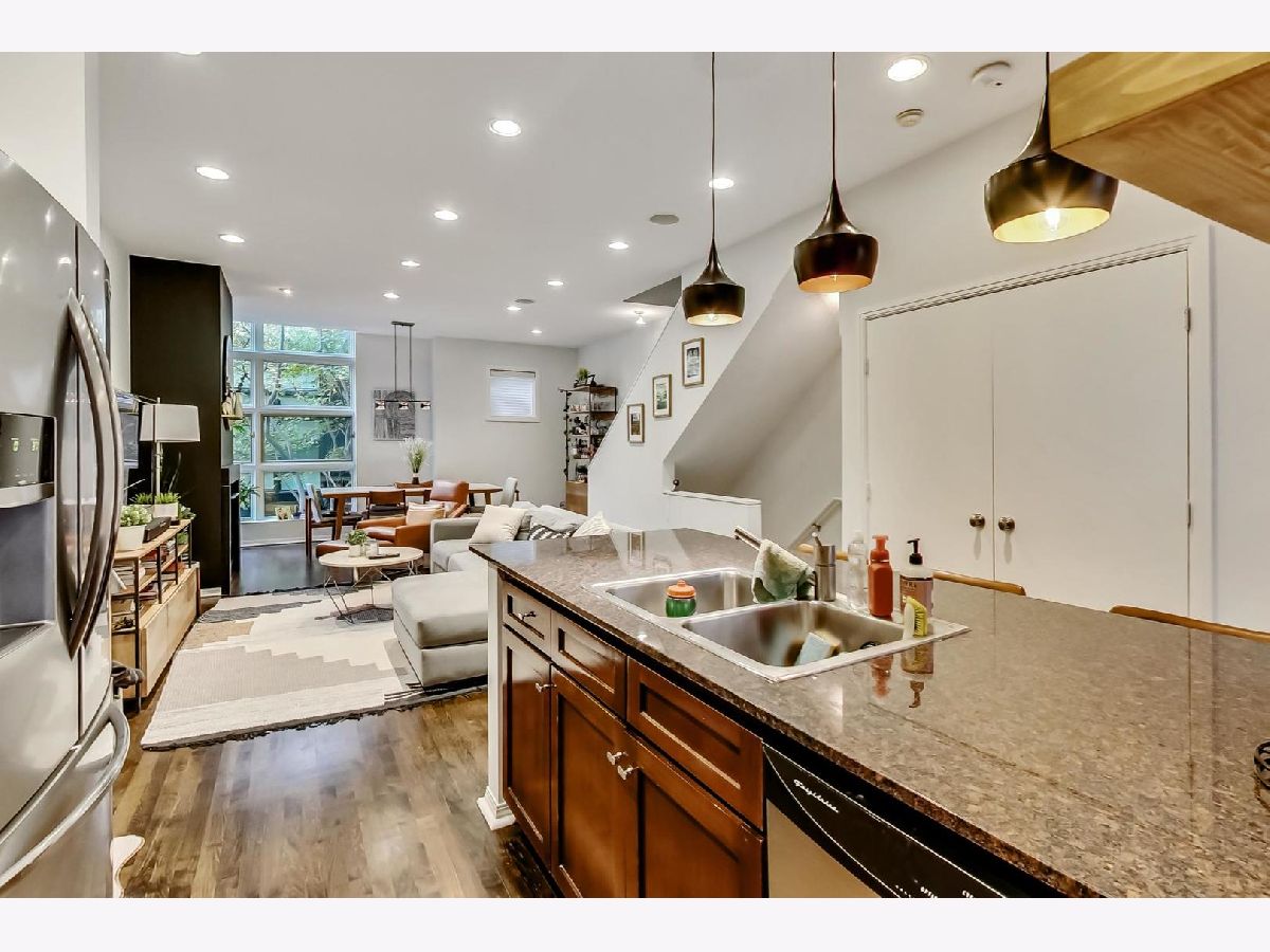 3 Bed + office/flex space, 3 Bath all-brick townhouse available in highly sought after Willow Court! Situated on a quiet, tree-lined, street in ideal Bucktown/Wicker Park location, this home lives large with over 2000 sq. ft. of living space. Private front entrance leads to entry foyer w/ access to 3rd bedroom and full bathroom. Inviting sun-drenched main level features eat-in kitchen w/ granite island, upgraded Frigidaire refrigerator/freezer, SS appliances, living room w/ gas, ventless fireplace, and oversized dining area w/ views of courtyard from floor-to-ceiling windows. Bedroom level contains primary suite w/ walk-in closet, en-suite primary bathroom w/ marble tiling, and 2nd bedroom and bathroom w/ upgraded modern vanity. Light filled top level houses flex space that can be used for an office or workout room and leads to outdoor 500 sq. ft. roof deck! Attached full 2-car garage with ample storage space. Walk or bike the 606 trail and step out your front door to Damen St. to experience all of Bucktown's popular restaurants, shops, and boutiques! Easy access to I-90/94 and public transportation!