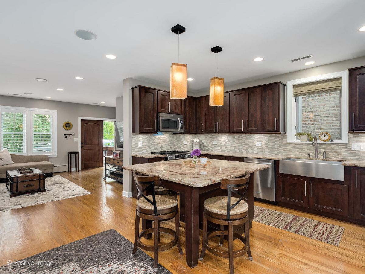 Amazing, cottage style, home with beautiful, original, brick facade in prime Bucktown location! This charming home was fully rehabbed throughout including a back addition and a fully dormered 2nd floor. Upon entry into the foyer, the first level is an open concept, flex-space with living, kitchen, dining, powder room, family room, recessed lighting, and hardwood floors throughout. The living room features space for oversized furniture, large windows custom plantation shutters, and a custom, glass enclosed, fireplace. The expansive kitchen has an abundance of cabinetry, glass tiled backsplash, stainless farmhouse sink, granite counters, and a massive island with table-sized seating. There's also space adjacent for a dining table or desk. The back addition has an area for formal dining or a family room with a bay window overlooking the English-style inspired garden and patio. Additionally, there's a mudroom and newer staircase leading to the 2nd floor. Upstairs is a vaulted sunroom with a wood plank ceiling and skylights - a perfect location for a home office or exercise spot. This floor also has brand-new carpeting and 3 bedrooms and 2 full baths. The primary suite is nicely sized and features 2 closets - one a walk-in, and a newly updated bathroom with an oversized, spa-like shower, subway tile, custom vanity, and skylight. There are 2 more bedrooms and an updated hall bath. The built-out basement has a play area, separate rec. room with office nook, half bath, storage, and a laundry room. To ensure the investment, there's a professional flood control system with check valve and back-up. Other features include dual zoned A/C, radiant heat, new hot water heater, custom plantation shutters, recently maintained fireplace, and chimney. The fully fenced, exterior is a private oasis with a large brick patio and raised garden beds. The brick 2-car garage was recently rehabbed with a new, re-enforced, raised ceiling, built-in interior storage, and a giant roof deck with metal stairs. This home is perfectly located on a very quiet, one-way, tree lined street, and so close to Pulaski school, amazing shops, restaurants, the 606 trail, Holstein pool, parks, EL stops, I-94 and more. Wow!