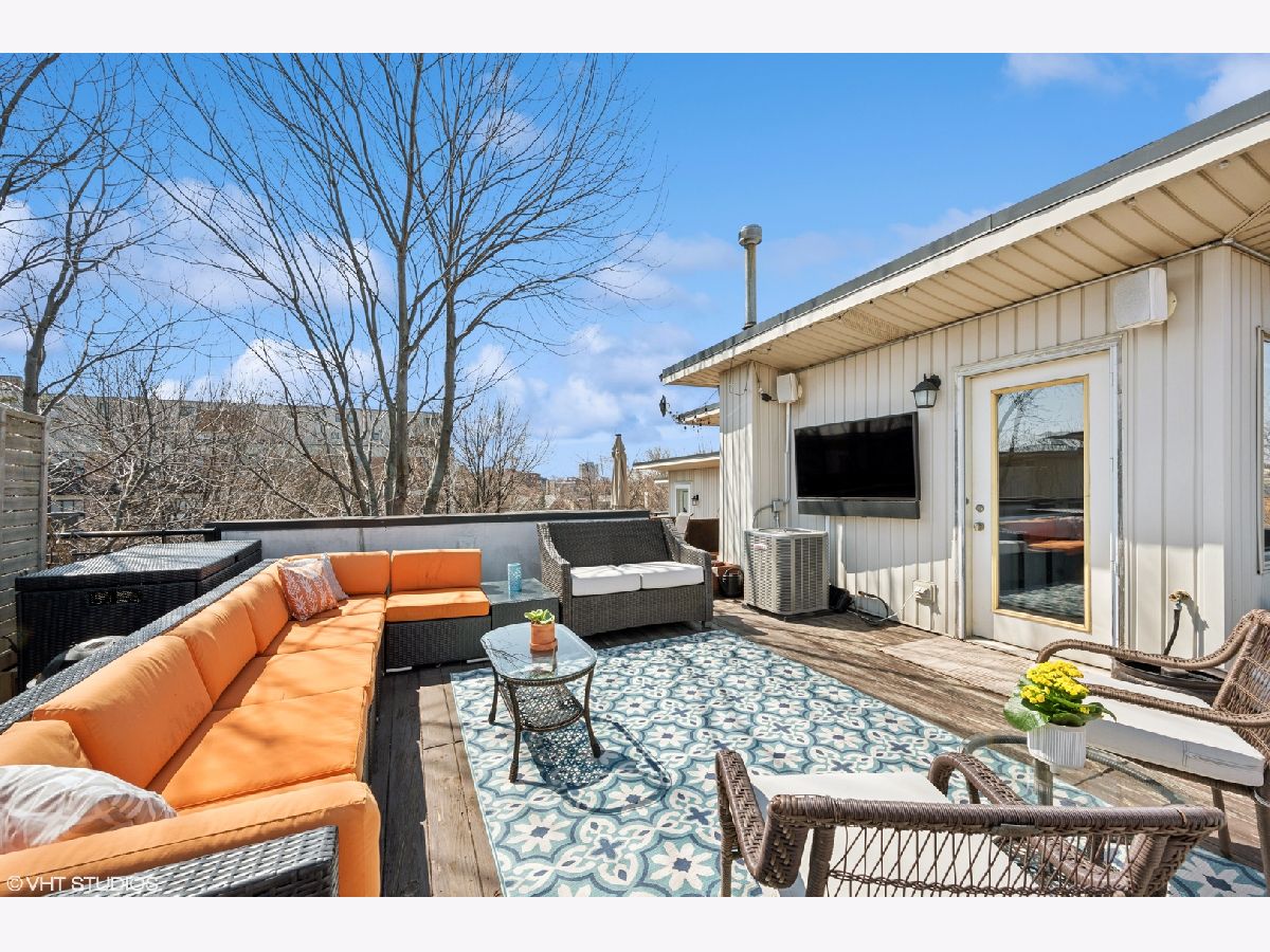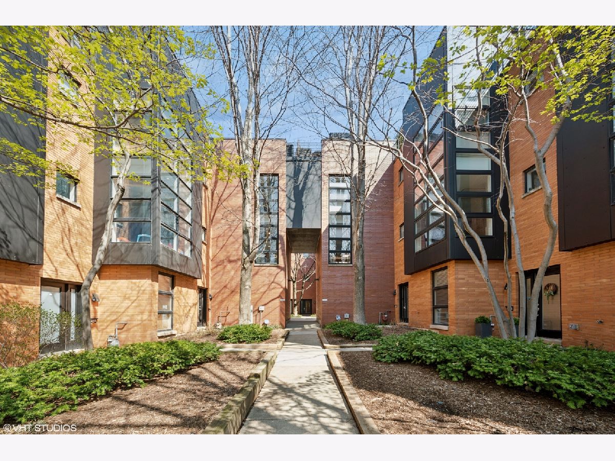 Welcome to Willow Court-a rarely available 4-level, 2 bed + office, 2 bath townhome with an attached 2-car garage that lives like a single-family home. Enjoy star-filled nights on your massive private rooftop deck in the heart of Bucktown. The entry level features a bright foyer, utility room with front-loading laundry and 2-car garage with custom storage.The sun-filled main living level offers an open layout with wood-burning gas start fireplace and space for dining. Gorgeous white kitchen includes granite countertops with island and ample cabinet space. Step out to your private balcony, perfect for morning coffee or grilling. Upstairs, find two generous bedrooms, including a luxurious primary suite with marble tile bath, dual vanity, walk-in shower, and professionally organized walk-in closet. The second bedroom is a perfect flex space for a guest room, gym, or nursery. A second full bath with soaking tub and stylish finishes completes this floor. The top level includes a bright office/den that opens to your stunning rooftop deck-ideal for entertaining, lounging, or gardening. Located in a quiet, landscaped courtyard just steps from The 606 Trail, Six Corners, parks, Mindy's Bakery, Big Star, and all the shops, restaurants, and nightlife on North, Damen and Milwaukee. Easy access to the Blue Line, Metra, and expressways. Urban living with a neighborhood feel!