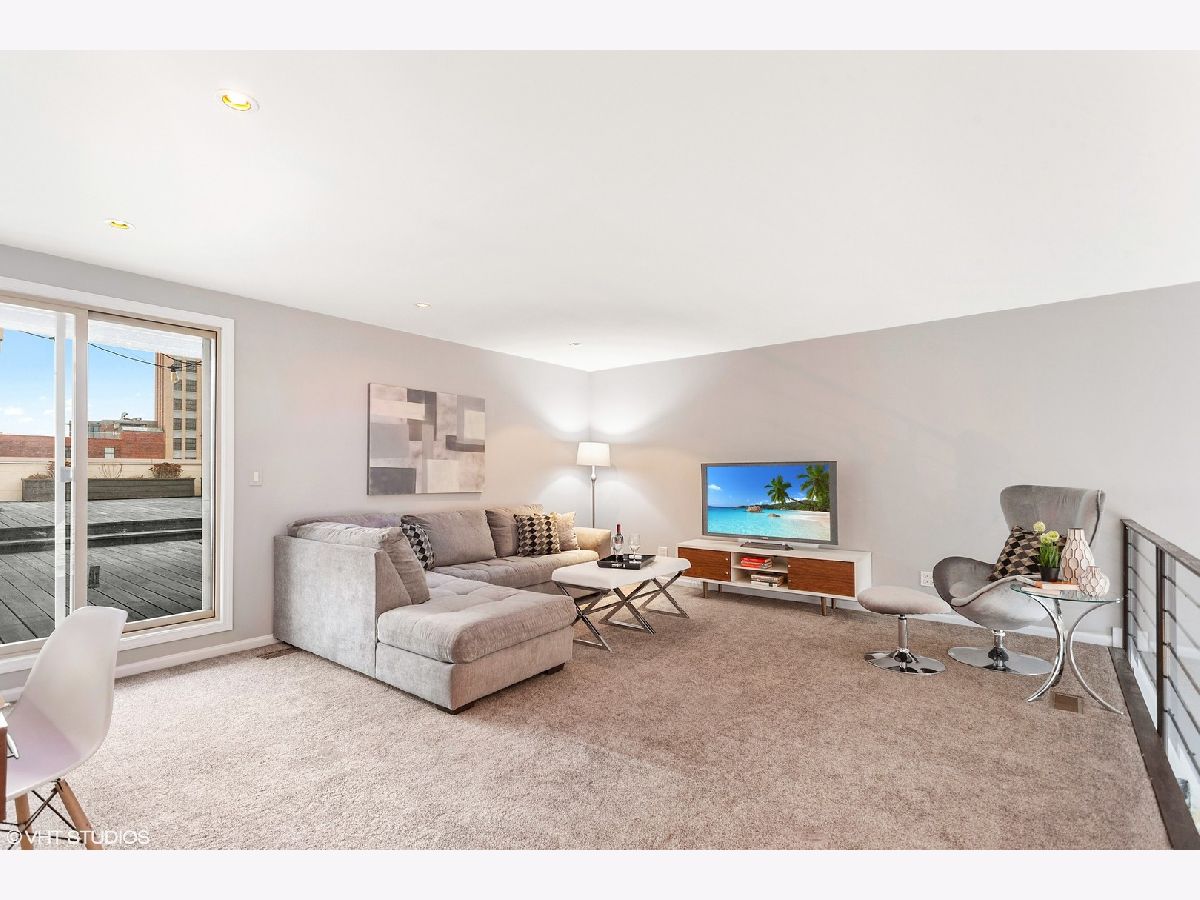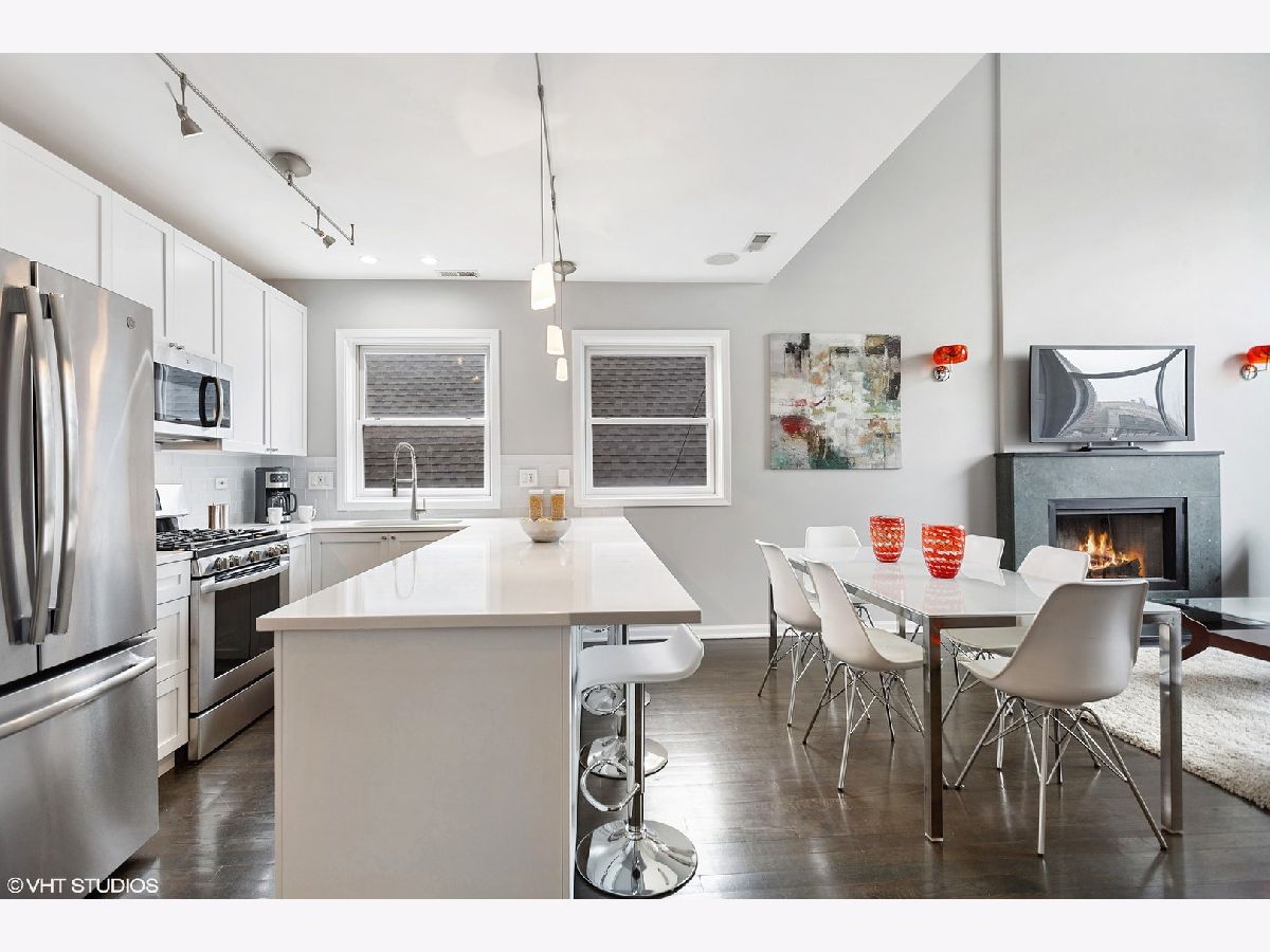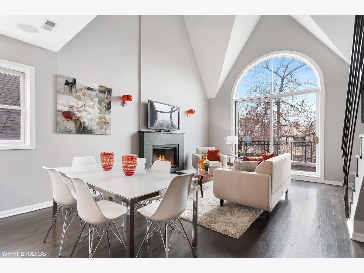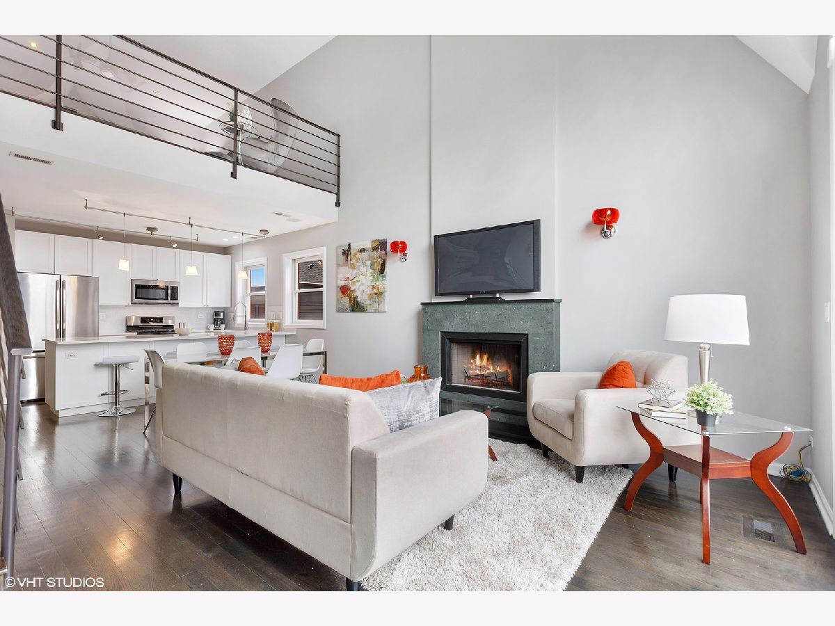 NOT YOUR COOKIE CUTTER PENTHOUSE! RARELY AVAILABLE MODERN DUPLEX-UP w/ 3 OUTDOOR SPACES & MASSIVE PRIVATE ROOF-TOP DECK IN HOT WICKER PARK IS AN ENTERTAINER'S DREAM HOME! ***Unit is Vacant & cleaned & can be shown now! Spacious renovated 3 bed, 2 bath + lofted family room penthouse in extra-wide building is move-in ready. Unique duplex-up with open floor plan features 18 ft. cathedral ceilings and south facing floor-to-ceiling windows provide an abundance of natural light all day long! Outdoor oasis with 3 private outdoor spaces including terrace off main living area, balcony of master suite & huge walk-out roof-top deck with pergola located right off 2nd level family room. Main level features all 3 bedrooms, white chef's kitchen, separate living room & dining room spaces, dark stained solid hardwood flooring and wood burning gas fireplace with marble surround. Front terrace off living room overlooks quiet one-way tree lined street and is perfect for grilling. Remodeled white kitchen (in March 2020) with quartz countertops, glass tile backsplash, stainless steel appliances and huge breakfast-bar overhang for up to 5 bar stools. Large Master suite has high ceilings, can easily fit a king-size bed, 2 large dressers, has double closets and a private balcony. Master bathroom features white double vanity with granite counters and "European" frameless glass shower and whirlpool tub. 2nd and 3rd bedrooms are spacious and have ample closet space. Second level offers a large lofted second living space overlooking main level....great for a family room plus office or play area and walk right out to the expansive 20' x 34' built-out roof top deck with pergola, planters and lighting for night-time entertainment. Tons of storage throughout, side by side washer/dryer in laundry room, and 1 gated and secure parking space included. Prime Wicker Park location, just minutes to the North/Damen Blue Line EL, Big Star, six-corners, retail dining, shopping and nightlife! MUST SEE ALL PICS!