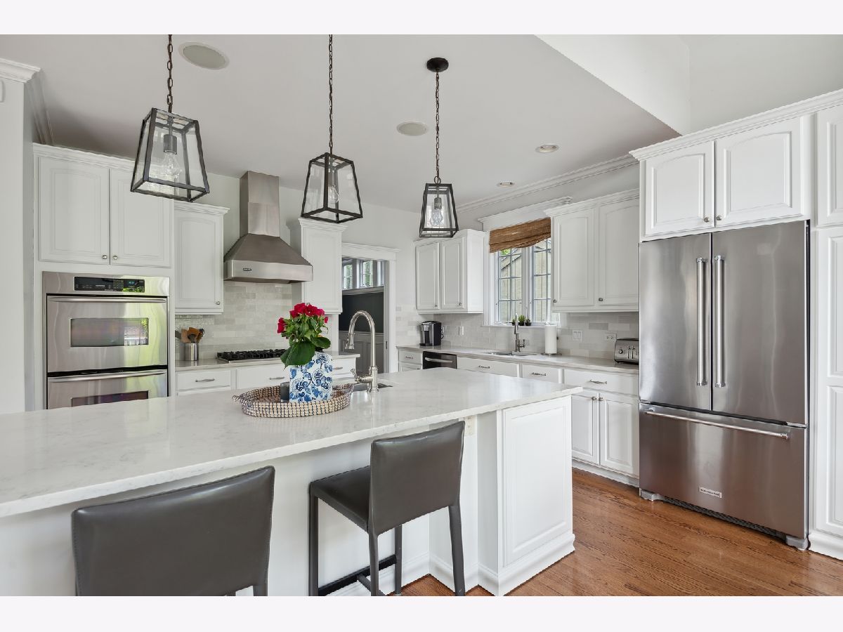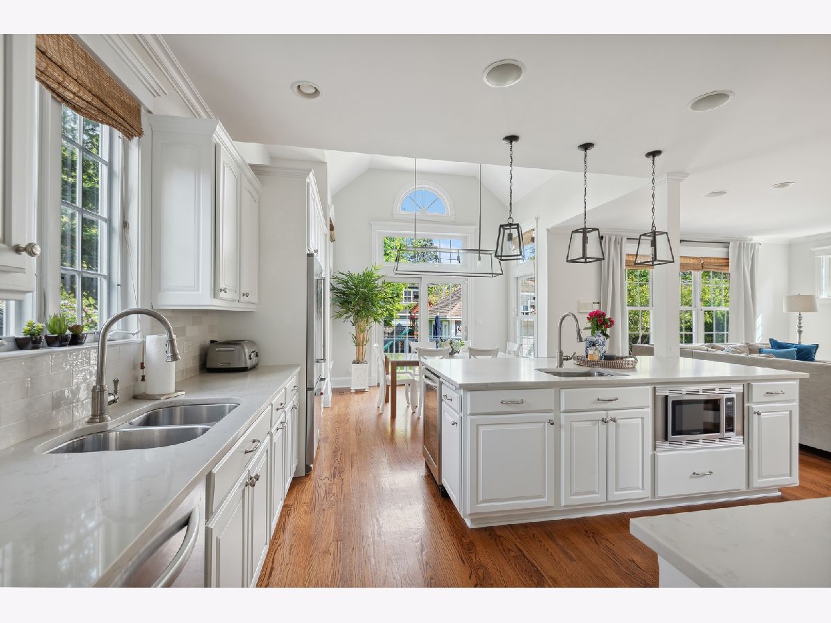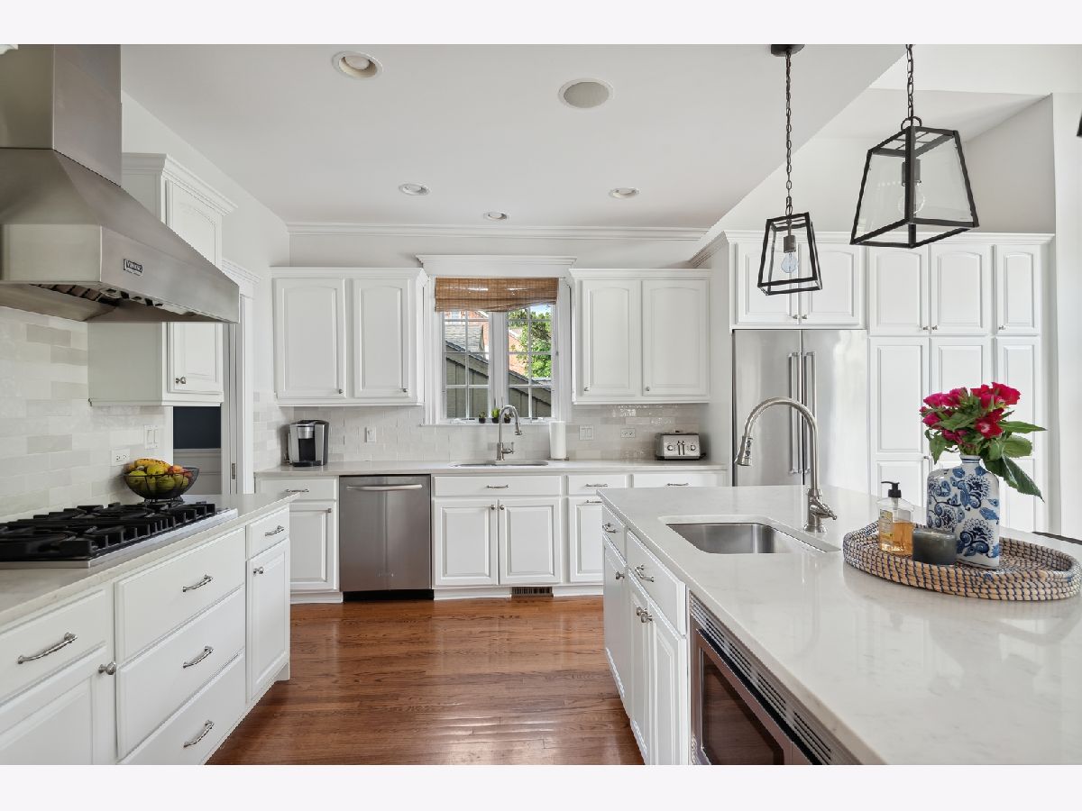 Move right into this picture-perfect Wilmette home! Located in the desirable Kenilworth Gardens neighborhood, close to the Metra, schools, parks, and the beach, this newer construction home offers 5 bedrooms, 4 1/2 baths, a dedicated office, gym, and over 4,000 square feet of living space. The large living room is bathed in natural light and features a lovely gas-log fireplace. The easy flow to the gracious dining room is perfect for entertaining or large family gatherings. The cook's kitchen was recently updated with gorgeous quartz countertops and features tons of workspace, storage, and an amazing connection to the breakfast room and family room. A light-filled breakfast room with vaulted ceilings leads out to the back deck and patio, and the comfortable family room is perfect for hanging out and relaxing. Upstairs you'll find a huge primary suite with high ceilings, a massive walk-in closet, and a lovely 5-piece bathroom with a soaking tub, separate shower, and dual sinks. Two additional large family bedrooms, a great hall bathroom, and 2nd-floor laundry complete this floor. The third floor features the 4th-bedroom suite with treetop views, a window seat, and its own bathroom. The lower level has great ceiling height, a large recreation area with media center built-ins, a dedicated office, a workout room, a storage room, and a lovely 5th bedroom suite with a full bathroom. Outside, you'll find an awesome bluestone patio for entertaining, a playset, and a detached 2-car garage. Don't miss this fantastic home in a great location!