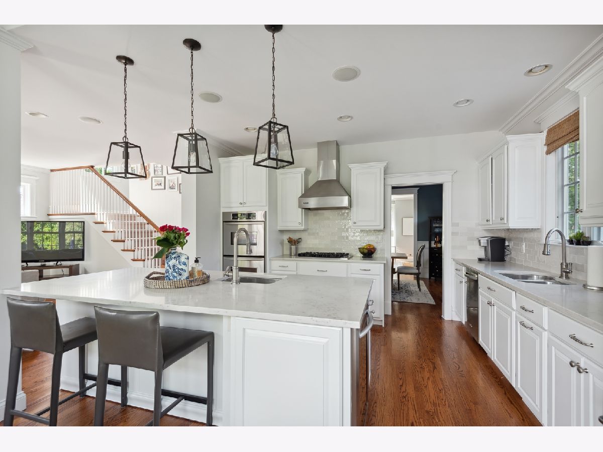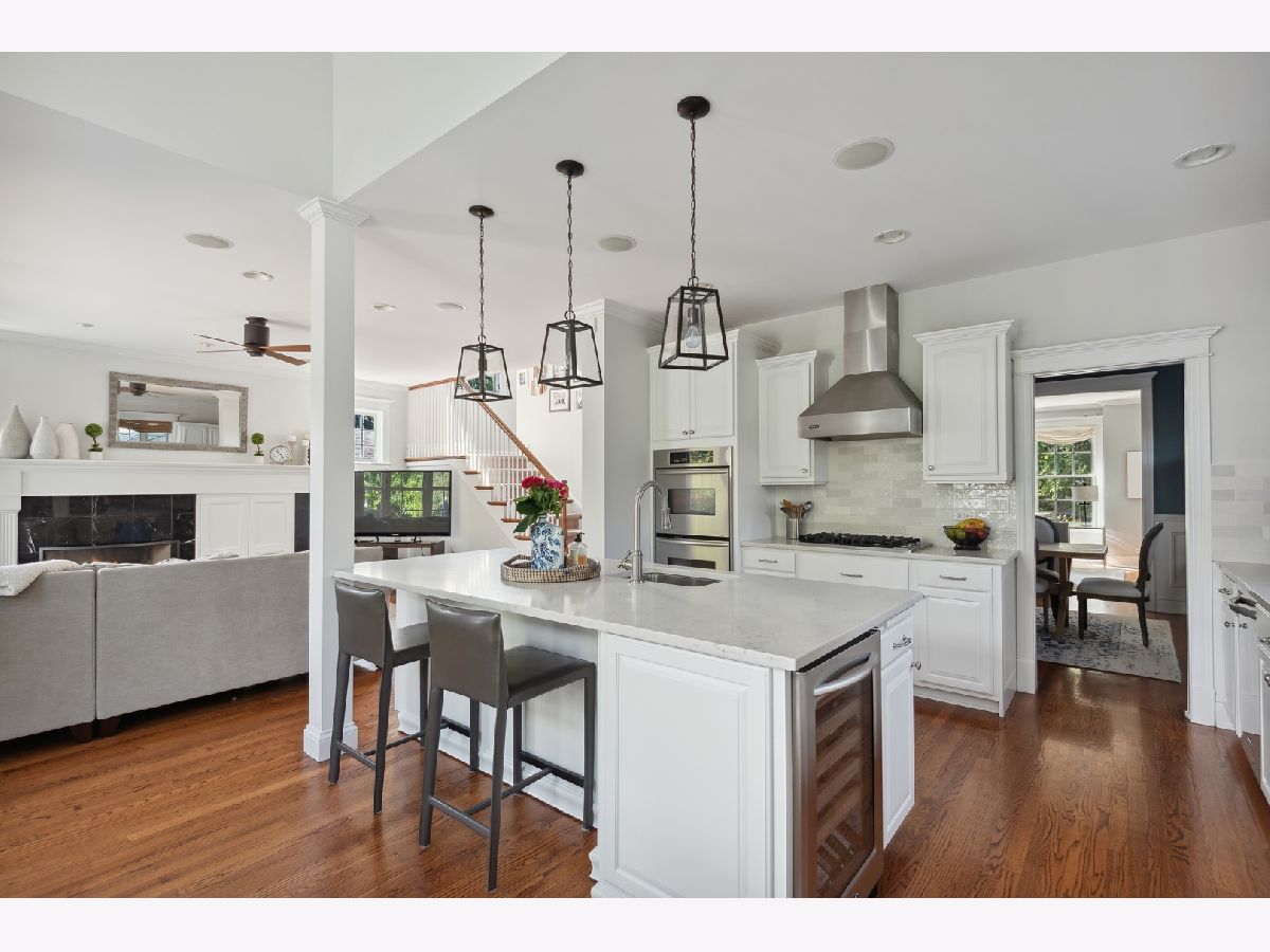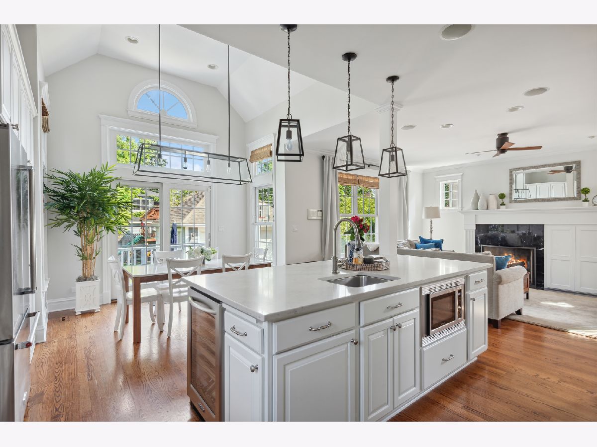 Move right into this picture-perfect Wilmette home! Located in the desirable Kenilworth Gardens neighborhood, close to the Metra, schools, parks, and the beach, this newer construction home offers 5 bedrooms, 4 1/2 baths, a dedicated office, gym, and over 4,000 square feet of living space. The large living room is bathed in natural light and features a lovely gas-log fireplace. The easy flow to the gracious dining room is perfect for entertaining or large family gatherings. The cook's kitchen was recently updated with gorgeous quartz countertops and features tons of workspace, storage, and an amazing connection to the breakfast room and family room. A light-filled breakfast room with vaulted ceilings leads out to the back deck and patio, and the comfortable family room is perfect for hanging out and relaxing. Upstairs you'll find a huge primary suite with high ceilings, a massive walk-in closet, and a lovely 5-piece bathroom with a soaking tub, separate shower, and dual sinks. Two additional large family bedrooms, a great hall bathroom, and 2nd-floor laundry complete this floor. The third floor features the 4th-bedroom suite with treetop views, a window seat, and its own bathroom. The lower level has great ceiling height, a large recreation area with media center built-ins, a dedicated office, a workout room, a storage room, and a lovely 5th bedroom suite with a full bathroom. Outside, you'll find an awesome bluestone patio for entertaining, a playset, and a detached 2-car garage. Don't miss this fantastic home in a great location!