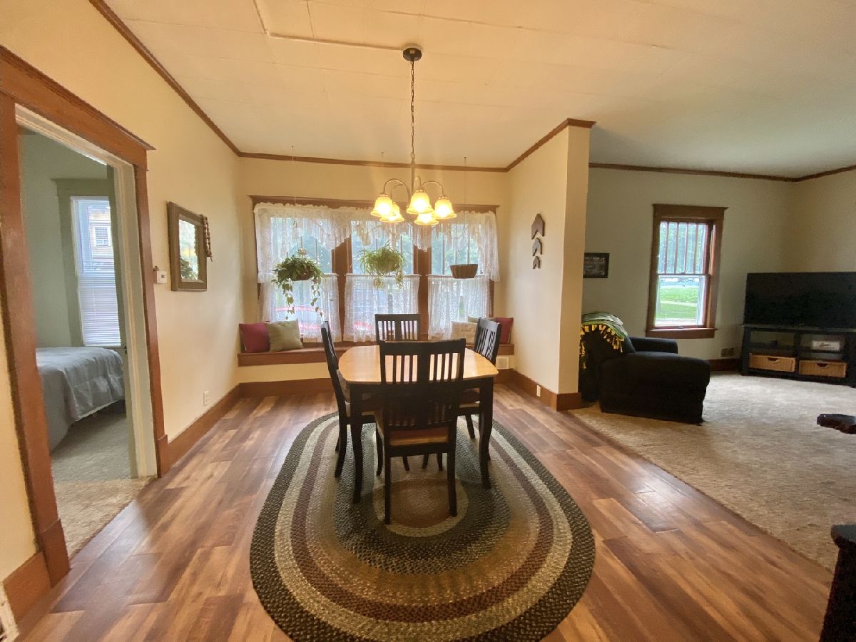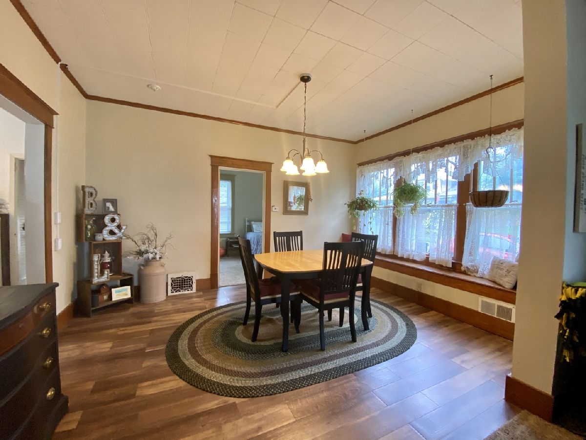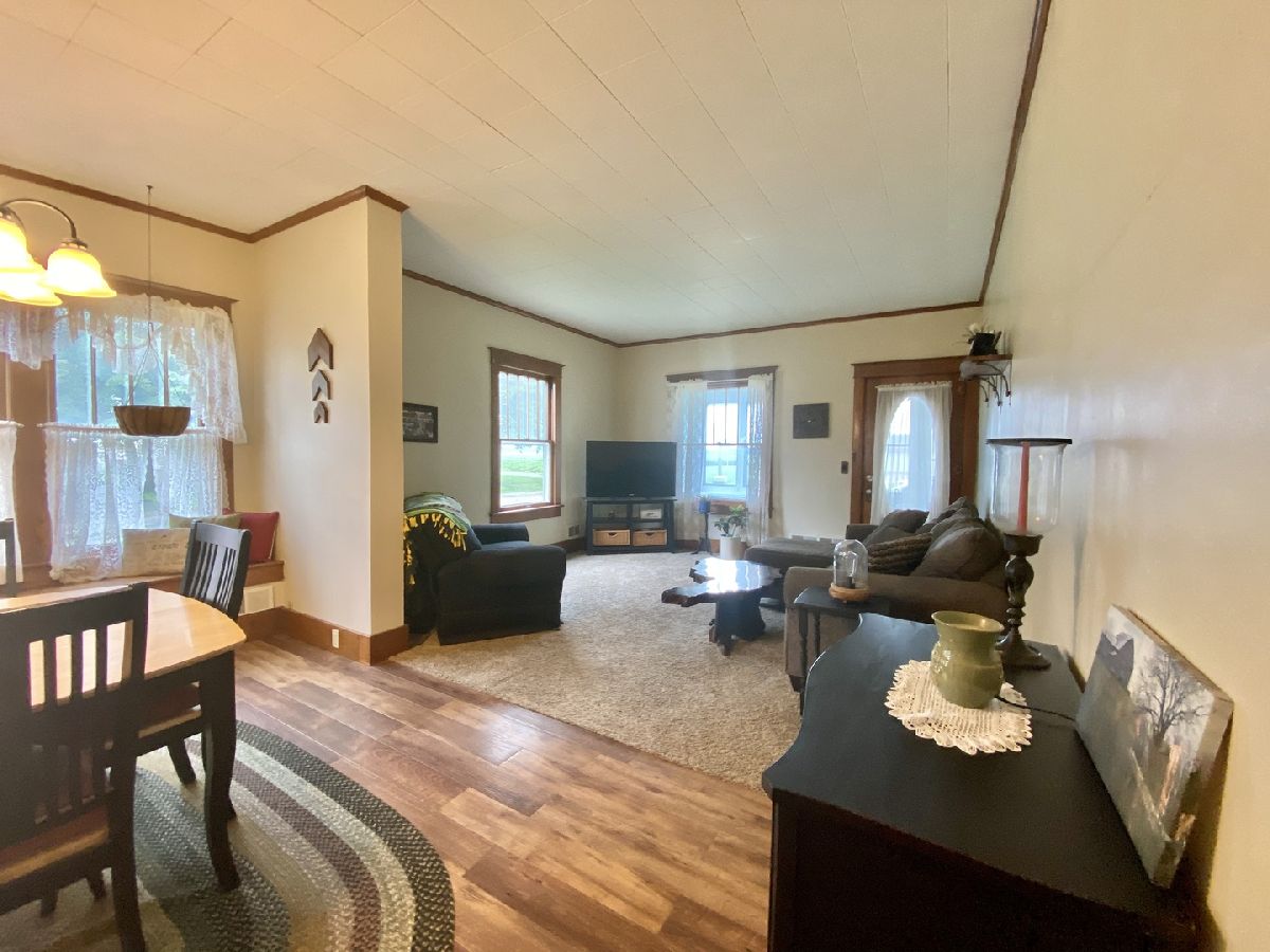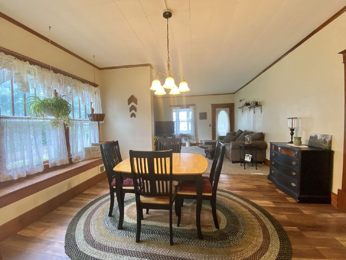 Cute bungalow on a corner lot with a great fenced yard, garage, deck, spacious front porch in a nice little country town. Huge master bedroom up fits king sized bed and has bonus areas. 2 bedrooms on the main level so 3 total. Many newer windows, updated kitchen with fresh look and ceiling fan, appliances that remain, and washer & dryer is negotiable as well. Much fresh paint, large dining room with charming window seat. New water heater 2015, Air 2013, Furnace has new blower 2018. Hardwood flooring in the front bedroom and some newer interior doors. Radon system already installed. This is a great place to call home!