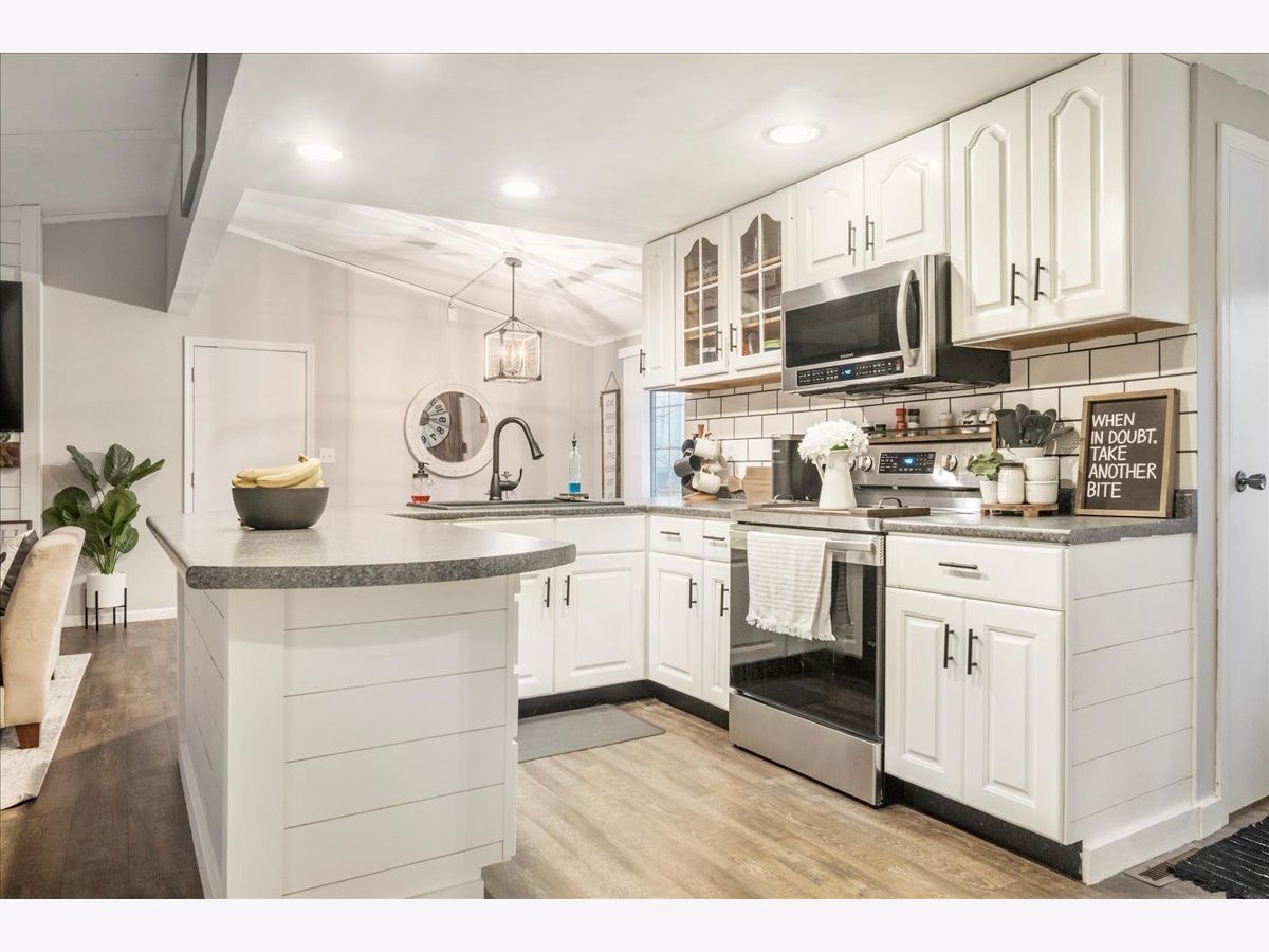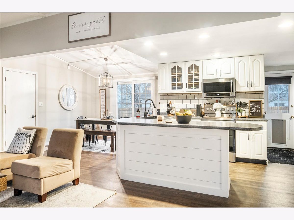 Wow! That is exactly what you will think when you are being shown this home before you even get inside, because the curb appeal will definitely catch your attention. Really nice covered front porch that brings you in to the front door that lets so much natural light in. This gorgeous and nicely remodeled ranch home has all main floor living, beautiful vaulted ceilings and fresh paint throughout. This owner had a beautiful vision that came to life and now it is yours to enjoy, because it is absolutely move in ready!! The newly remodeled kitchen opens into the living room and dining room. Enjoy TV while cooking? No problem here! The kitchen has beautiful white cabinetry with amazing and new stainless steel appliances. All appliances stay with this home! How awesome is that shiplap island and backsplash?! Everyone wants that! How can you pass up a living room with a super cozy fireplace?! You can't! The dining room looks out on to the huge deck with built in bench seating. What about the much needed office space? Don't worry that's here too! Beautiful and new luxury vinyl plank flooring throughout most of the main level. Welcoming you down the hallway to the 3 bedrooms is awesome board and batten. The master bedroom is nice sized with a gorgeous accent wall, floating shelving by the bedside and cozy carpeting. This room makes you feel so cozy! The 2nd bedroom is also nice sized and has double closets. The full bathroom is amazing as it includes the washer and dryer, new shelving and a really good sized closet. You have to see the before and after pictures. Again, you will be thinking, wow! Heading towards the basement is the 1/2 bath with its new toilet and vanity. The basement is unfinished and can be used for storage space or potential to finish! Really nice wide driveway to the oversized 2 car heated garage that is 24x29! Plenty of room for 2 cars and storage. Yes, it is heated! A nice feature is that you can enter the basement from the garage. Also, what is really nice is that there is a gravel drive in front of the house that connects to Brook St. and the concrete driveway. That's not it. This home sits on a really good sized corner lot and is completely fenced in!! Did I mention the fence is new? Yes, that is new! This home has gone through an amazing remodel in the past 2 years and you just can't pass it up. Too many awesome updates to mention-almost $12,000 in total updates! Water Heater 2021 and Roof 2012. All this for the price? It won't last long!