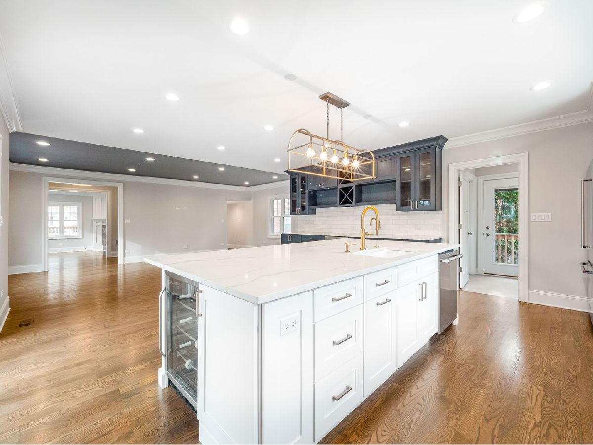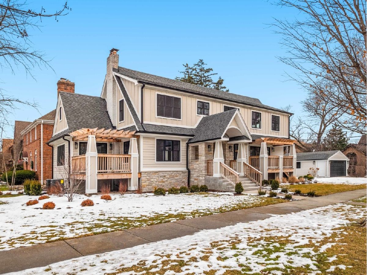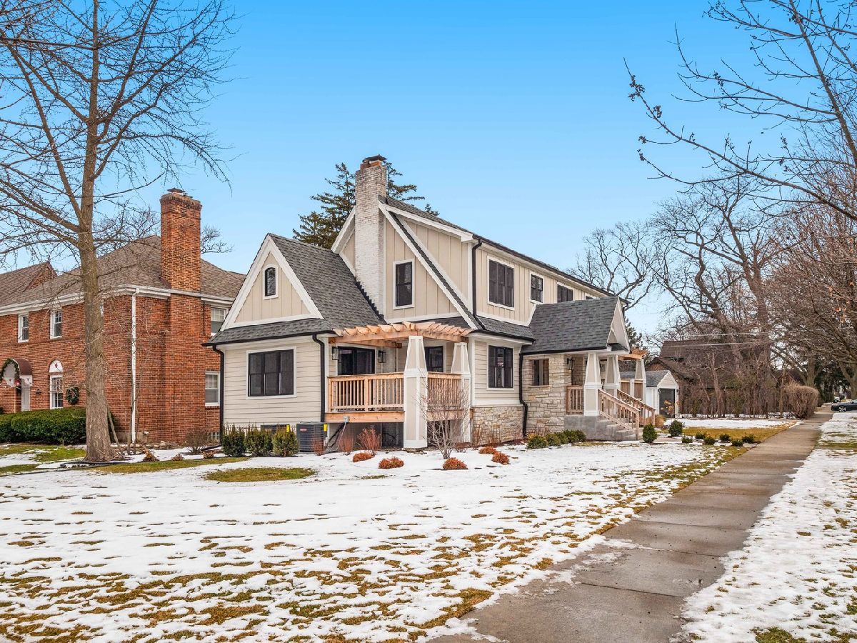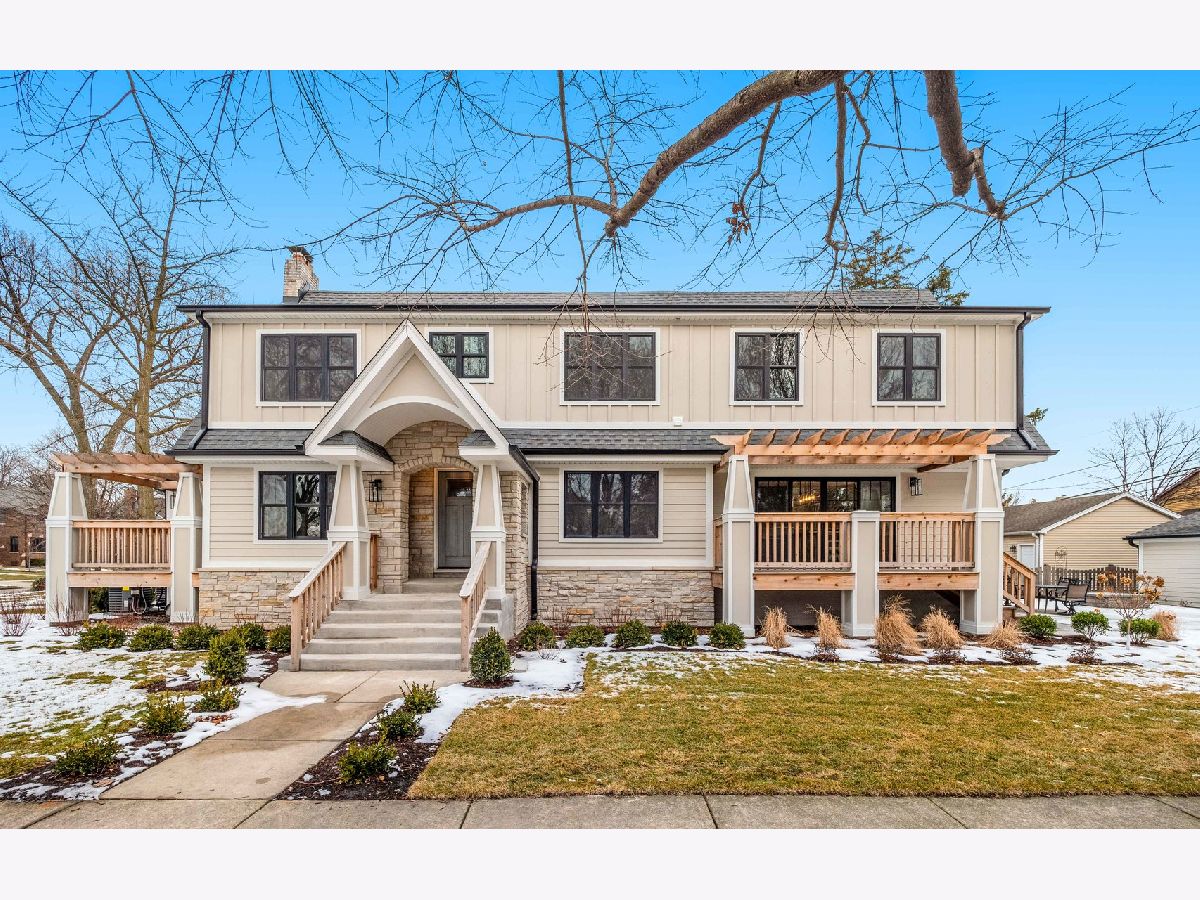 It might as well be new construction because everything is new! Nestled nicely on a 55x160 corner lot in the heart of the Park Ridge Country Club, this modern farmhouse is just blocks from Uptown Park Ridge, Metra Train Station, all shopping and has stunning curb appeal with a double pergola porch at the front and the back. Through the covered main entrance, the open concept layout of the first floor features a bright kitchen combined with the eating area and family room. The beautiful kitchen has quartz countertops, large island, stainless steel appliances, a wet bar, pantry, gold accents, recessed lighting and an exit to one of the covered porches. There's also a powder room & mudroom with an exit to the backyard. The separate living room has a fireplace and leads into the office that has an exit to the second covered porch and overlooks the corner of Cedar and Elmore St. The 2nd floor boasts a large master suite with a walk-in closet, additional closet, & master bath with double sink, separate tub and walk-in shower. Three additional bedrooms are upstairs plus a full bath. 2nd floor laundry. Full finished basement has exterior access, a full bath, and a rec room. Backyard features a large brick paver patio with a built-in firepit & lawn irrigation system. High efficiency furnace & air conditioning. Digital Wi-Fi enabled thermostats. Overhead sewers. New electrical and plumbing. Hardie Board siding. You still have time to pick some finishes but don't wait!