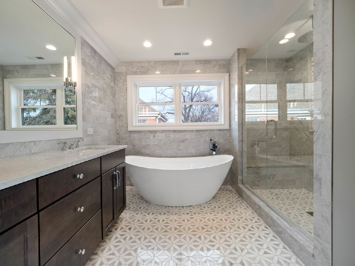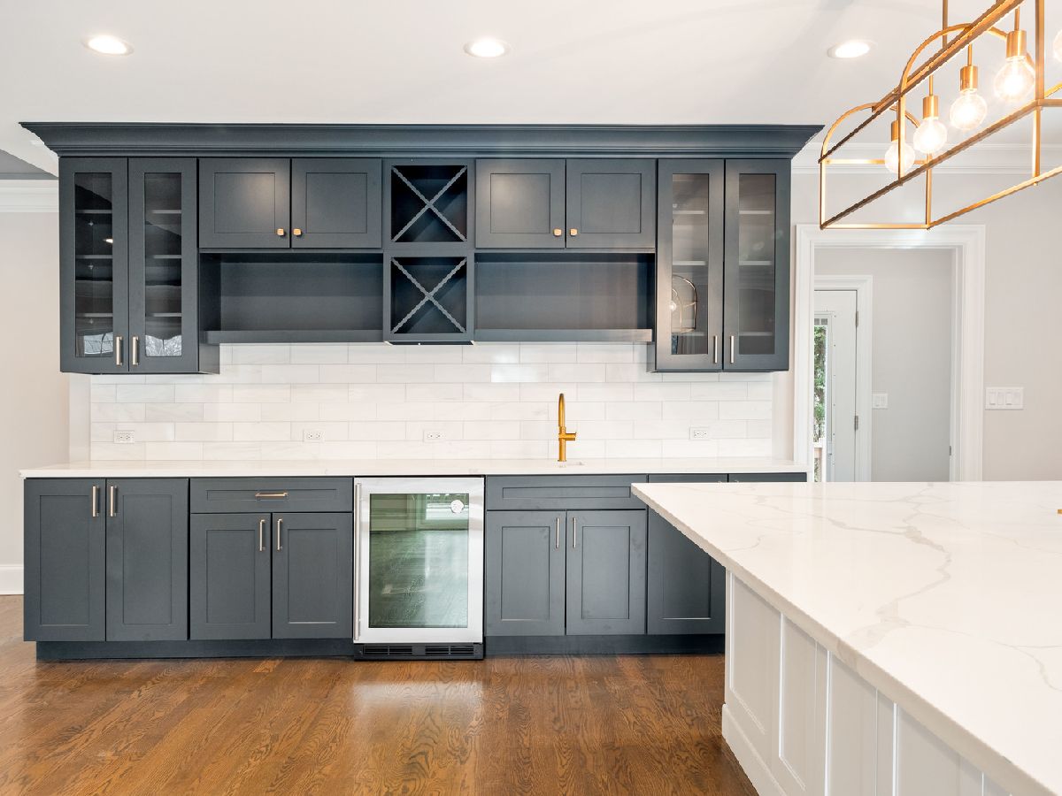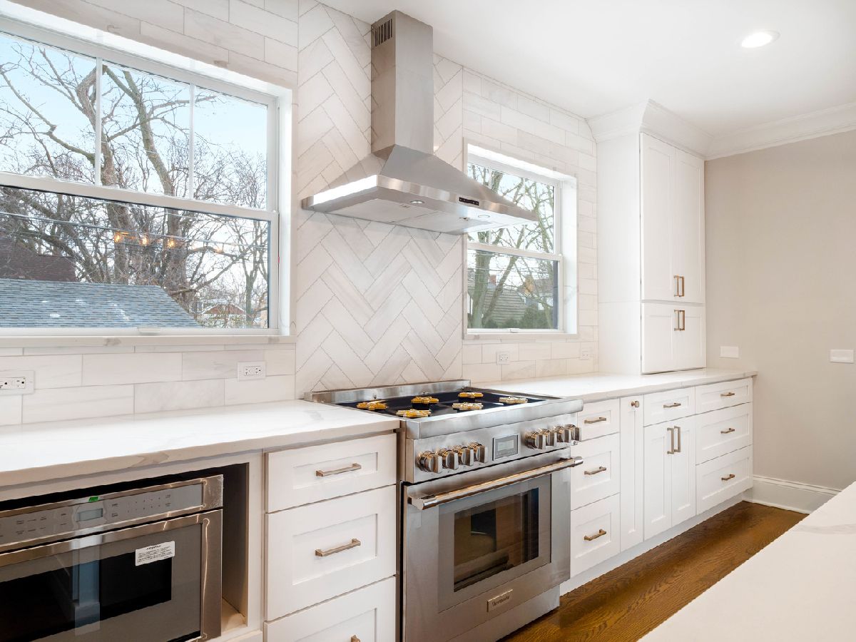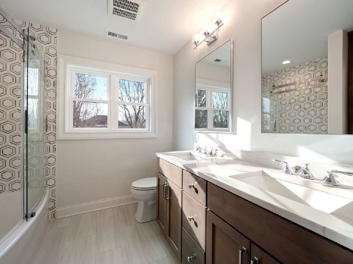 It might as well be new construction because everything is new! Nestled nicely on a 55x160 corner lot in the heart of the Park Ridge Country Club, this modern farmhouse is just blocks from Uptown Park Ridge, Metra Train Station, all shopping and has stunning curb appeal with a double pergola porch at the front and the back. Through the covered main entrance, the open concept layout of the first floor features a bright kitchen combined with the eating area and family room. The beautiful kitchen has quartz countertops, large island, stainless steel appliances, a wet bar, pantry, gold accents, recessed lighting and an exit to one of the covered porches. There's also a powder room & mudroom with an exit to the backyard. The separate living room has a fireplace and leads into the office that has an exit to the second covered porch and overlooks the corner of Cedar and Elmore St. The 2nd floor boasts a large master suite with a walk-in closet, additional closet, & master bath with double sink, separate tub and walk-in shower. Three additional bedrooms are upstairs plus a full bath. 2nd floor laundry. Full finished basement has exterior access, a full bath, and a rec room. Backyard features a large brick paver patio with a built-in firepit & lawn irrigation system. High efficiency furnace & air conditioning. Digital Wi-Fi enabled thermostats. Overhead sewers. New electrical and plumbing. Hardie Board siding. You still have time to pick some finishes but don't wait!