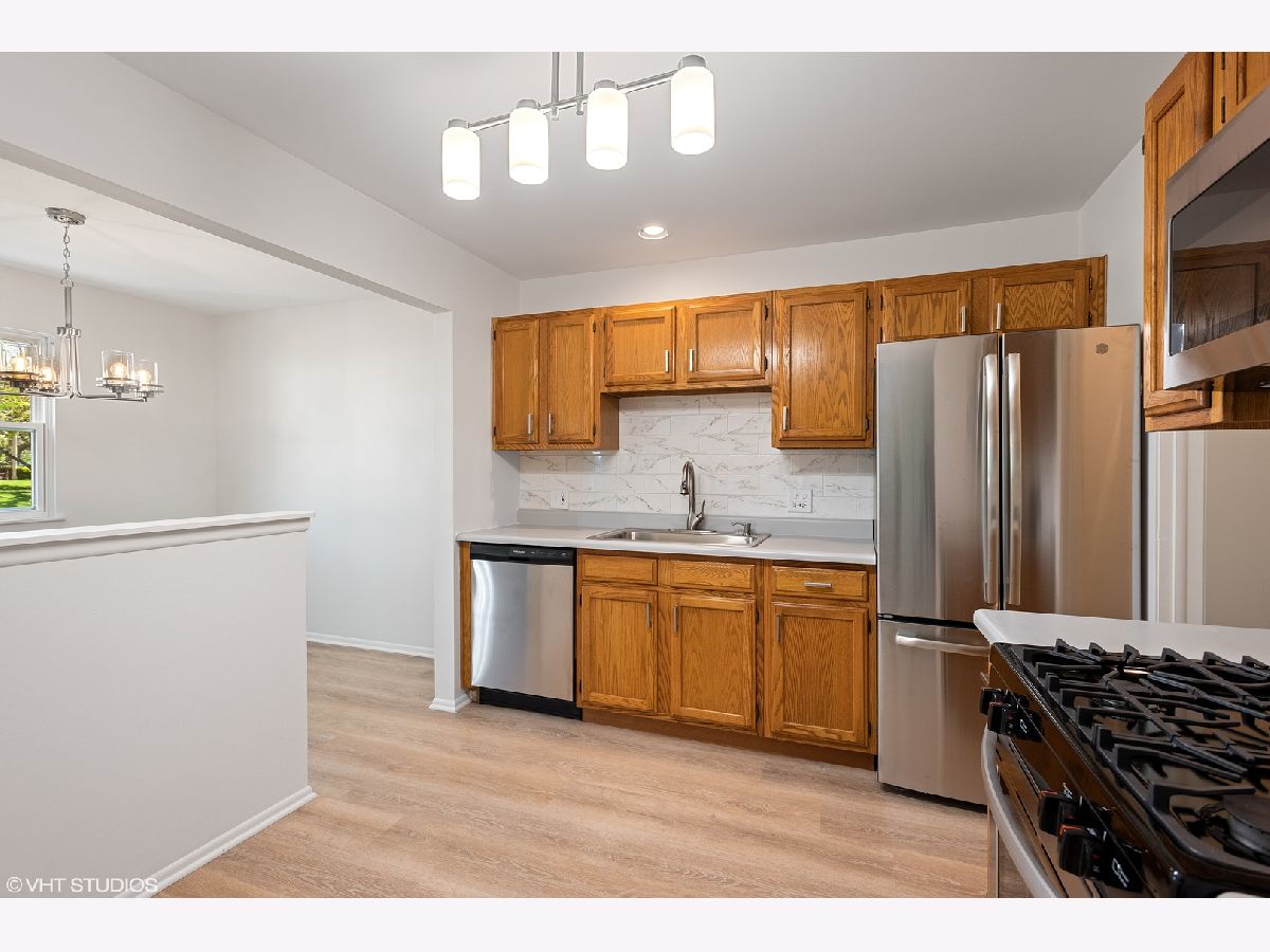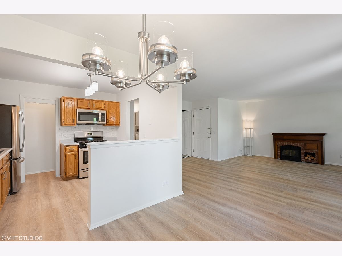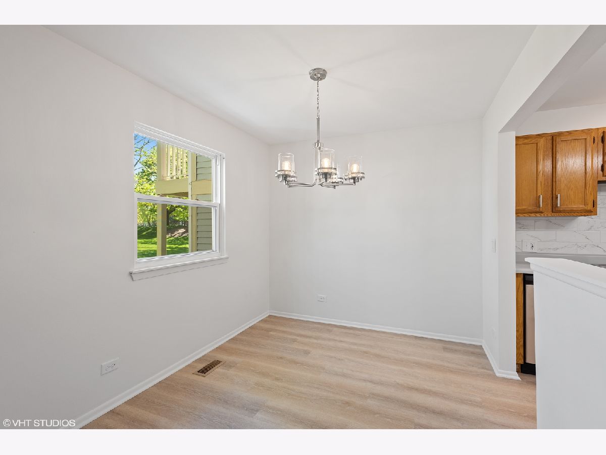 This first floor home has been renovated and freshly painted throughout(2021) and is ready for you to move right in! New waterproof wood laminate flooring has been installed throughout(2021) and showcases all the natural lights that comes in through the plethora of windows. The kitchen was also recently updated with new stainless steel appliances (2021), new blacksplash(2021), new light fixture(2021), and new sink and faucet(2021). The kitchen also has a walk in pantry and opens up to the formal dining area with new chandelier(2021). Generous sized bedroom is highlighted by primary bedroom with walk in closet. Enjoy the outdoors with a nice private backyard area with concrete patio and space for garden. Home also comes with a full size washer/dryer in the laundry room and garage space. Located in the award winning Schaumburg school districts(54/211) and the home is located next to Jewel, Super Target, Home Depot, restaurants, highway, and hospital. This home has so much to offer. Don't miss it!