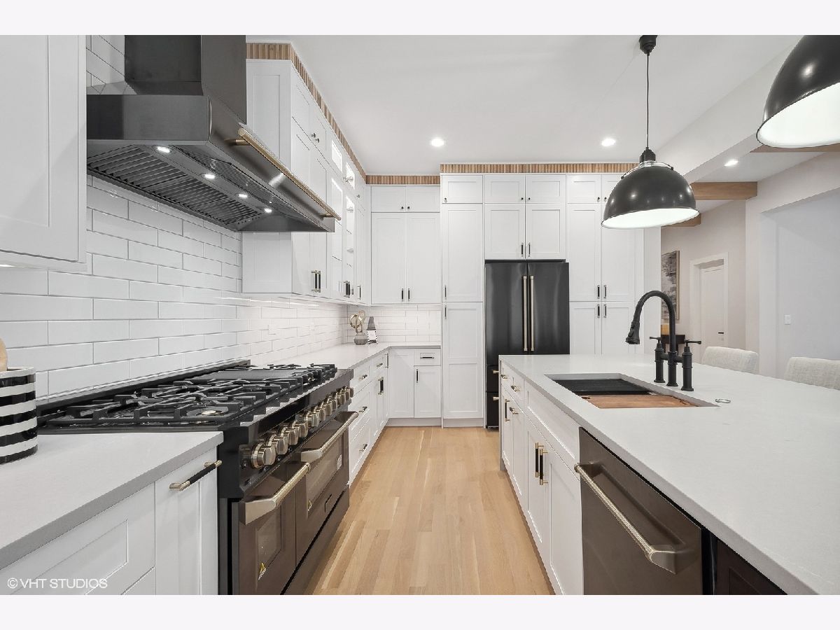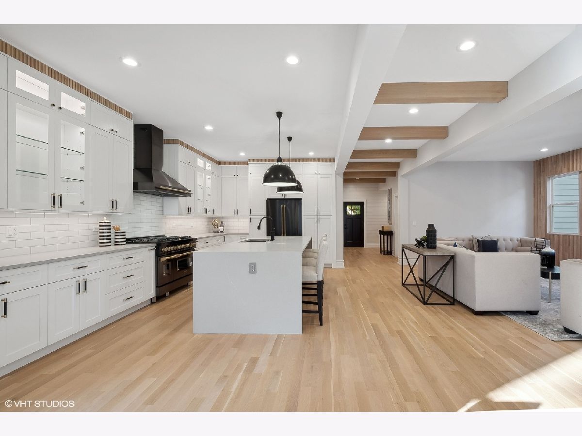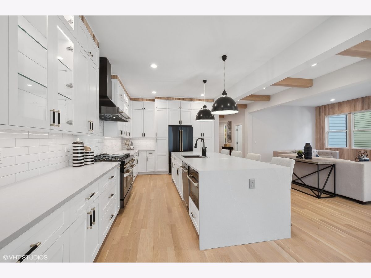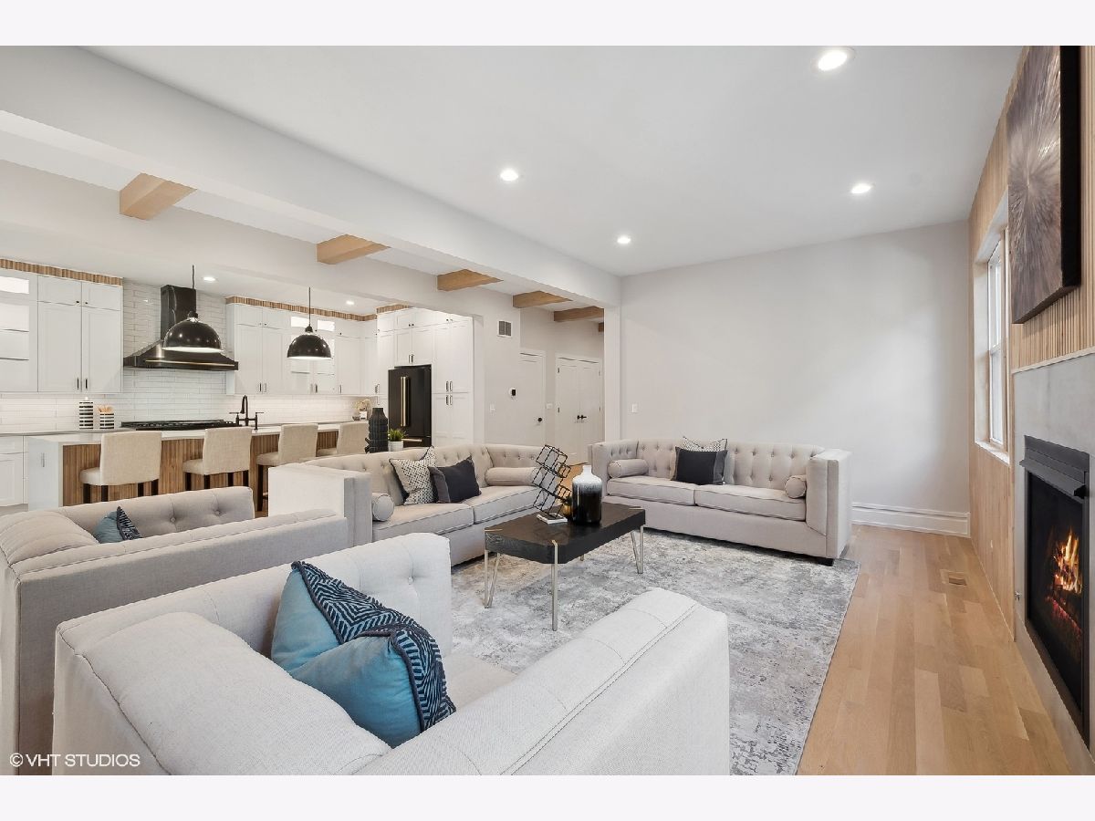 Searching for near-new construction in coveted NW Evanston? Look no further than 2030 Harrison. Gutted to the studs, expanded and reimagined, this thoughtfully rebuilt and redesigned 7 bedroom, 5 bathroom home has been transformed to perfection with today's buyer in mind. This modern farmhouse with over 5,200 square feet of living space spans 3 full stories with finished basement. Open concept floorplan, soaring beamed ceilings, fluted and intricate millwork, white oak flooring and designer finishes all set the tone for what is waiting for you beyond the front door. Sun-drenched family room with fireplace opens to chef's kitchen with custom cabinetry, designer appliances, in conjunction with an oversized waterfall center island. Spacious dining room with wall of windows overlooking lovely back yard with 10x20 rear deck for outside entertainment. Main level bedroom/office with Japandi style full bathroom. A large mud room completes the main floor. There is room for everyone on the second floor, which features a serene primary suite, huge walk-in closet, Spa Bath with heated floors, free standing soaking tub and superb shower with dual temperature controls. 3 additional bedrooms, one with ensuite bath, and 2 share hallway bathroom. Large laundry completes the second floor. A full and spacious third floor features 2 bedrooms, full bathroom, and playroom/second family room. Finished lower level has a great family/playroom and dry bar. Brand new two-car garage! For even the most discerning of buyers, this beautiful and inviting home will not disappoint! Situated near town, Evanston hospital, walking distance to train, and all amenities Central Street Business District has to offer. This property is owned by a licensed real estate broker.