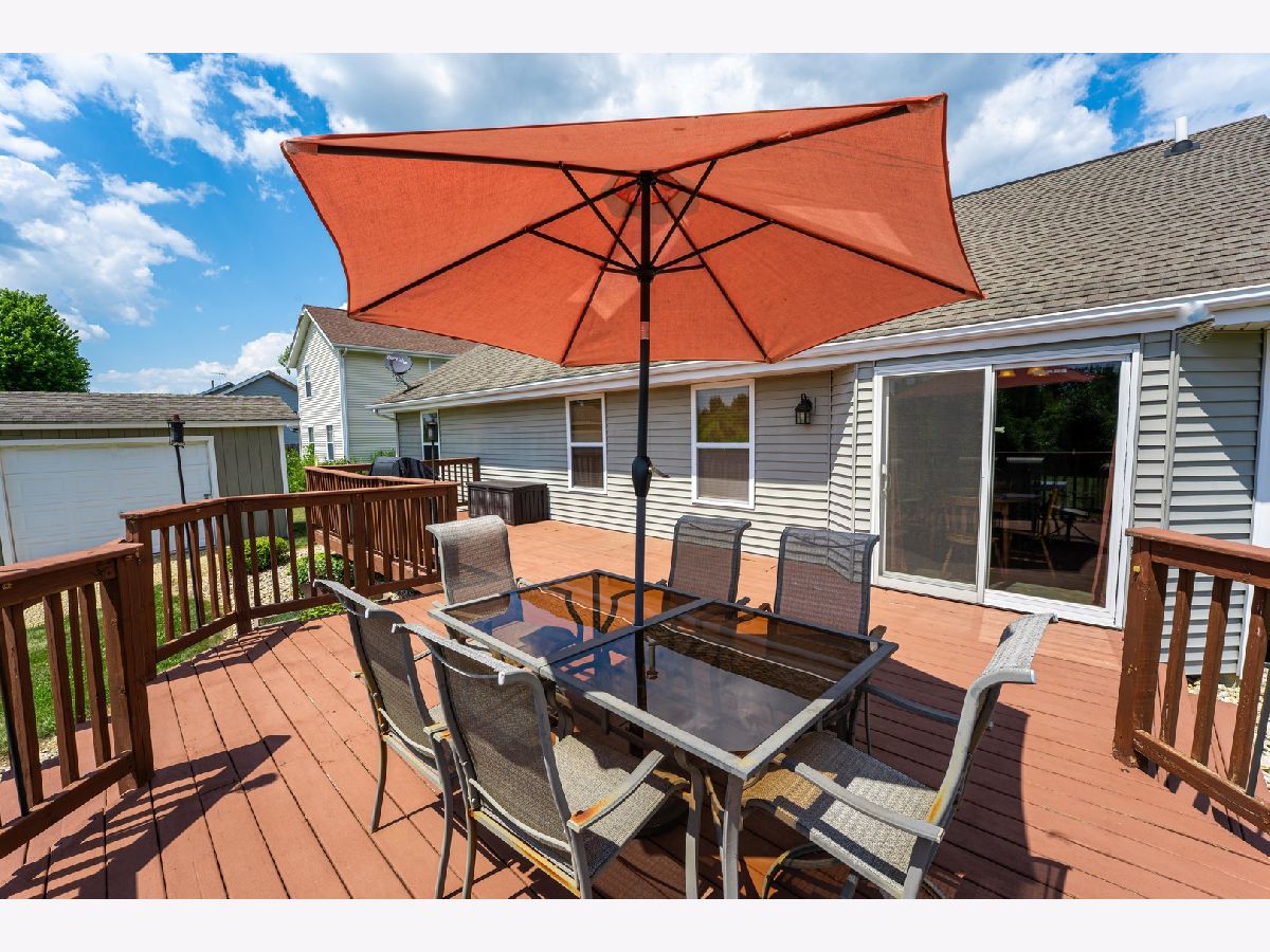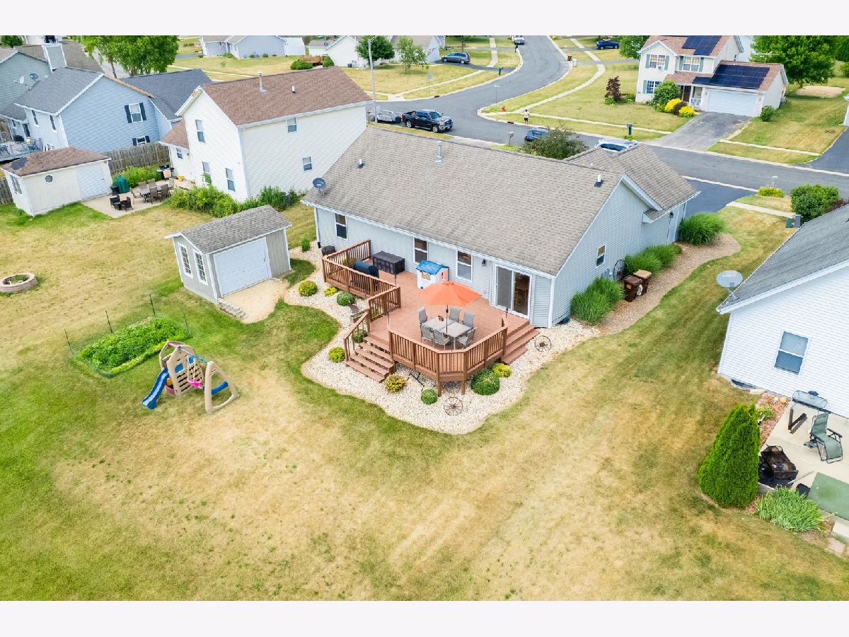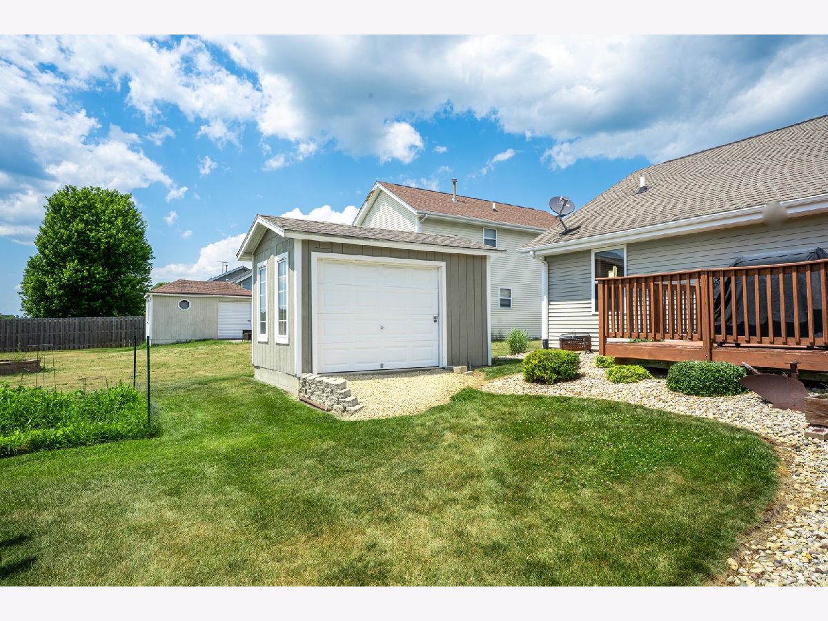 Located in the highly desirable Prairie Place subdivision in Byron, this move-in-ready ranch home offers a comfortable layout with both everyday functionality and space for entertaining. As you step inside, you're welcomed by a spacious, open floor plan that flows from the oversized family room into the eat-in kitchen. The kitchen offers ample counter space, stainless steel appliances, and plenty of room for a full-sized dining table, making it a perfect hub for meals and gatherings. Just off the kitchen is a large walk-in pantry, which could easily be converted into a convenient first-floor laundry room if desired. All three bedrooms are located in their own private wing of the home. The master suite features a generous walk-in closet and a private en-suite bathroom. The two additional bedrooms are also nicely sized and share access to a second full bath in the hallway. Downstairs, the finished lower level offers incredible versatility. The space is perfect for a game room, second living area, or whatever suits your lifestyle, with plenty of room to make it your own and a dry bar that adds a great finishing touch for entertaining. The basement includes two bonus rooms, currently being used as a guest bedroom and a home gym, with more than enough extra space for storage. Outside, a large deck provides beautiful views of the backyard that is adjacent to timber and agricultural land, offering the ideal setting for barbecues, family time, or simply enjoying the fresh air. A storage 10x14 shed with concrete and power sits at the rear of the yard for all your tools and extras next to the garden. The attached two-car garage is heated, providing a warm space for hobbies or projects year-round. This home is just minutes from local parks, a bike path, and Byron's highly rated schools. Whether you're starting out, growing your family, or looking for something with flexible space, this property delivers comfort, convenience, and a great neighborhood setting.