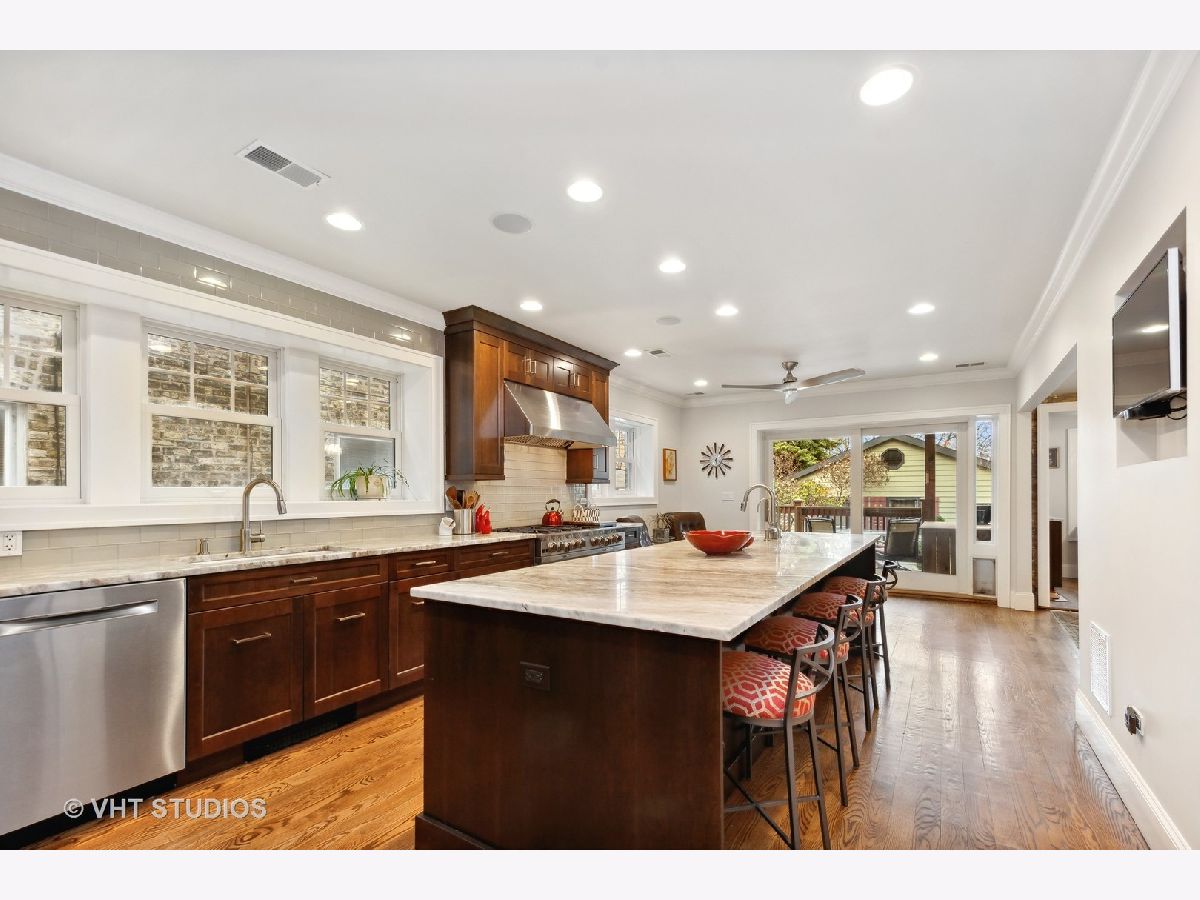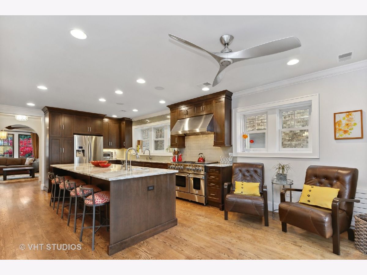 One-of-a-Kind offering! Oversized 2-flat with magnificent Owner's Unit equal to quality and size of a Single-Family Home coupled with the added benefit of a 1000 sqft income Garden Apartment. You will love the modern layout of the 2-story Owner's unit, from the welcoming entry to the dramatic details of every room. The main level begins with a Living Room featuring an elegant arched alcove and a fireplace with built-in bookcases. There is a picture-perfect Office with 2 walls of built-in shelving. You almost won't believe your eyes when you walk into the chef inspired Kitchen and see the over 10-foot-long quartz island. No counterspace or storage issues here! There is a Blue Star range with 6 burners, grill top, and double oven. The adjacent Dining Room has an exposed brick archway that leads to the Sunroom. There is also a Sitting Room the leads out to a large, covered Deck. Upstairs there are 3 bedrooms including the stunning Primary Suite with Spa Bath. This level also has a Family Room, 2 full Baths, a laundry Room, an enclosed Porch, and a Balcony overlooking the beautiful back yard. This unit has Hardwood floors throughout, central A/C and many updated and upgraded features. If that wasn't enough already, the building then has a lovely 1 Bedroom 1 Bath Garden Apartment with its own Laundry Room. The well-designed back yard has brick-paver paths and Patio and several planting beds. There is a large 2-Car Garage and an extra outdoor parking space. Excellent location: Near Metra, CTA Brown + Red Line stations, and multiple dining & shopping districts. Walk to highly ranked (level 1+) public schools or several excellent private schools: Lycee Francais de Chicago, Rogers Park Montessori, Chicago Waldorf, North Park Elementary. Close to Winnemac Park, West Ridge Nature Park, and beautiful city and lake-front parks. Enjoy Bowmanville's tranquility while being close to Andersonville/Lincoln Square. Take the 3-D tour of the Owner's Unit!
