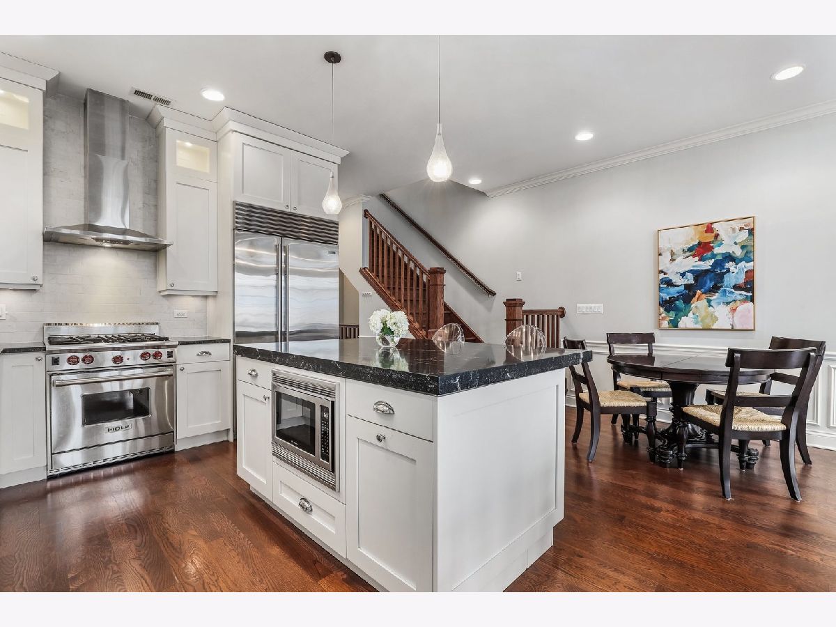 Welcome home to this gorgeous penthouse with incredible private roof deck in the heart of coveted Lincoln Park! Ideally situated in an architecturally stunning brick building on a quiet tree-lined street, this 2 bedroom 2 bath + office is just moments from everything Lincoln Park has to offer. The beautiful great room boasts a wall of arched windows that flood the home in natural light. Huge chef's kitchen with custom white cabinets, marble backsplash, oversized island, large pantry, and top-of-the-line appliances (Subzero fridge, Bosch dishwasher & Wolf range) opens to a living room with a cozy wood-burning fireplace, custom built-ins, and separate dining area. Timelessly beautiful details throughout including high ceilings with gorgeous crown molding, wainscoting, upgraded window treatments, and dark stained hardwood floors. Primary bedroom offers a custom walk-in closet, a large private deck, and a luxurious en-suite bath with heated floors, double vanity, steam shower and separate jet tub. Generous second bedroom with large organized closet, and second full bathroom featuring a marble shower with bench. A beautiful staircase leads to the second floor of this home which is an entertainer's paradise! A built-in office with wine cooler leads out to your amazing private roof deck complete with outdoor kitchen and bar, covered pergola with privacy wall, retractable TV, wiring for outdoor speakers, fire pit, and several lounging and dining areas! Unique putting green in the backyard makes for another fun activity to enjoy with friends, family, or neighbors! Garage parking and storage room included. Unbeatable location in the most desirable part of Lincoln Park near all of the shopping, dining, and nightlife along Armitage and Halsted, just one block to the Armitage purple & brown lines and four blocks to Oz Park