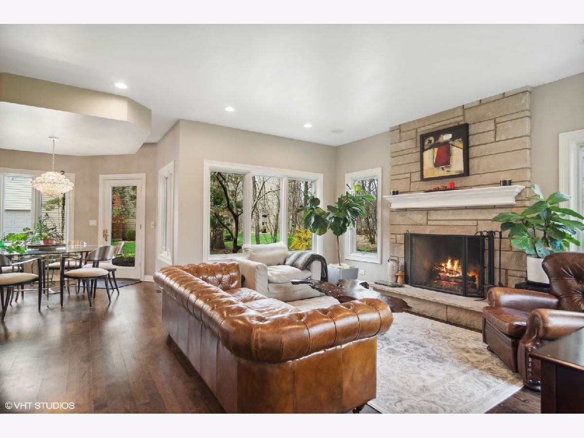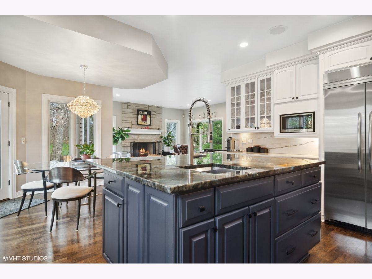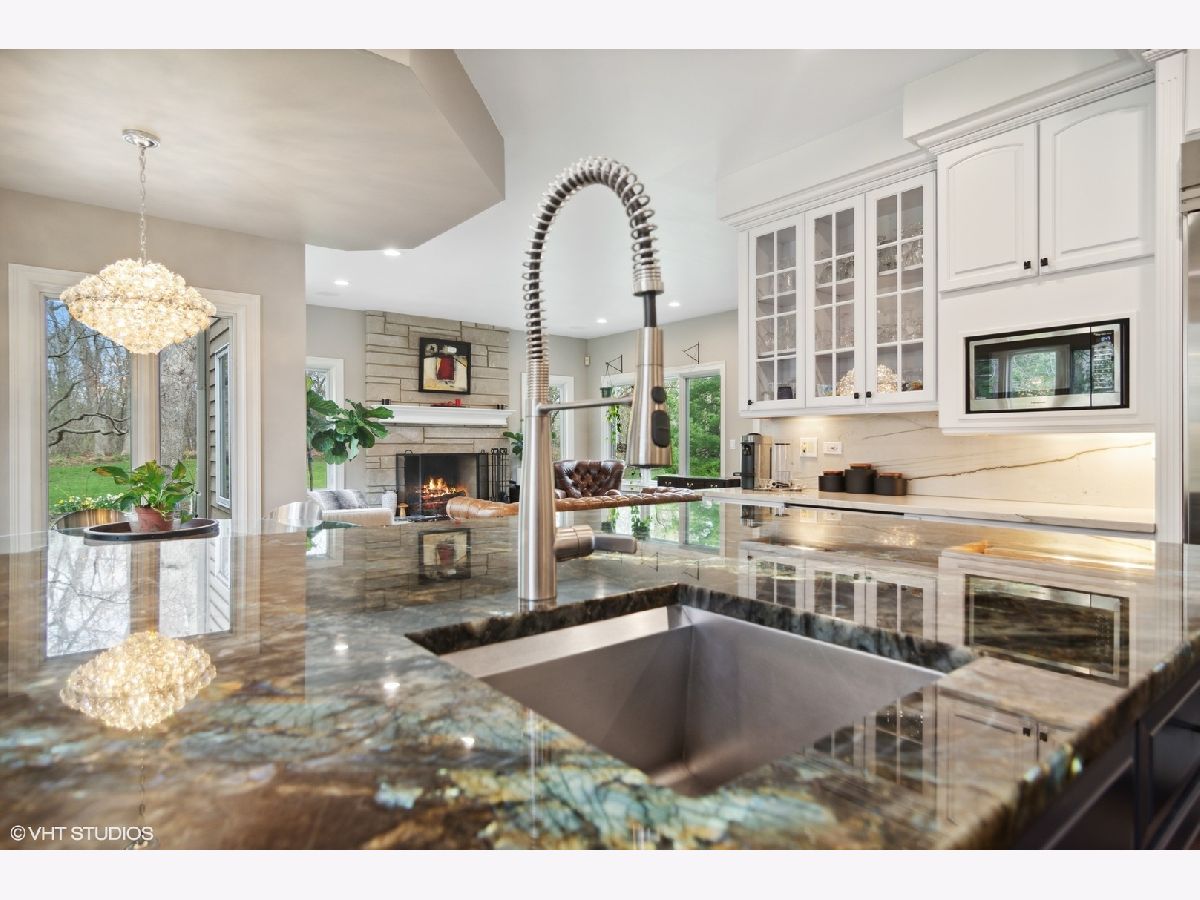 Welcome home! This beautifully crafted custom-built home spans 4,900 sq ft in prestigious River Orchard, on a wooded 3/4-acre lot. The immaculate and manicured front and back yard provide serenity and privacy from every angle! Plenty of charm and character throughout, you are greeted by elegant marble floors in the dramatic two-story foyer. The first-floor features recently refinished hardwood floors, a dedicated office (with built in cabinets), a great room with plenty of sophistication and natural light, and a stylish sitting room. No expense spared in the recently updated kitchen, with crisp white cabinets to the ceiling, Aria Quartzite counters, a unique labradorite adorned island, 60" commercial Capital range w/ovens and flat top, Wolfe vent hood, Bosch dishwasher, a warming drawer, and Kitchen Aid refrigerator. The inviting hearth room located off the kitchen has a stone fireplace and expansive view of the backyard. This home has 5 bedrooms and 4.5 baths throughout 3 levels of living space. With high ceilings and tranquil views, the primary bedroom is not to be outdone by the adjoining primary bathroom featuring a walk-in shower, separate soaker tub, and oversized walk-in closet. The second floor includes another bedroom suite as well as a jack and jill bath for the 3rd and 4th bedroom. All bedrooms offer generous closet space and storage. So much function and possibility available in the full-sized English basement featuring a large rec room for entertaining, wet bar, stone fireplace, and 5th bedroom and 4th bathroom. Additionally, you will also find an exercise room, wine cellar, and plentiful storage. Other highlights of the home include a whole house speaker system, whole house backup generator, Pella windows, and a standard 3 car garage.