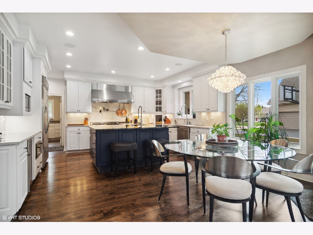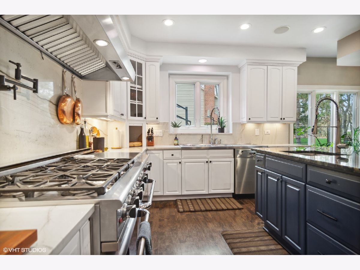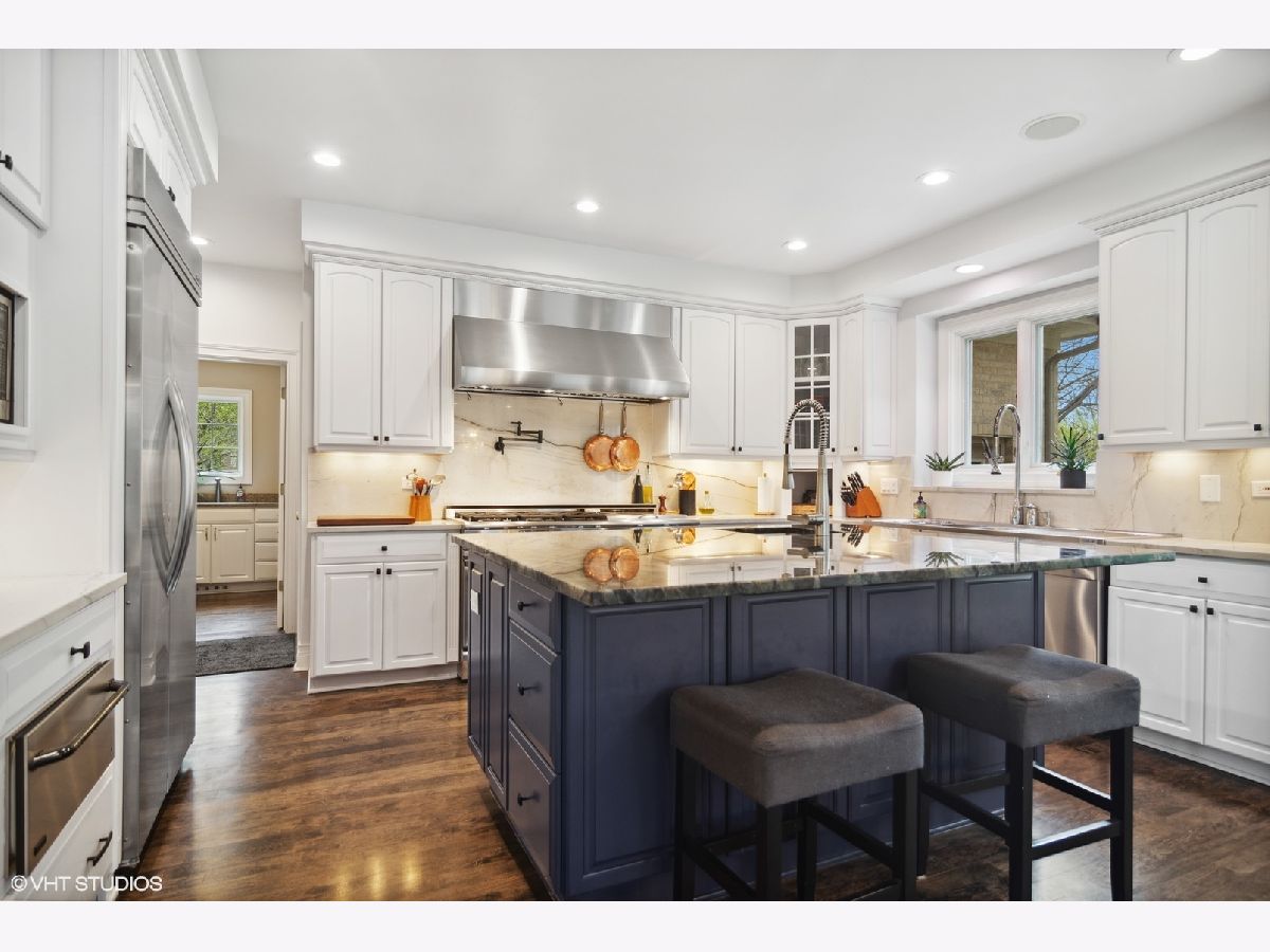 Welcome home! This beautifully crafted custom-built home spans 4,900 sq ft in prestigious River Orchard, on a wooded 3/4-acre lot. The immaculate and manicured front and back yard provide serenity and privacy from every angle! Plenty of charm and character throughout, you are greeted by elegant marble floors in the dramatic two-story foyer. The first-floor features recently refinished hardwood floors, a dedicated office (with built in cabinets), a great room with plenty of sophistication and natural light, and a stylish sitting room. No expense spared in the recently updated kitchen, with crisp white cabinets to the ceiling, Aria Quartzite counters, a unique labradorite adorned island, 60" commercial Capital range w/ovens and flat top, Wolfe vent hood, Bosch dishwasher, a warming drawer, and Kitchen Aid refrigerator. The inviting hearth room located off the kitchen has a stone fireplace and expansive view of the backyard. This home has 5 bedrooms and 4.5 baths throughout 3 levels of living space. With high ceilings and tranquil views, the primary bedroom is not to be outdone by the adjoining primary bathroom featuring a walk-in shower, separate soaker tub, and oversized walk-in closet. The second floor includes another bedroom suite as well as a jack and jill bath for the 3rd and 4th bedroom. All bedrooms offer generous closet space and storage. So much function and possibility available in the full-sized English basement featuring a large rec room for entertaining, wet bar, stone fireplace, and 5th bedroom and 4th bathroom. Additionally, you will also find an exercise room, wine cellar, and plentiful storage. Other highlights of the home include a whole house speaker system, whole house backup generator, Pella windows, and a standard 3 car garage.