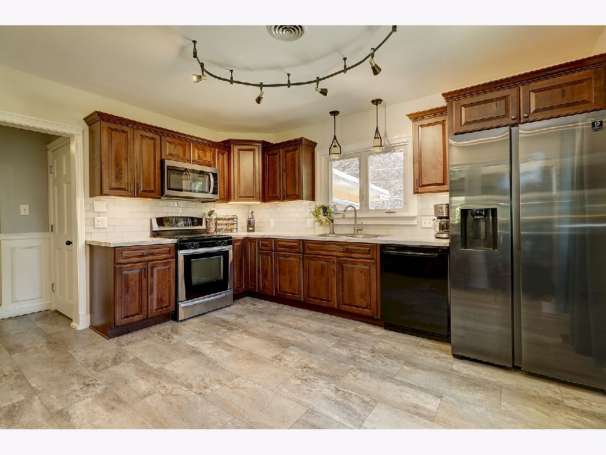 This absolutely stunning and stylish all brick ranch with so many updates is ready for new owners to call it HOME! Beautiful Living Room featuring wood laminate flooring, wainscoting, crown molding, tray ceiling with recessed lighting, wood burning fireplace, and electrical for uplighting is in place! COMPLETELY remodeled eat in Kitchen with maple cabinets, additional cabinets under snack bar, vinyl plank flooring, countertops, light fixtures, under cabinet lighting, tile backsplash, and new stainless refrigerator and microwave! COMPLETELY remodeled main floor Bath with granite vanity top, plenty of custom lighting, tile flooring and surround, and there is a 1/2 Bath in the full Basement! Lovely 14 x 12 Master Bedroom and 12 x 11 2nd Bedroom feature overhead lighting and ceiling fans! Arched doorways, crown moldings, wide woodwork, and 6 panel doors add to the beauty of this well maintained home! The attached 3 Season Room adds even more living space and looks out on the nicely landscaped Double Lot with oversized Patio! All brick 2.5 car Garage with new roof, soffit, fascia, downspouts, overhead garage door and opener, service door, and added outlets! Other updates include recently painted rooms, updated electrical including added Basement outlets, sump pump, several new windows including Basement glass block windows, updated plumbing, and landscaping. Furnace, ductwork, and roof new in 2016. Make your appointment today!