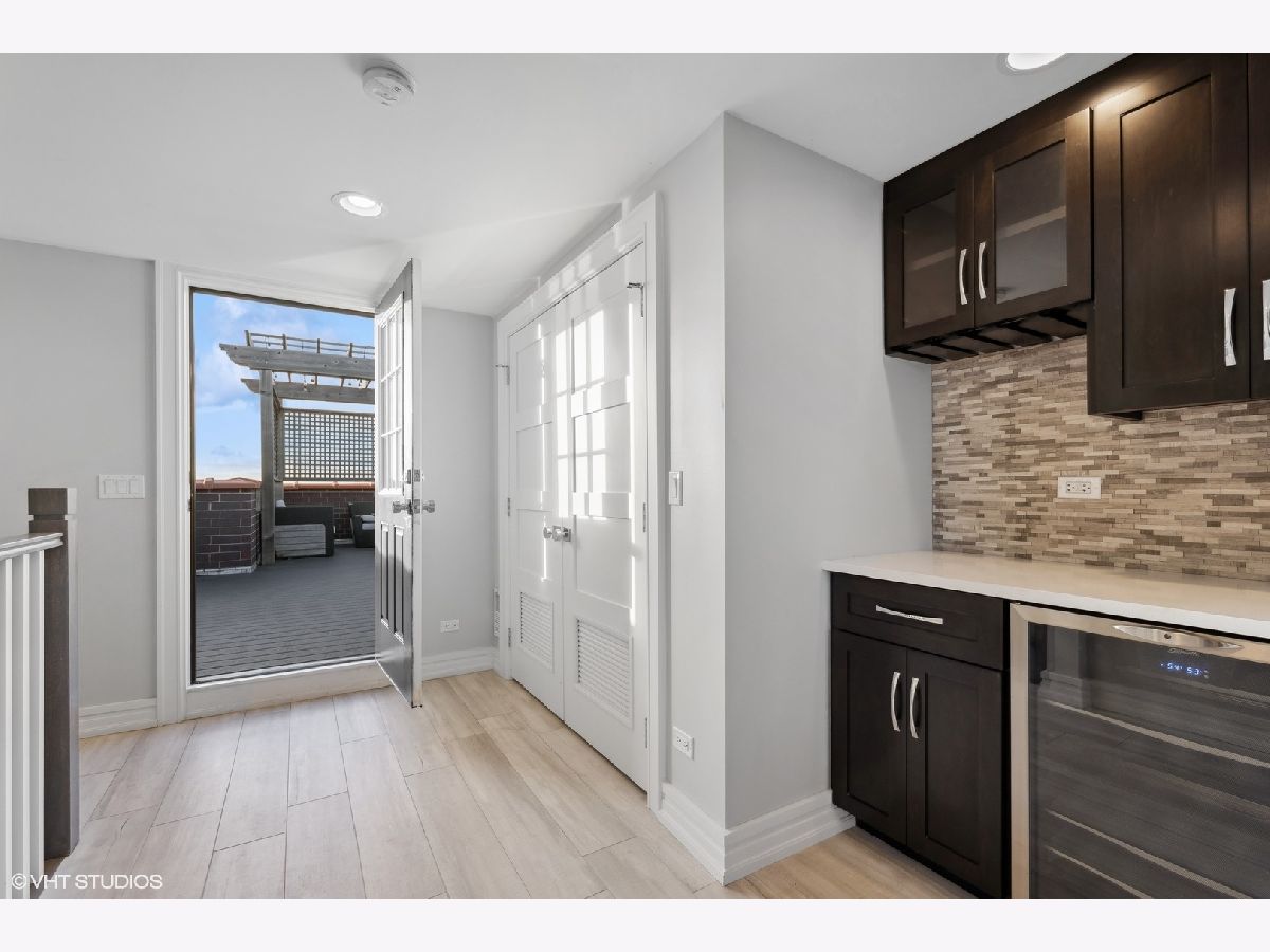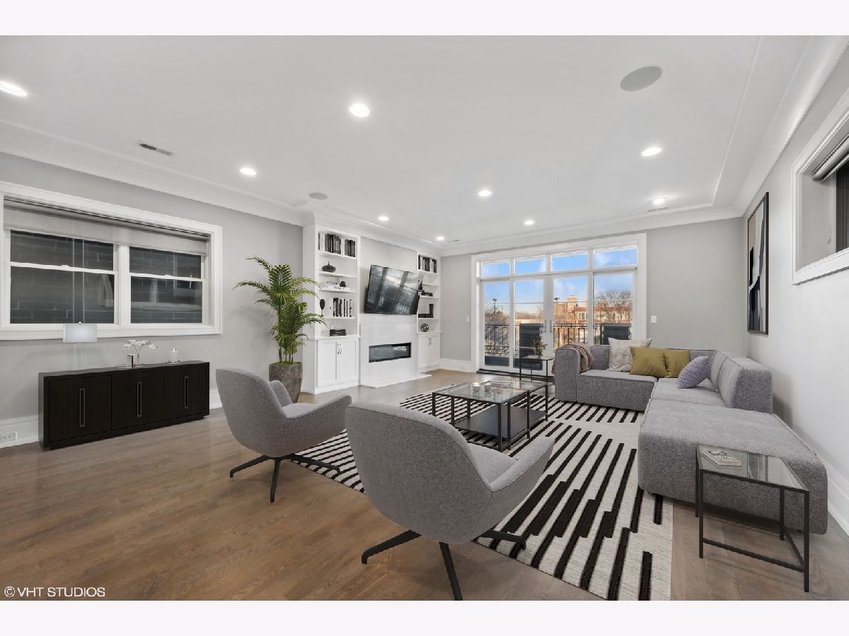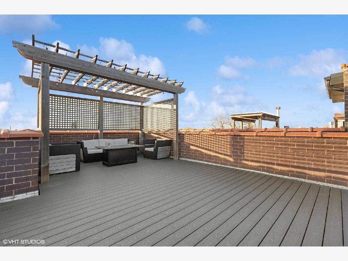 Classic newer construction full masonry 3 level penthouse overlooking Oz Park. The home's main level has a spacious living room with ventless gas fireplace, generous built-in bookcases, and a wide east facing terrace for that morning cappuccino. At the rear is the family room with custom cabinetry, bar space with wine and beverage fridge, eat-in breakfast area and fully equipped chef's kitchen. Viking six burner dual range, Subzero refrigerator, Bosch dishwasher, quartz counters and island. Two stairwells lead up to the primary suite with custom walk-in closets, front terrace and relaxing bath with floating vanities, heated floors, steam shower with body sprays and separate deep soaking tub. Two additional bedrooms and laundry room with side-by-side front loading machines and wash sink complete the second floor. Proceed upstairs to the roof decks, grab a glass of wine from the bar area, relax and savor the stunning city skyline on the east roof deck or perhaps the setting sun on the west deck. All of this is located on a beautiful cul-de-sac side street in an ideal Lincoln Park location. Enjoy the green space outside your door and stroll to the great shopping at the boutiques and shops on Armitage and Halsted and dine at the diverse assortment of restaurants. If schools are important, this home is within the Lincoln Elementary and Lincoln Park High School boundaries. Garage parking included.