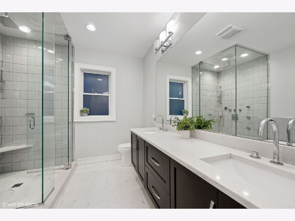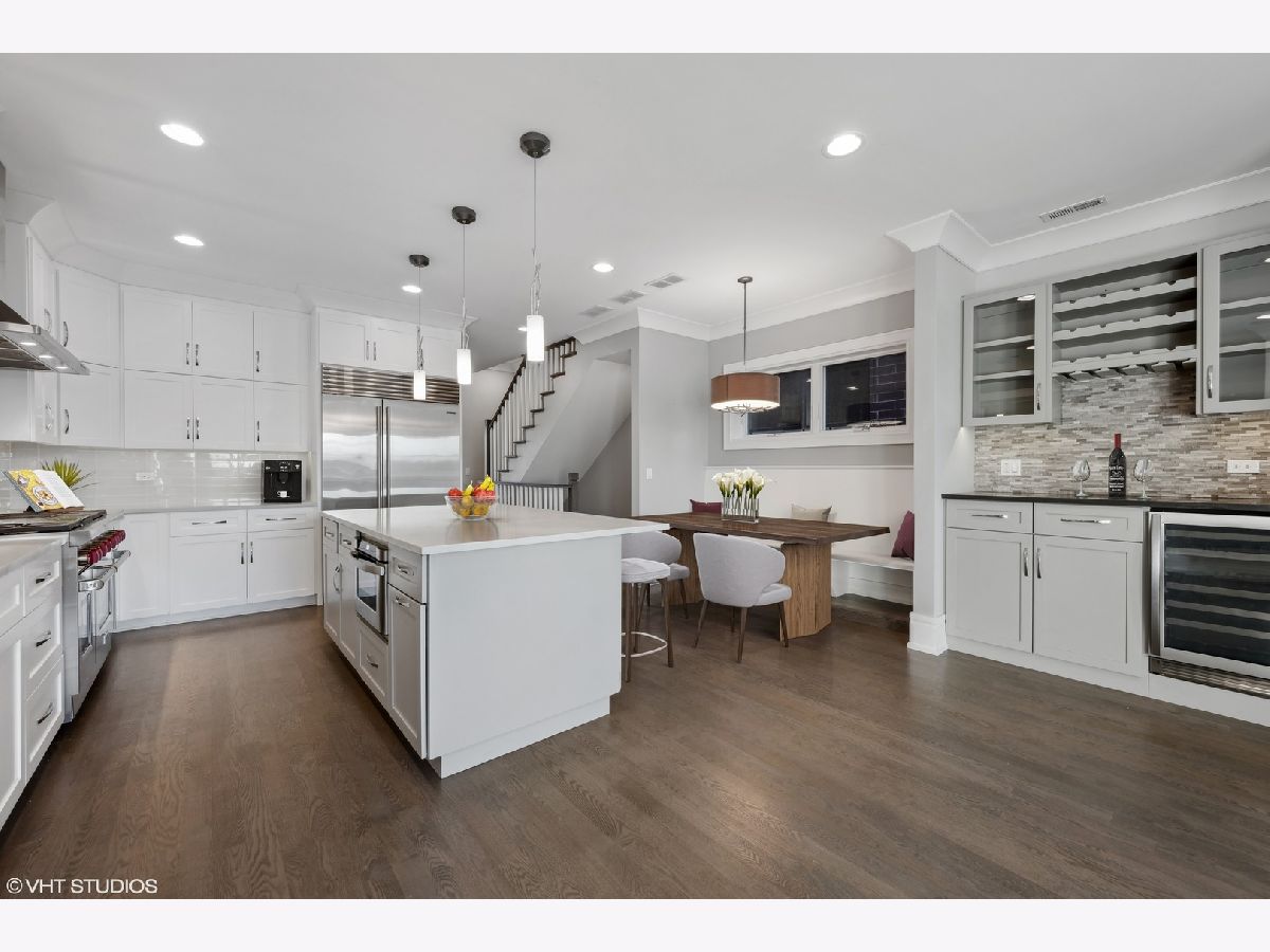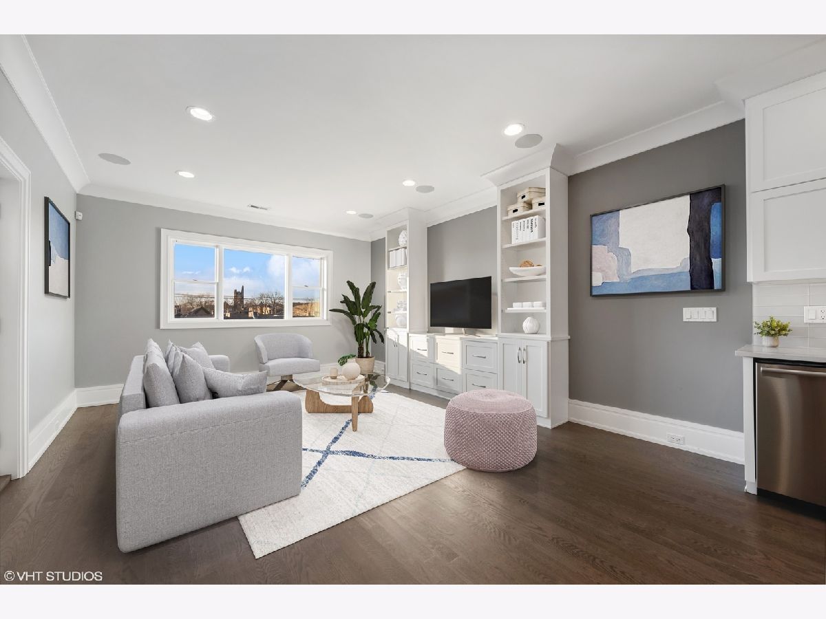 Classic newer construction full masonry 3 level penthouse overlooking Oz Park. The home's main level has a spacious living room with ventless gas fireplace, generous built-in bookcases, and a wide east facing terrace for that morning cappuccino. At the rear is the family room with custom cabinetry, bar space with wine and beverage fridge, eat-in breakfast area and fully equipped chef's kitchen. Viking six burner dual range, Subzero refrigerator, Bosch dishwasher, quartz counters and island. Two stairwells lead up to the primary suite with custom walk-in closets, front terrace and relaxing bath with floating vanities, heated floors, steam shower with body sprays and separate deep soaking tub. Two additional bedrooms and laundry room with side-by-side front loading machines and wash sink complete the second floor. Proceed upstairs to the roof decks, grab a glass of wine from the bar area, relax and savor the stunning city skyline on the east roof deck or perhaps the setting sun on the west deck. All of this is located on a beautiful cul-de-sac side street in an ideal Lincoln Park location. Enjoy the green space outside your door and stroll to the great shopping at the boutiques and shops on Armitage and Halsted and dine at the diverse assortment of restaurants. If schools are important, this home is within the Lincoln Elementary and Lincoln Park High School boundaries. Garage parking included.
