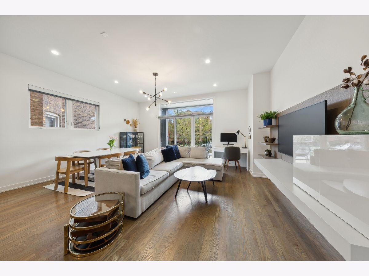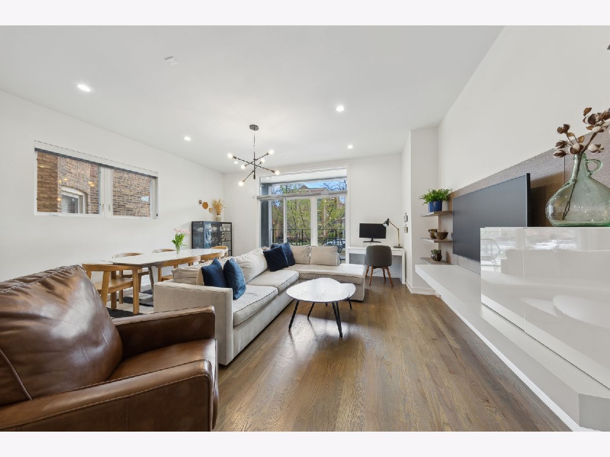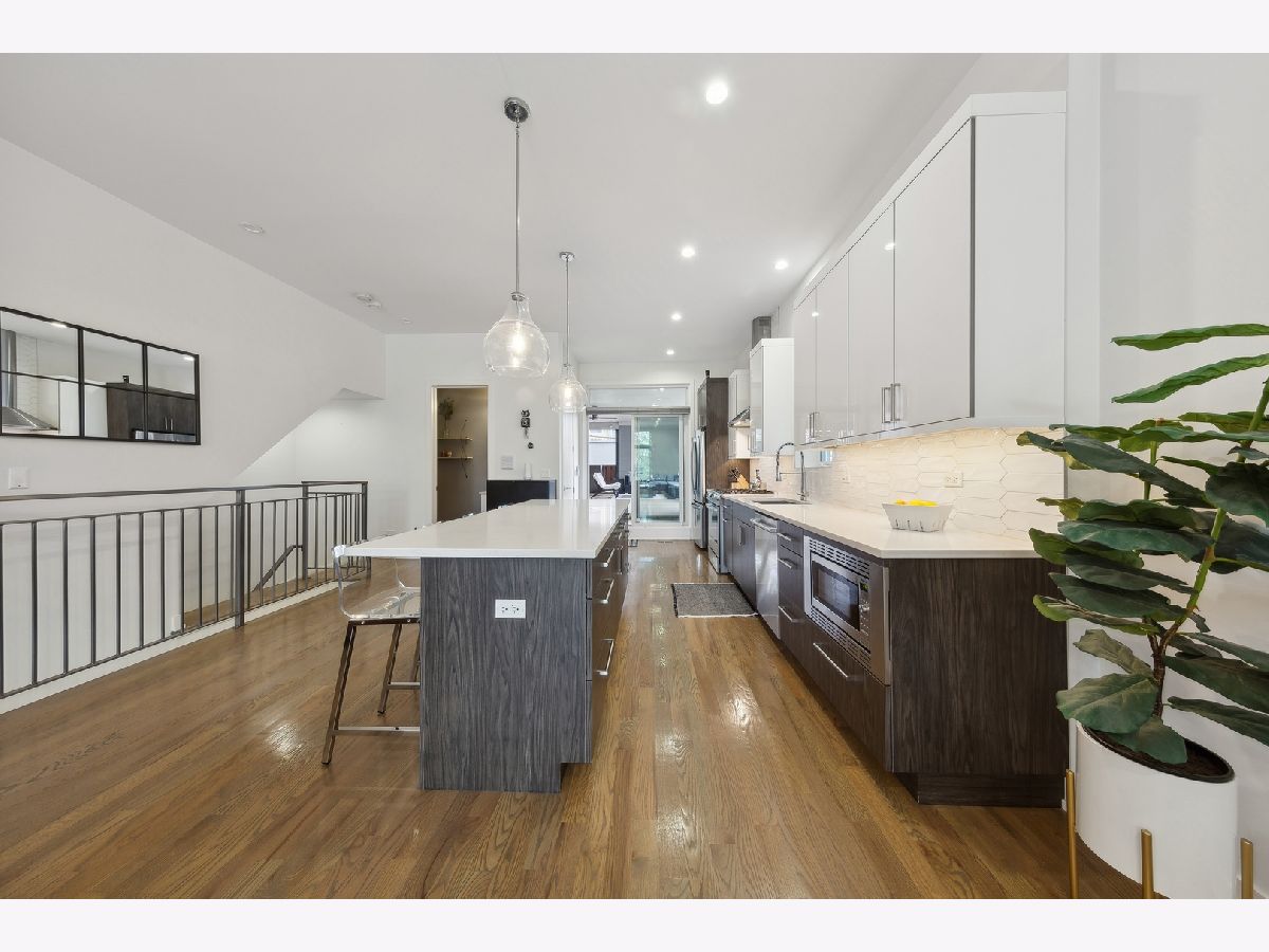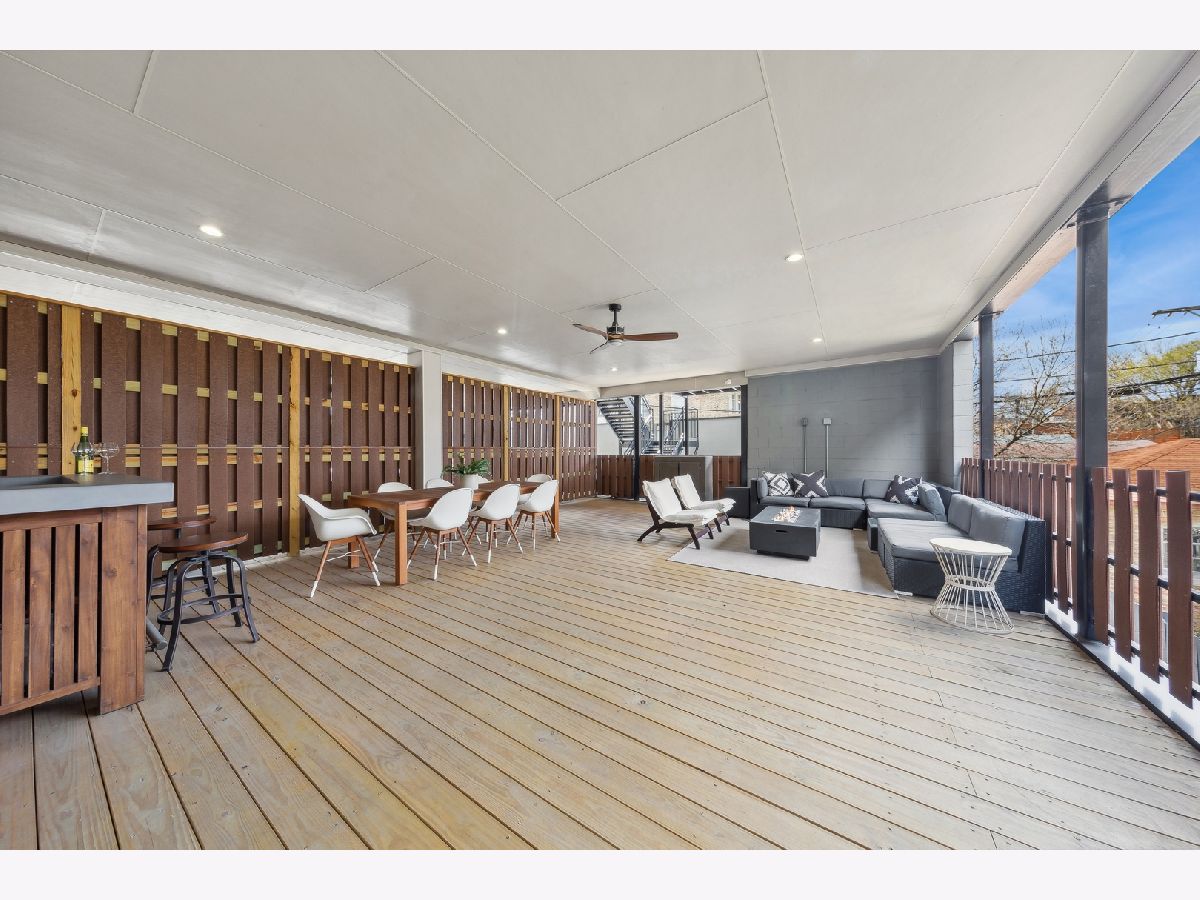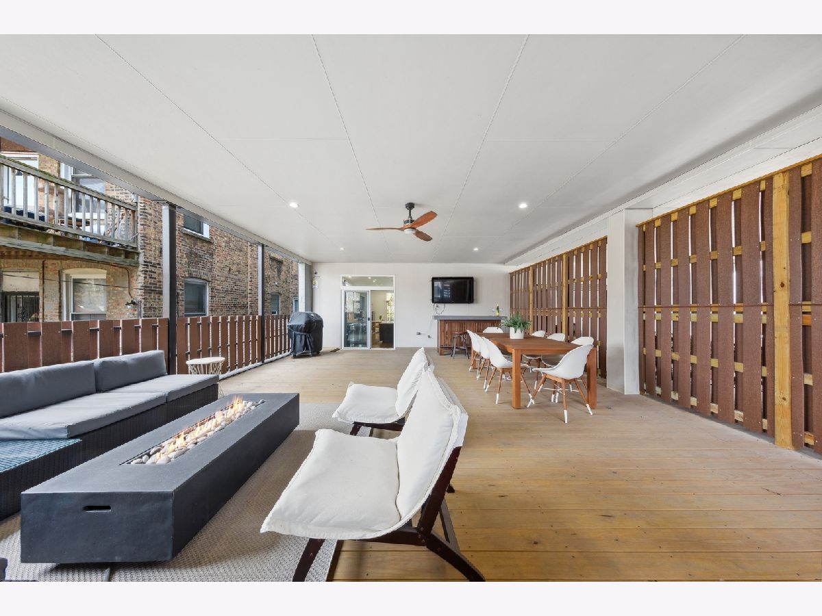 Stunning 3-bedroom, 2.5-bathroom Logan Square duplex boasting a remarkable floor plan and exceptional outdoor space. This home features an open concept design with a spacious living/dining kitchen area, a 600 square foot covered outdoor terrace, and an inviting front balcony on the main level. The lower level offers an additional large family room, creating a versatile and comfortable living space. The modern, streamlined kitchen is equipped with a pantry, Quartz counters, custom backsplash, upgraded stainless appliances, and a large island for both gathering and workspace. Entertaining is a delight with a front terrace off the living space and a massive covered terrace off the kitchen. The lower level, with its terrific ceiling height, includes a large family room with a designer wet bar, a spacious Master Suite with a beautifully designed custom walk-in closet, and a master bath featuring heated floors and luxurious amenities. Additionally, there are two guest bedrooms with a well-appointed guest bath. Custom laundry area, professionally designed closet space and storage, and custom window treatments throughout the entire unit add to the appeal. Garage parking is included, making this home truly extraordinary!