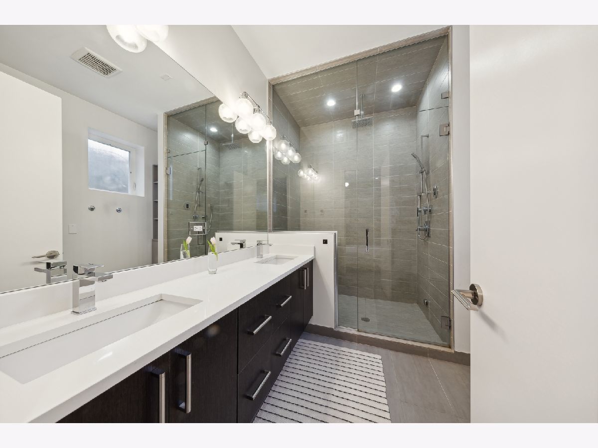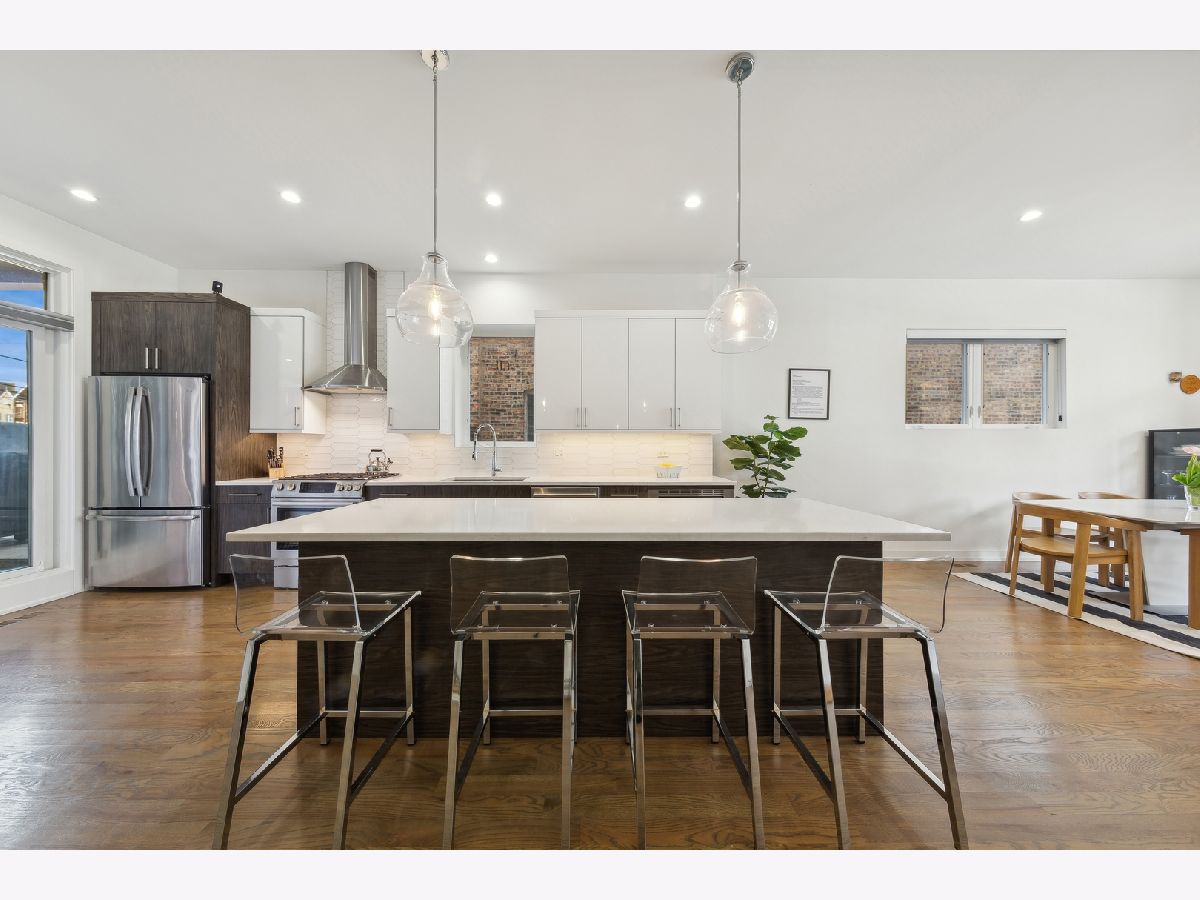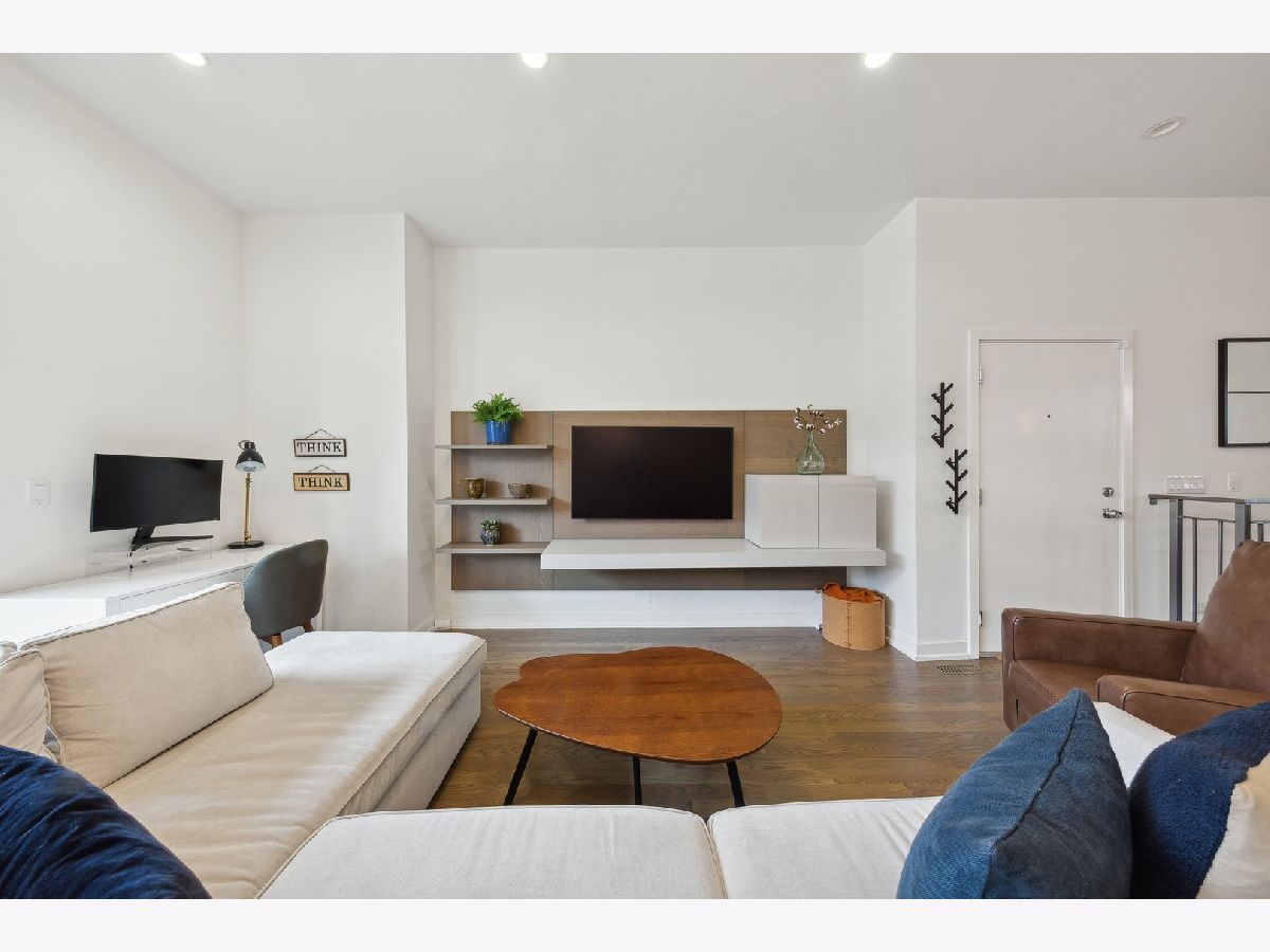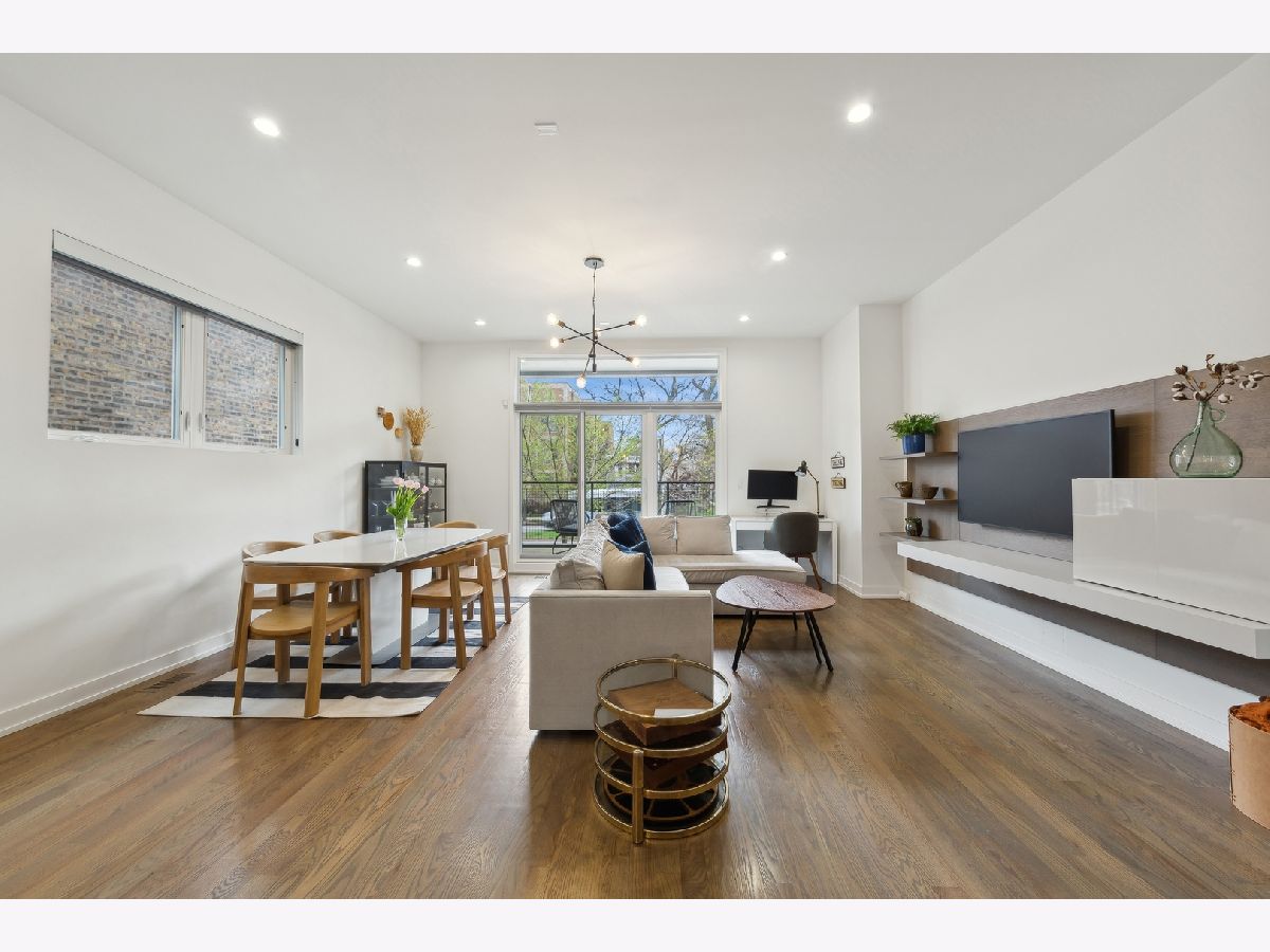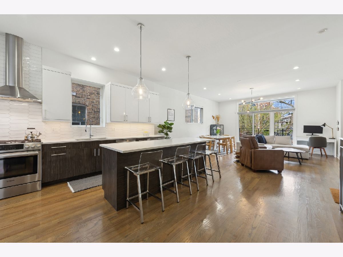 Stunning 3-bedroom, 2.5-bathroom Logan Square duplex boasting a remarkable floor plan and exceptional outdoor space. This home features an open concept design with a spacious living/dining kitchen area, a 600 square foot covered outdoor terrace, and an inviting front balcony on the main level. The lower level offers an additional large family room, creating a versatile and comfortable living space. The modern, streamlined kitchen is equipped with a pantry, Quartz counters, custom backsplash, upgraded stainless appliances, and a large island for both gathering and workspace. Entertaining is a delight with a front terrace off the living space and a massive covered terrace off the kitchen. The lower level, with its terrific ceiling height, includes a large family room with a designer wet bar, a spacious Master Suite with a beautifully designed custom walk-in closet, and a master bath featuring heated floors and luxurious amenities. Additionally, there are two guest bedrooms with a well-appointed guest bath. Custom laundry area, professionally designed closet space and storage, and custom window treatments throughout the entire unit add to the appeal. Garage parking is included, making this home truly extraordinary!