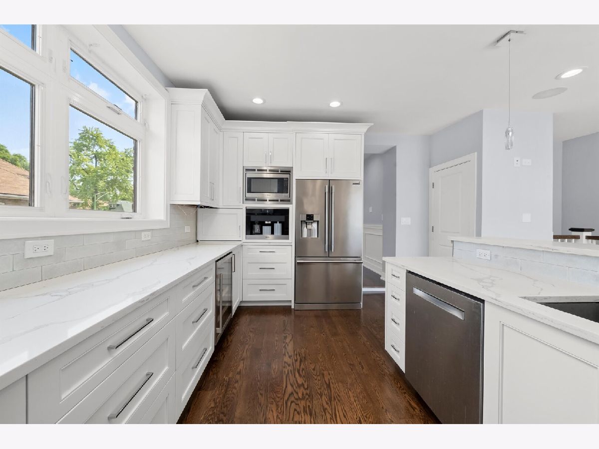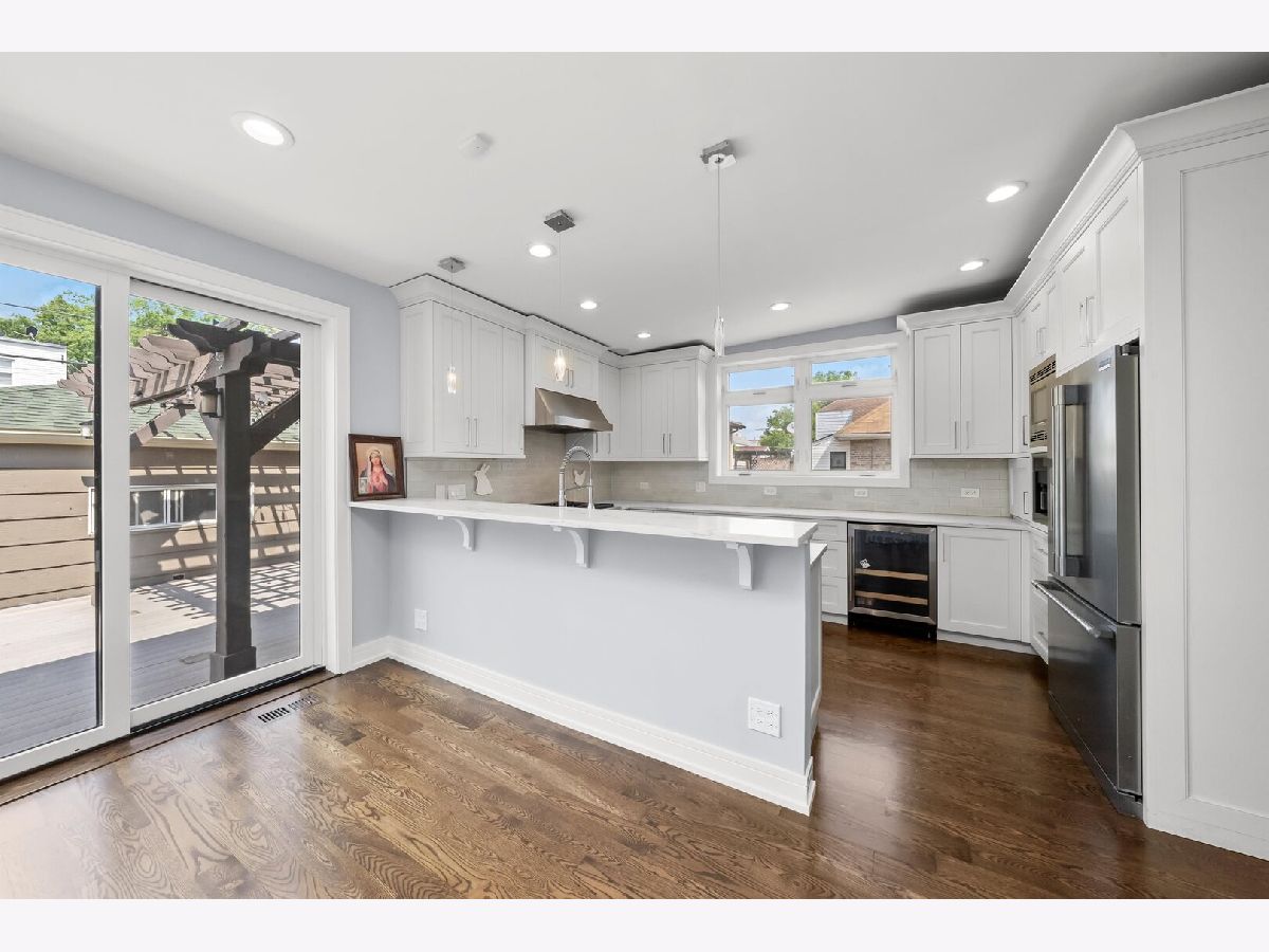 Beautifully Updated 6-Bedroom Brick Bungalow with 3 Full Baths in Chicago!This stunning home offers the perfect blend of space, style, and comfort. Featuring 6 bedrooms and 3 full bathrooms, this fully remodeled brick bungalow showcases timeless charm with modern conveniences. The bright, updated kitchen boasts white cabinetry, quartz countertops, stainless steel appliances, and a spacious eat-in area with sliding doors that open to a large deck with gazebo-ideal for outdoor entertaining.Freshly painted with refinished hardwood floors, recessed lighting, and elegant wainscoting throughout. The inviting living room features custom built-in shelves and an electric fireplace for cozy evenings. Each level of the home offers two bedrooms and a full bathroom, including a beautifully finished basement with a steam shower. Additional features include a home pre-wired for cameras inside and out, built-in ceiling speakers (just add your music system), a gas line for easy grilling on the patio, and updated can lighting throughout. Fully renovated 9 years ago with new electrical, plumbing, HVAC, windows, appliances, flooring, and drywall-this home is truly move-in ready!