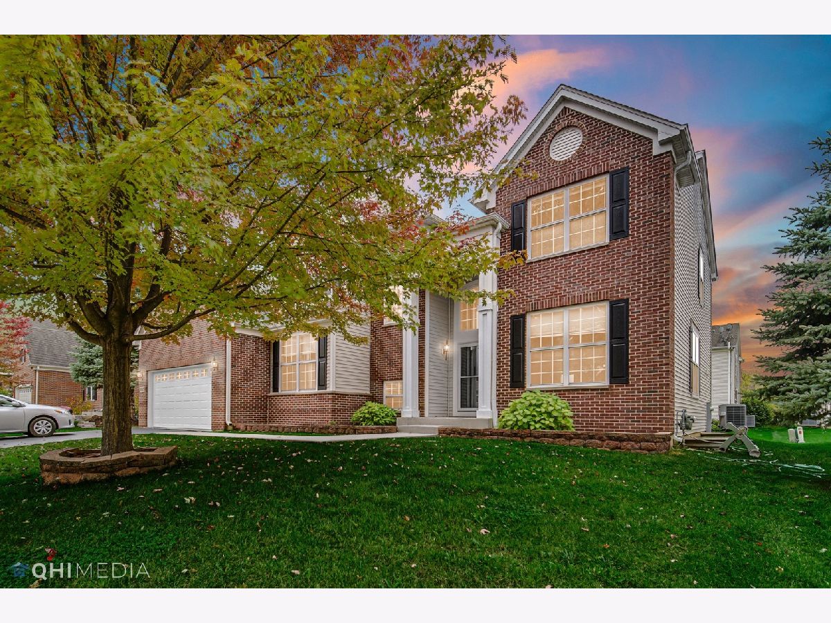 This highly sought-after Beacon Pointe Hanover model is a must-see! The soaring two-story foyer and gleaming hardwood flooring greet you as you enter. Builder upgrades throughout include a white trim package, recessed lighting, and modern light fixtures. The full eat-in kitchen features 42-inch oak cabinetry, granite countertops, backsplash, high-end GE Profile stainless steel appliances, and a pantry closet. The spacious family room has a gas starter fireplace, and recessed lights. Entertain guests or unwind on your paver patio. 1st floor office/den, and laundry! Upstairs, you'll find four spacious bedrooms, including the master suite with tray ceiling, walk-in closet, and master en-suite bath with whirlpool tub, raised vanity, tile floor, and tile surround separate shower. The full basement is a deep pour with 9-foot ceilings and is ready for your finishing touches. It's already roughed in for plumbing, has insulation wrap, and an in-house sprinkler system. Roof was redone in 2021! The 2-car garage provides ample parking, and the amazing location close to shopping, the interstate, and more makes this home a perfect choice. View it today!