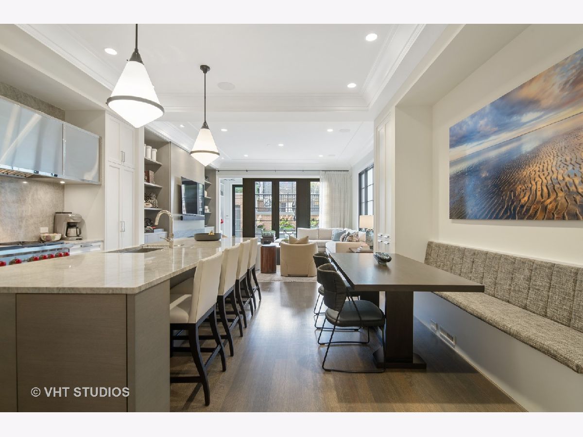 Welcome to 2042 Fremont. Situated on one of Chicago's most desirable street. This 3 year old Environs Development home is finished with the finest materials. This sophisticated residence designed by Michael Abrams Interiors offers a highly-functional 5,400 sq ft layout with 6 bedrooms, 5 1/2 bathrooms & an optional elevator. The home boasts over 2,500 sq ft of outdoor space, including a covered loggia with outdoor fireplace on the penthouse level PLUS an additional rooftop terrace above the penthouse with snowmelt and sweeping views of the city. Kitchen features custom slab front cabinets, giant walk-in pantry, huge eat-at island with seating for 4 + banquette seating. Sub Zero, Wolf, 2 Miele dishwashers, custom built-in cabinetry loaded with storage. The family room is stunning with surround windows and large fireplace that walks out to a generous stone-paved patio. The patio has a built-in grilling station and storage and room for a large dining table. The garage roof deck has custom steel pergola, gas fire-pit and lush landscaping for privacy. Second Level offers 3 bedrooms w/en-suite baths including a sumptuous primary suite with large sitting area, motorized shades, beautiful custom wall unit, marble spa bath, organized dual closets. The lower level has large gathering room with oversized windows & built-in wet bar + 2 additional bedrooms. Convenient mud room with built-in cubbies is just steps away from the two car garage. Control4 Smart home system. This turn-key, better-than-new home is a block away from Armitage shopping and dining. Easy access to the trains and busses.