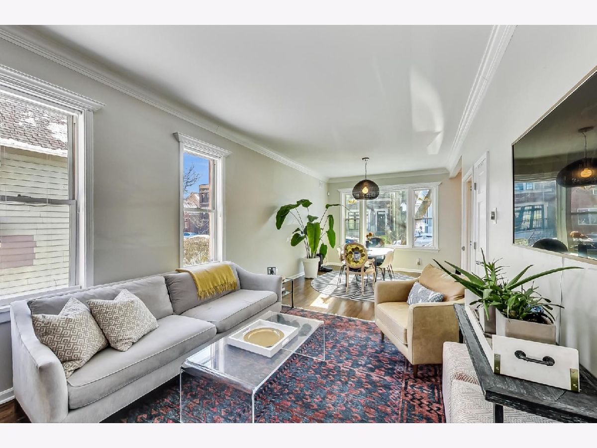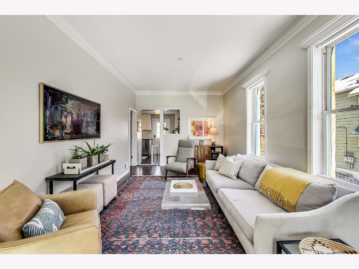 SOLD in Private. Bright & Spacious classic Bucktown brick cottage nestled on a quiet, tree-lined street. Updated for today's living , Main level features dramatic 10 ft ceilings w/huge front window in the living rm/dining rm for endless sunlight and HDWD thru out main and upper levels. Stylish white kitchen w honed granite counters, SS appl. Kitchen opens out to generous back deck which expands to pavered patio, tons of space for today's needs and perfect for entertaining. Second level features vaulted ceilings w oversized primary w/skylight. Full bath on each level. Two BR up, one on main floor , finished LL which includes family rm, flex space/office, full bath, laundry, wet bar and tons of storage. New siding on 2 car garage, New cedar fence. Perfect location to all of Damen trendy boutiques and restaurants. 2 blks to the 606 elevated park, 3 blks to EL.