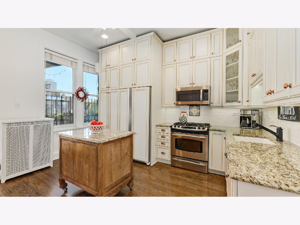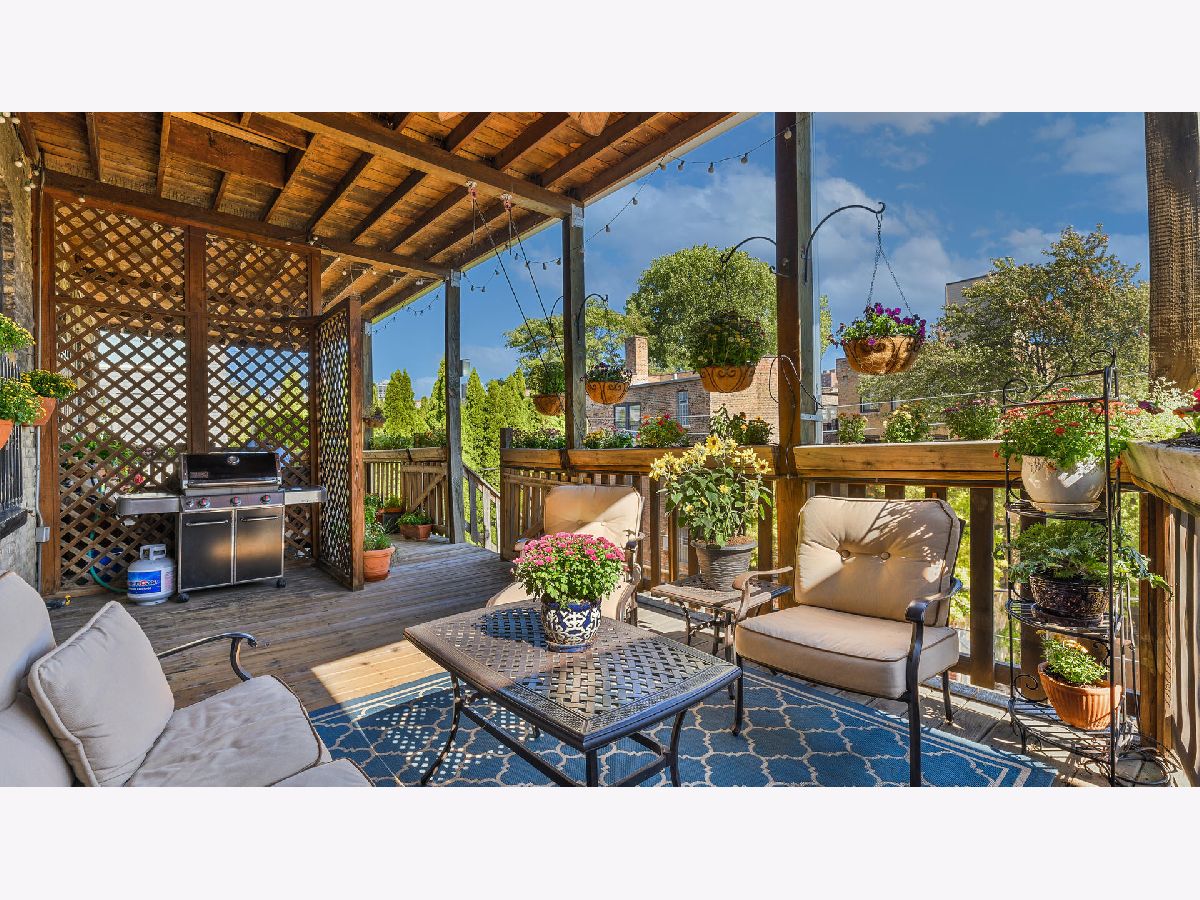 Located on one of the most coveted one-way streets in east Lincoln Park and in one of the finest Greystones, this three-bedroom, two bath top floor condo offers vintage charm throughout with modern upgrades and lots of natural light. Overlooking the treetops of Mohawk this home has a separate dining room, family room plus formal living room. Upscale chef's kitchen overlooking the 23x12 private outdoor terrace for easy grilling and entertaining and city breathtaking views. Newer appliances, hardwood flooring throughout, high ceilings with gorgeous ceiling medallions, built-in hutch, central air conditioning and generous size rooms for everyday living. In-unit laundry, additional storage unit in lower level, exterior parking spot included. Solid reserves. Walk to Oz Park, shops, restaurants, lakefront, parks and more. A+ location. Dogs allowed.
