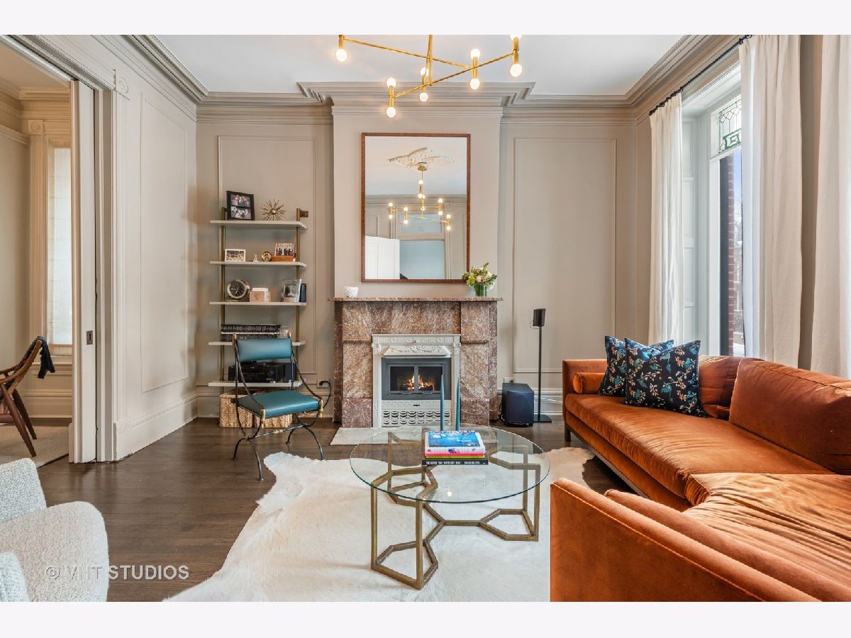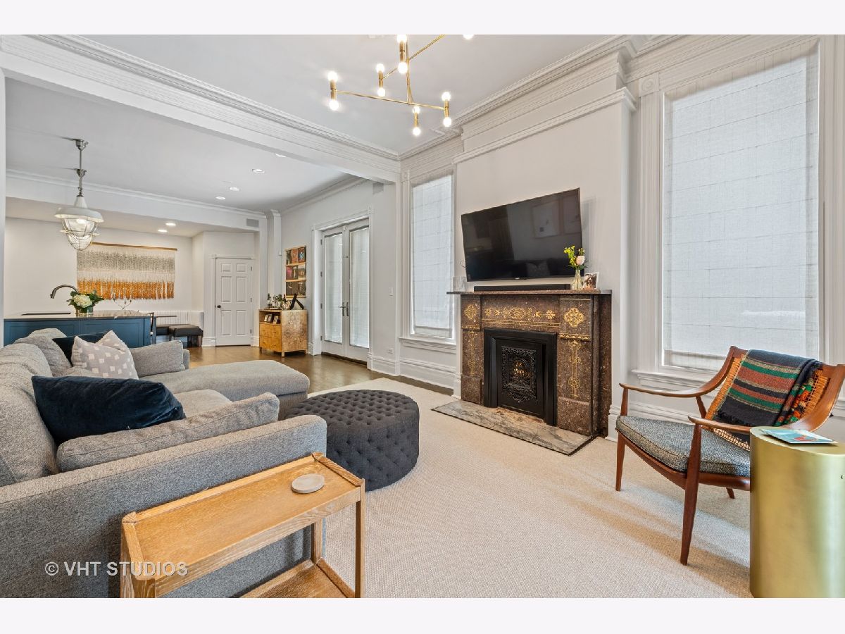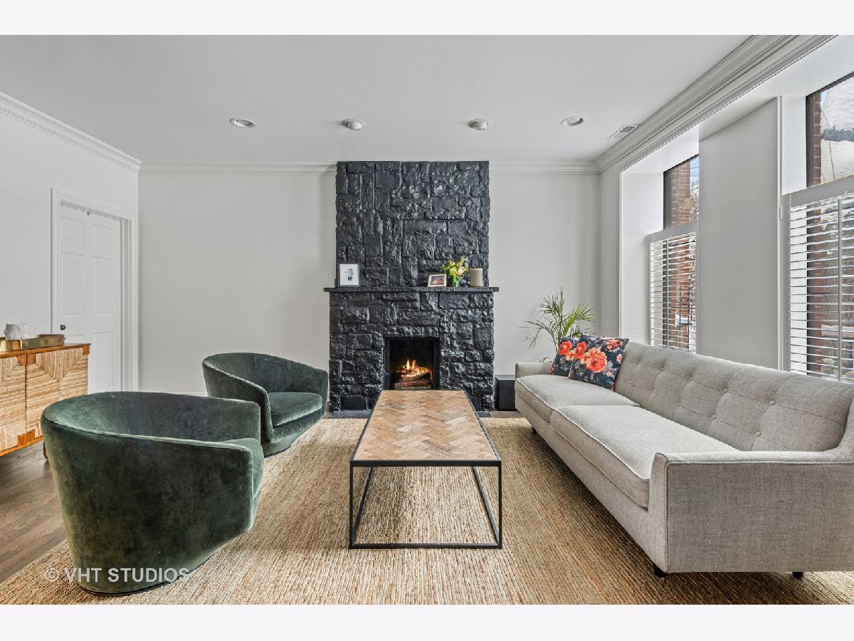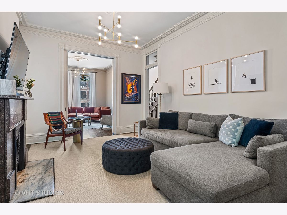 Professionally designed by Studio Gild, beautiful renovation of a Lincoln Park vintage row-home on gorgeous, tree-lined street. Enter through a charming front patio to your first level featuring a family room, bedroom and full bath with new hardwood floors. Your main level offers a spacious chef's kitchen with new cabinetry, custom banquette dining room as well as two living rooms. Marvelous front ipe wood terrace overlooks Bissell completing this level. Your top floor features two large bedrooms, two full baths and a massive walk-in closet. Extensive improvements made throughout most notably the chic kitchen and stunning primary bathroom. 5 original fireplaces, stained glass accents and detailed wainscoting are just a few key features of this special home. Attached 2-car garage & private driveway with room for 4 more cars! A+ Lincoln Park location steps from shopping and dining on Armitage Avenue.