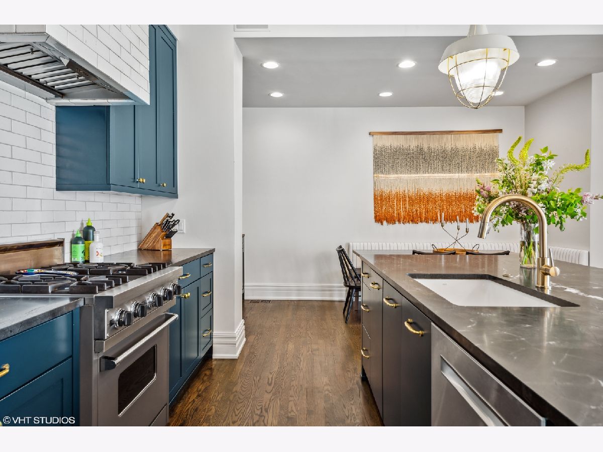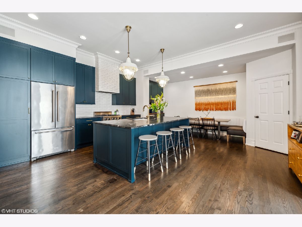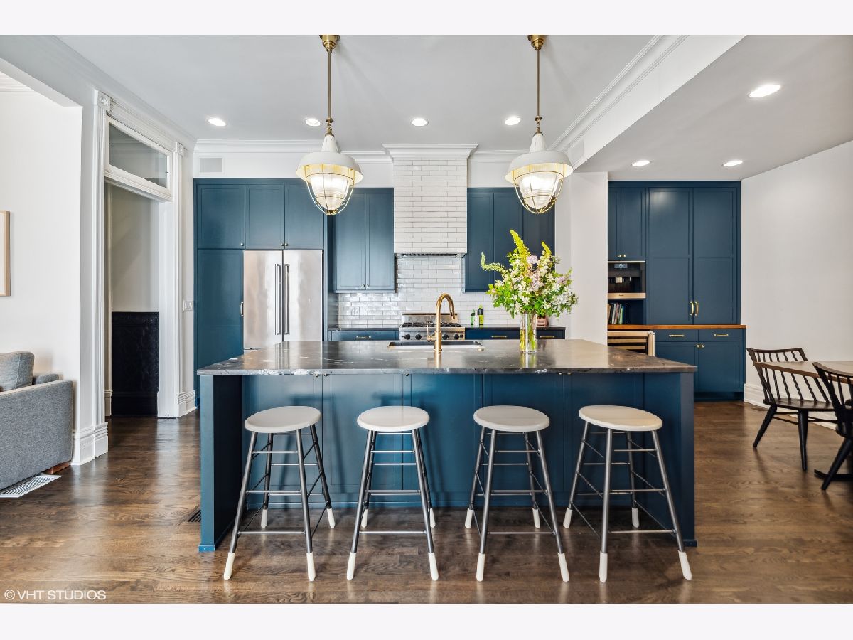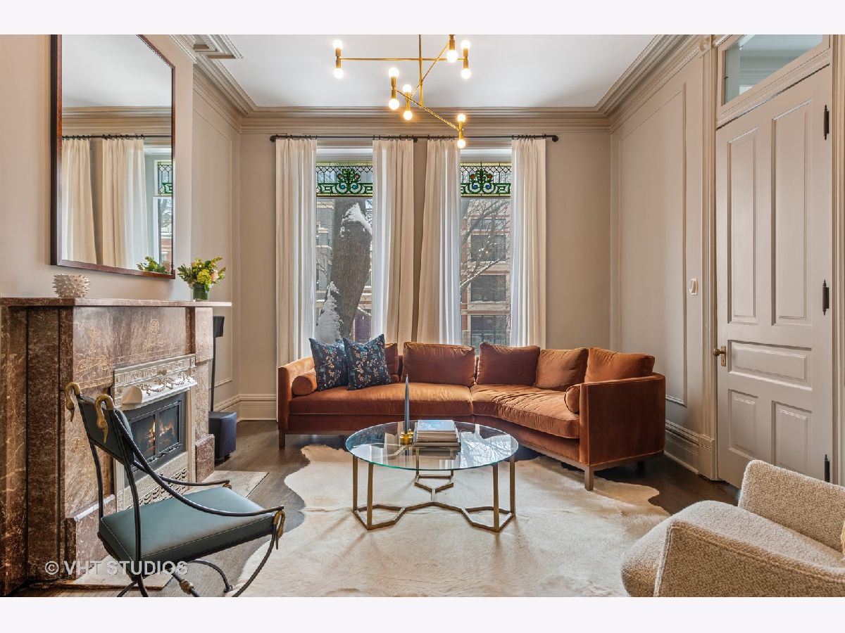 Professionally designed by Studio Gild, beautiful renovation of a Lincoln Park vintage row-home on gorgeous, tree-lined street. Enter through a charming front patio to your first level featuring a family room, bedroom and full bath with new hardwood floors. Your main level offers a spacious chef's kitchen with new cabinetry, custom banquette dining room as well as two living rooms. Marvelous front ipe wood terrace overlooks Bissell completing this level. Your top floor features two large bedrooms, two full baths and a massive walk-in closet. Extensive improvements made throughout most notably the chic kitchen and stunning primary bathroom. 5 original fireplaces, stained glass accents and detailed wainscoting are just a few key features of this special home. Attached 2-car garage & private driveway with room for 4 more cars! A+ Lincoln Park location steps from shopping and dining on Armitage Avenue.