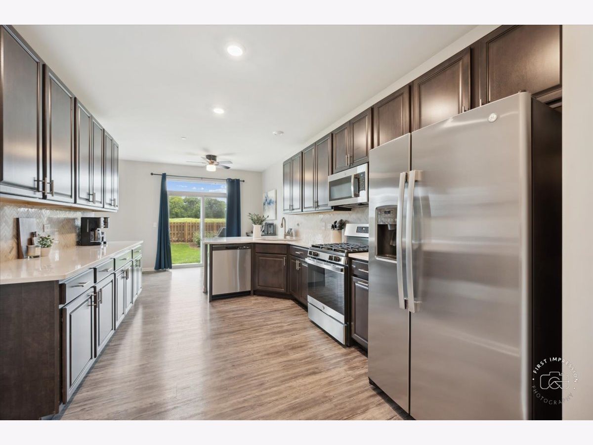 Welcome home to 2045 Stuttle, a spacious open-concept townhome built in 2021 that offers all the modern features of new construction without the wait. As you step through the private entrance, you'll be welcomed by an abundance of natural light that fills the space, creating a warm and inviting atmosphere. This Wi-Fi certified smart home is equipped with state-of-the-art technology, including a Ring video doorbell and a Honeywell smart thermostat, ensuring both convenience and enhanced security.The open-concept kitchen is a chef's dream, featuring modern 42" white cabinets, sleek quartz countertops, a breakfast bar, and a full suite of GE stainless steel appliances. The adjacent dinette area, with ample table space and a sliding glass patio door, provides easy access to outdoor grilling and entertaining. The spacious living room, boasting 9' ceilings and luxury vinyl plank flooring throughout the main level, offers a seamless flow for both everyday living and hosting guests.The primary bedroom suite is a true retreat, complete with a walk-in closet and a full bathroom featuring a large walk-in shower and modern fixtures. The second bedroom is conveniently located near a separate full bathroom, ensuring comfort for family or guests.A second-floor laundry room, complete with a washer and dryer, adds convenience to your daily routine. This home is also equipped with a fire sprinkler system for added safety. The attached two-car garage, featuring a smart-enabled garage door, provides ample storage space. Enjoy maintenance-free living, as the HOA covers lawn care and snow removal, allowing you to spend more time enjoying the nearby pond, the scenic Illinois Prairie Path-a picturesque tree-lined walking and bike path-and Peter Frieders Park, ideal for picnics and outdoor relaxation. Located in the sought-after Prairie Commons community, just minutes from shopping and with easy access to I-88, this home offers the perfect blend of suburban tranquility and urban convenience. Don't miss the opportunity to make this exceptional property your new home. Schedule a showing today and experience everything it has to offer!