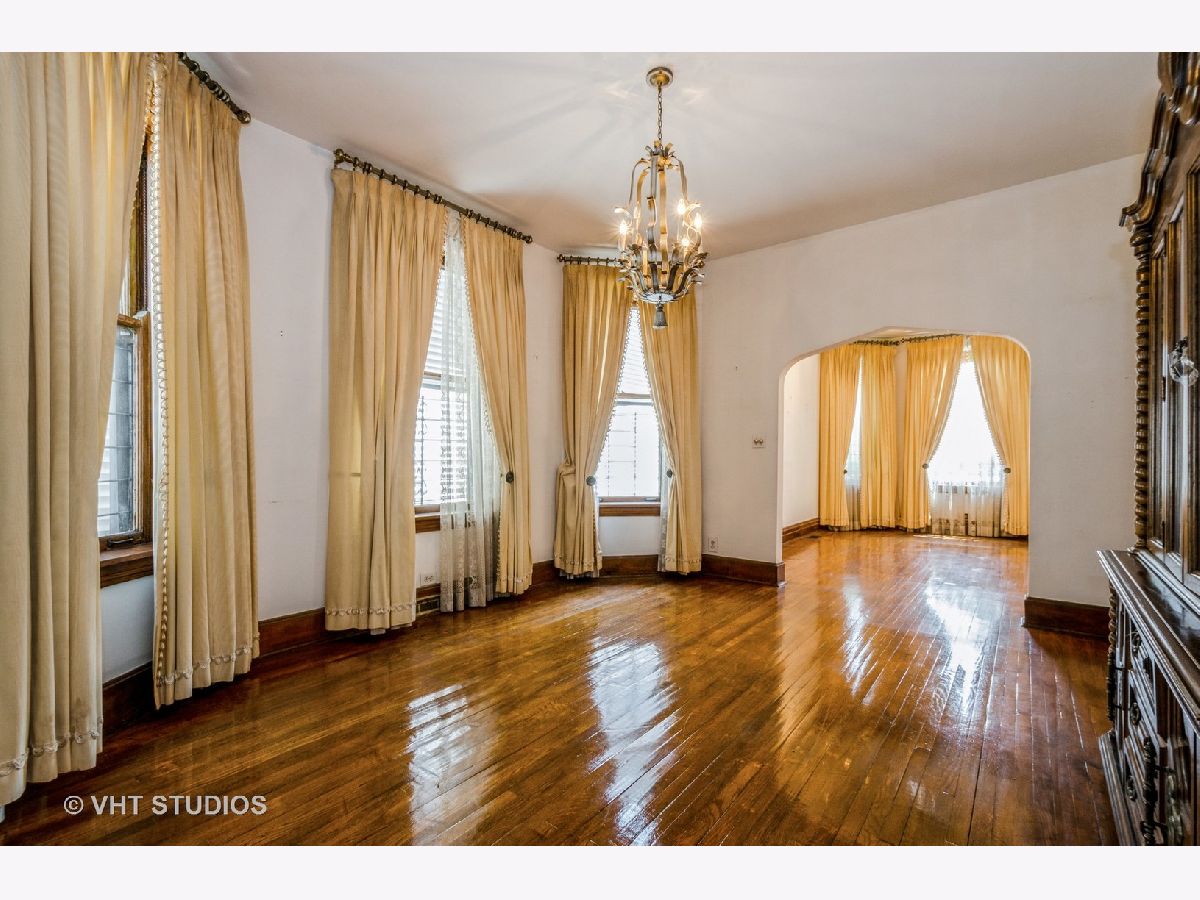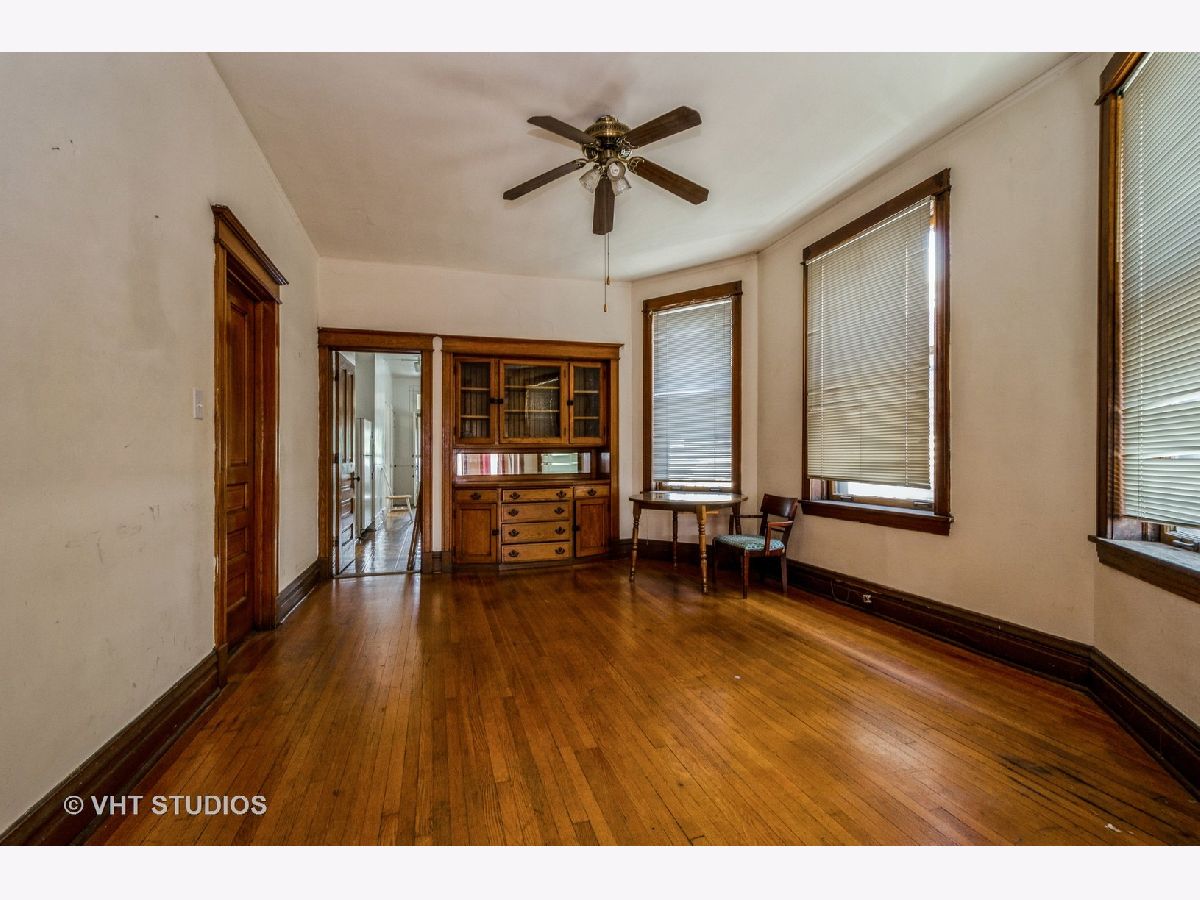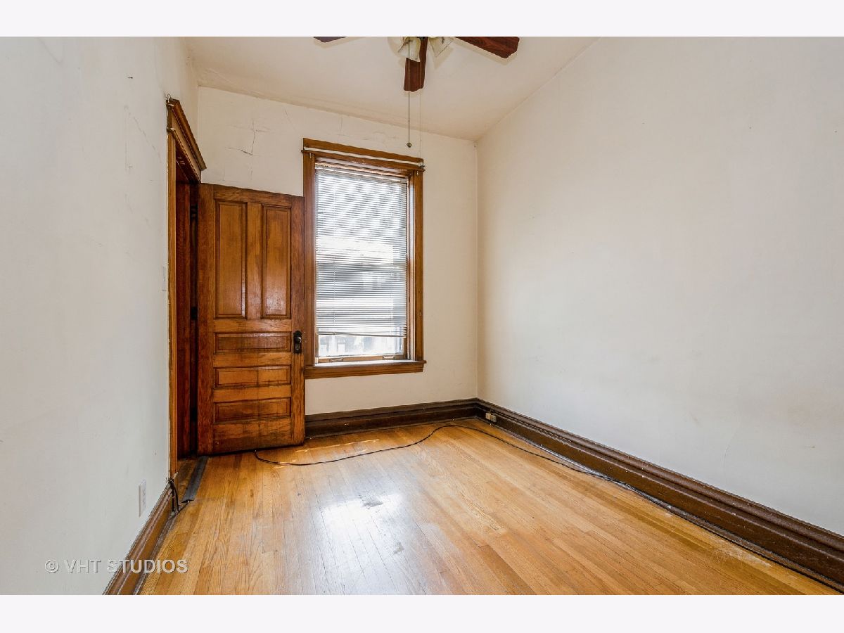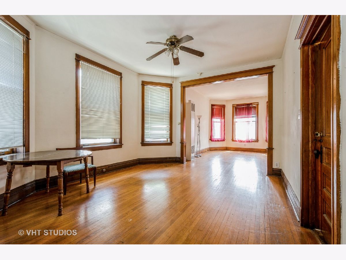 brick 2 flat in desirable Roscoe Village shows true craftmanship with its custom wood finishes and beautiful hardwood flooring. The first floor has a spacious living room, a formal dining room, 2 bedrooms, a full bath, and a family size eat in kitchen. This unit is duplexed to the basement to create additional living space for this unit. The basement has a 3rd bedroom, a large family room area, and a full bath. This unit has central heat and air. The second floor unit is similar to the first floor. There is gas forced air to this unit. The building does need updates but has great potential. There is a yard and garage. This building is being sold "as is" and the estate makes no representations.