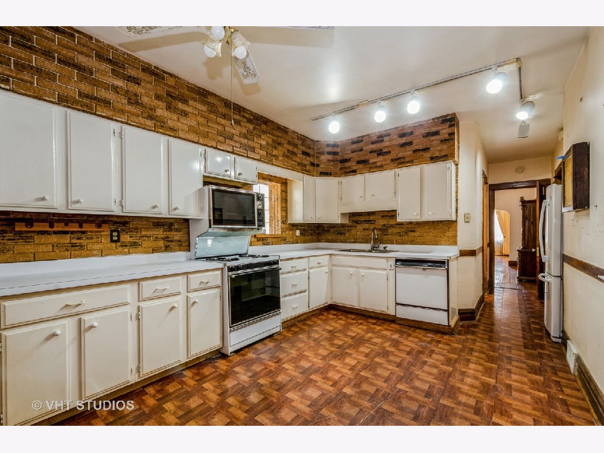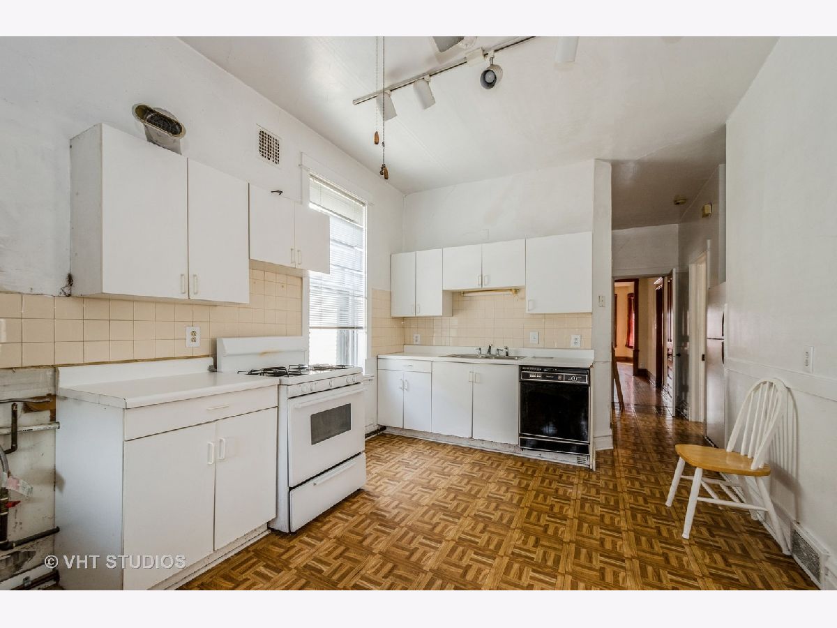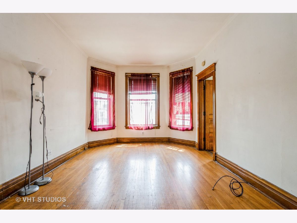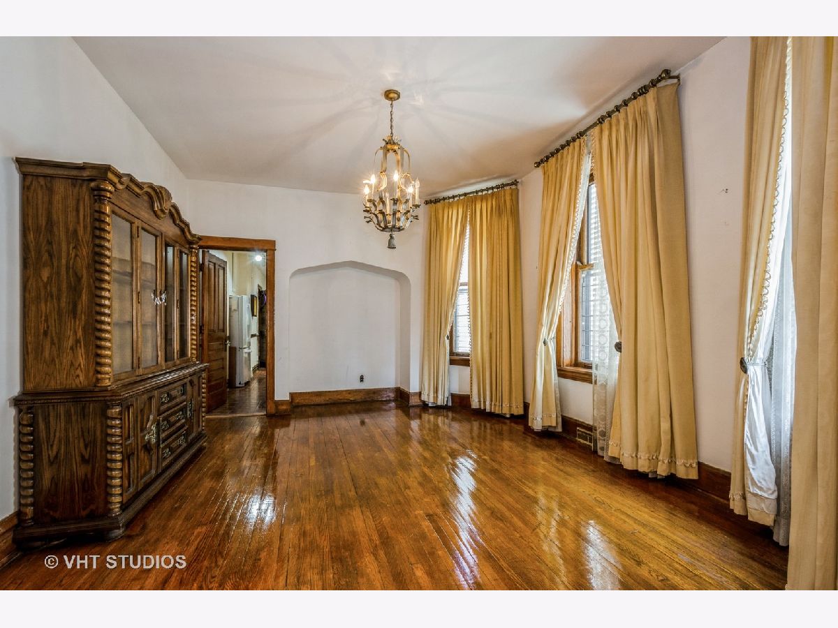 brick 2 flat in desirable Roscoe Village shows true craftmanship with its custom wood finishes and beautiful hardwood flooring. The first floor has a spacious living room, a formal dining room, 2 bedrooms, a full bath, and a family size eat in kitchen. This unit is duplexed to the basement to create additional living space for this unit. The basement has a 3rd bedroom, a large family room area, and a full bath. This unit has central heat and air. The second floor unit is similar to the first floor. There is gas forced air to this unit. The building does need updates but has great potential. There is a yard and garage. This building is being sold "as is" and the estate makes no representations.